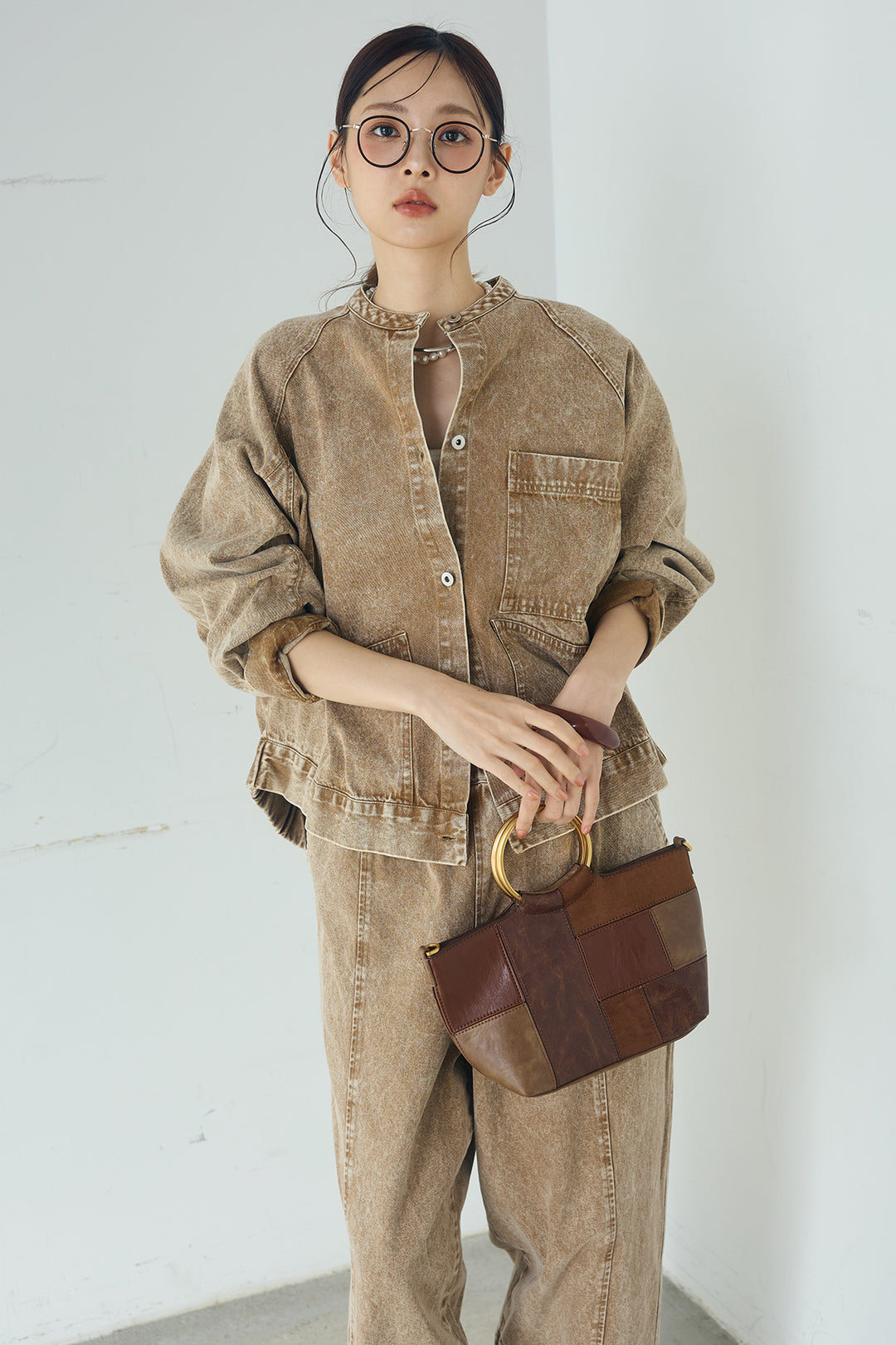 [SET]メタルプレートショート丈ジャケット+メタルプレートタックワイドパンツ(2set)