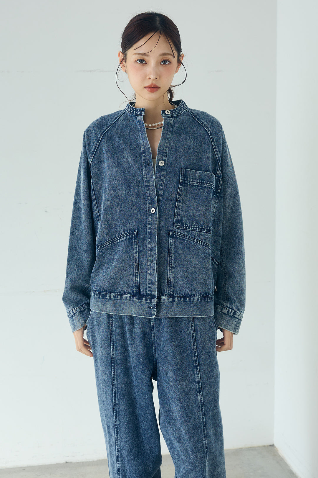 [SET]ナイロンデニムドッキングブルゾン+テンセルデニムイージーワイドパンツ(2set)
