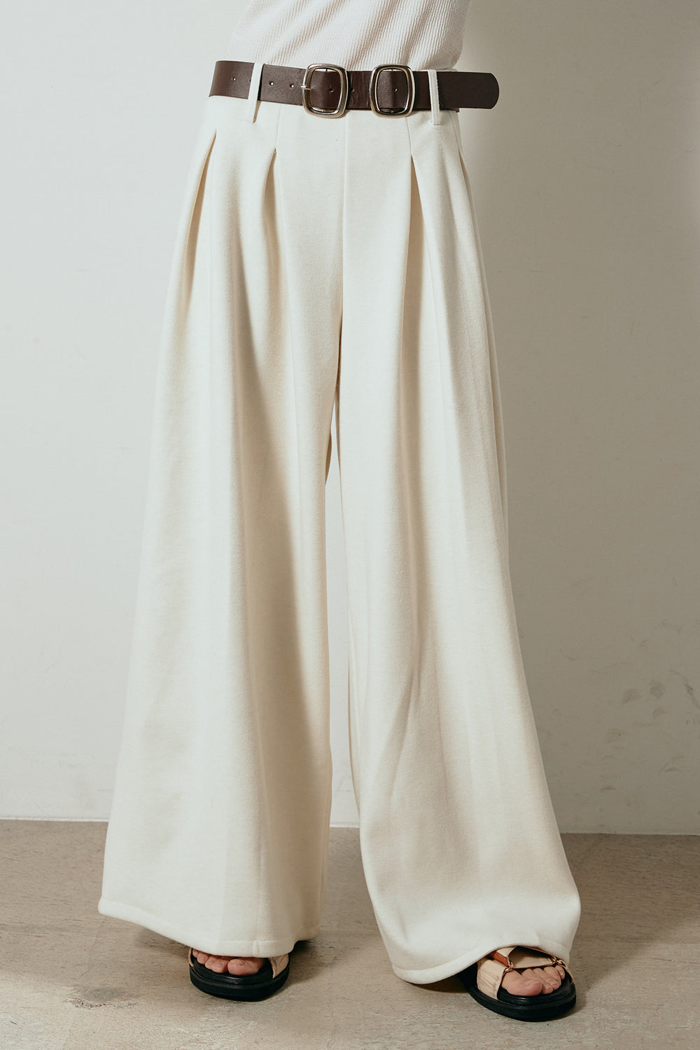 【即納】フェイクレザー太ベルト付きタックワイドパンツ