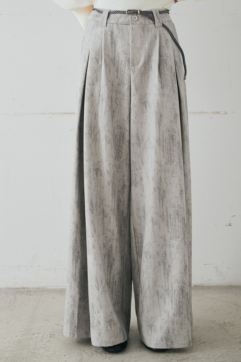 紐ベルト付きかすれ柄ワイドスラックス