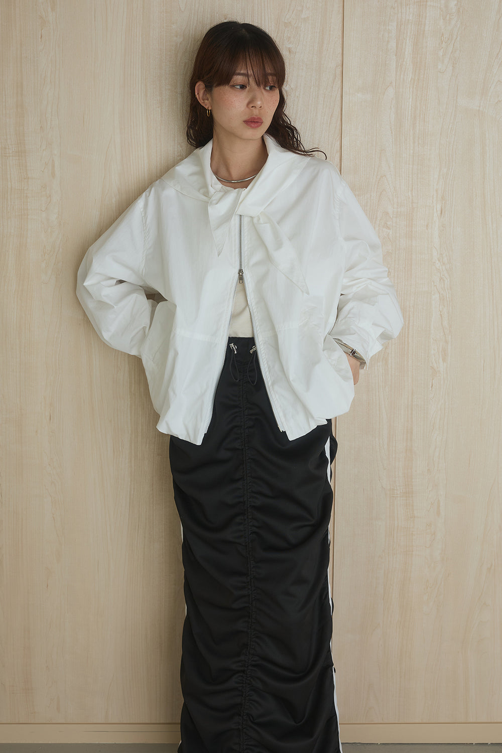 [SET]異素材切替ZIPブルゾン+サイドラインギャザースカート(2set)