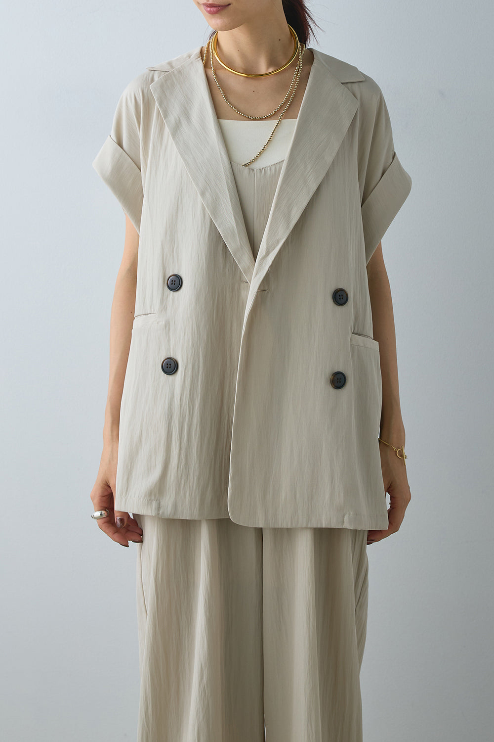 【即納】リネンライクダブルジレ