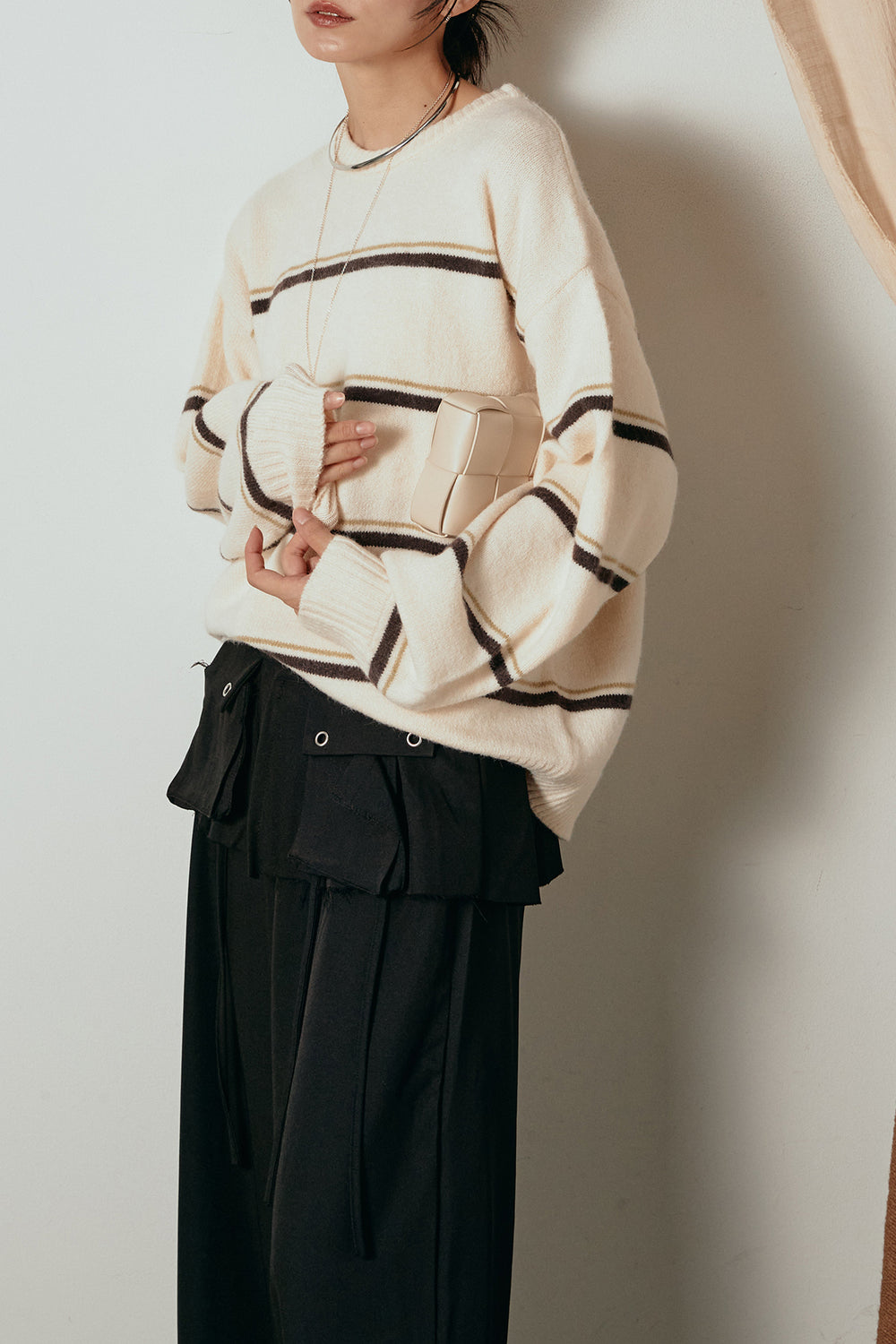 [SET]アルパカタッチボーダープルオーバー+ウエストレイヤードポケットデザインワイドパンツ(2set)