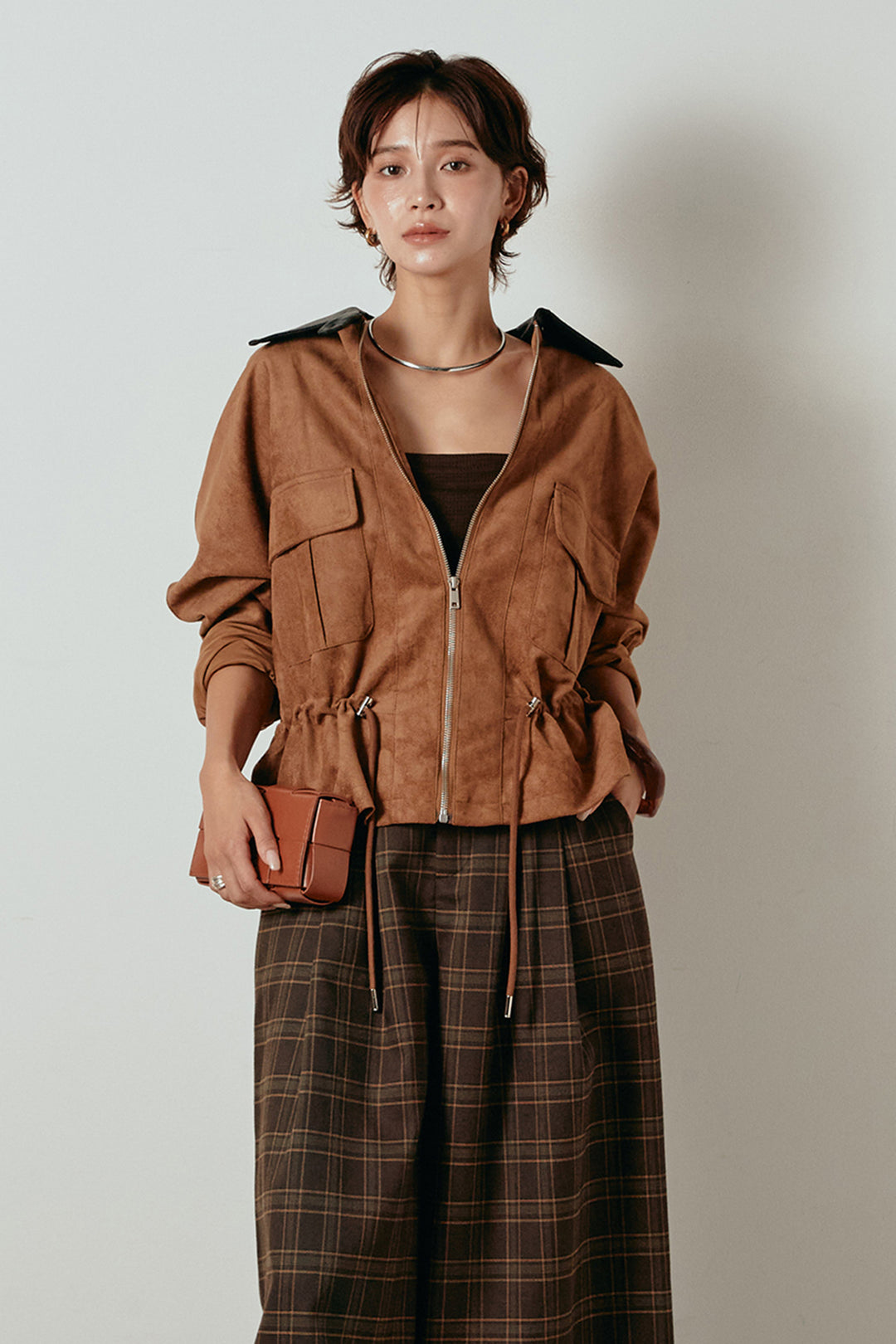 [SET]マルチチェックミディアム丈コート+ベロアラインパンツ(2set)