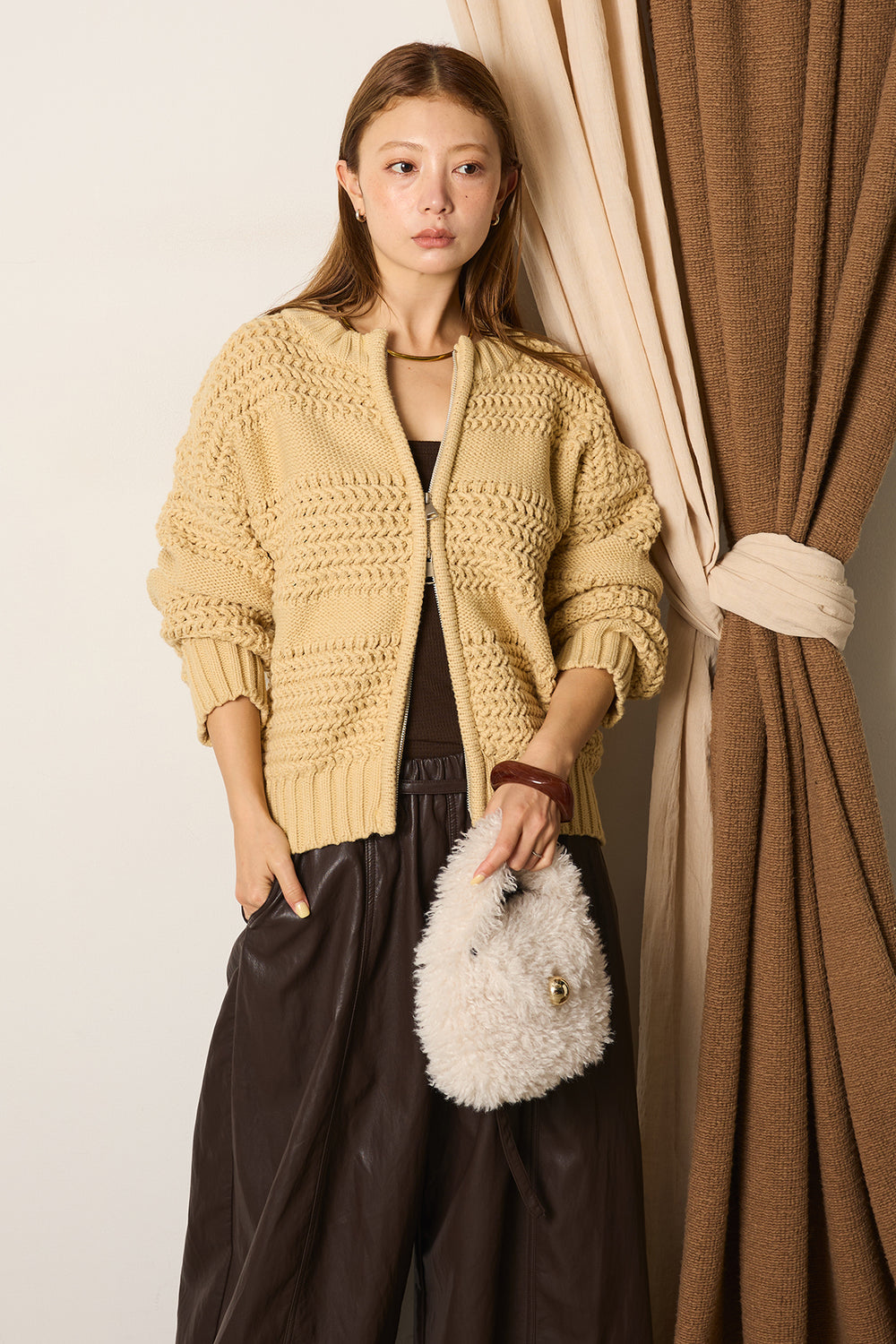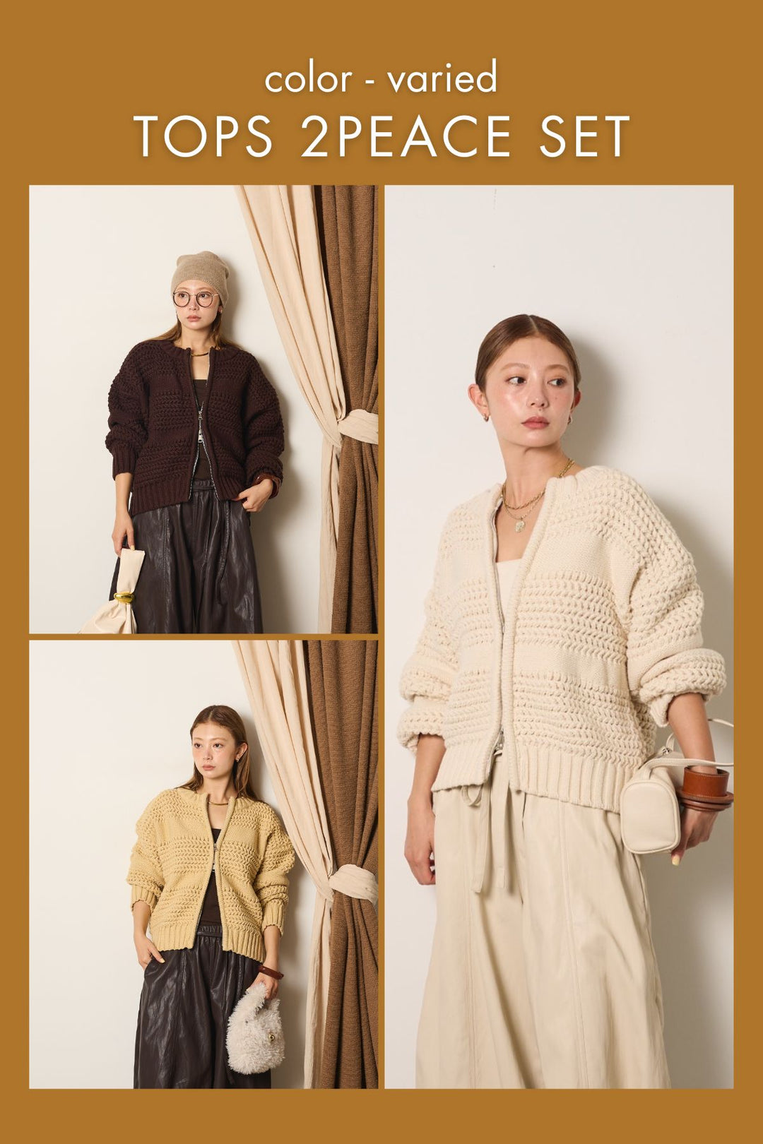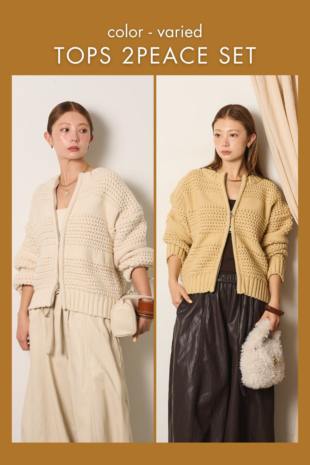 【着回しセット】[SET]ライン編みダブルジップニットカーディガン+ライン編みダブルジップニットカーディガン(2set)