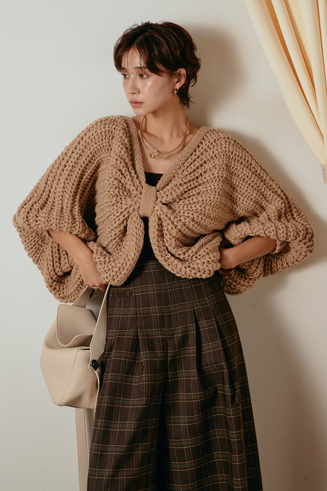 [着回しセット]フェザーヤーン衿付きカーディガン+フェザーヤーン衿付きカーディガン+細ベルト付きワイドパンツ(3set)