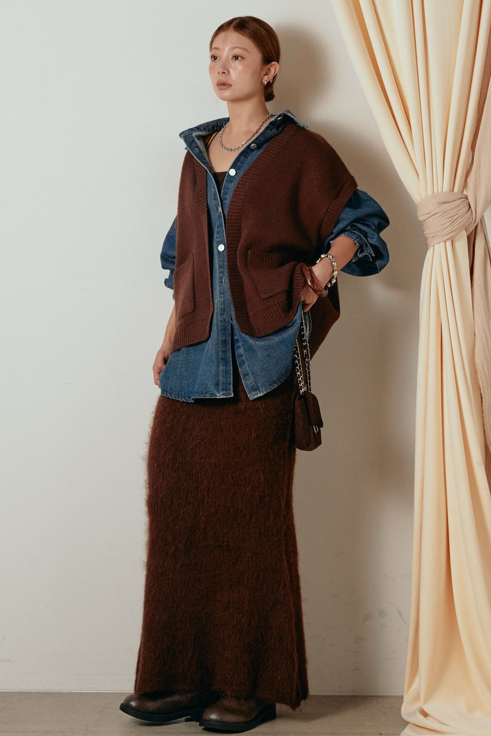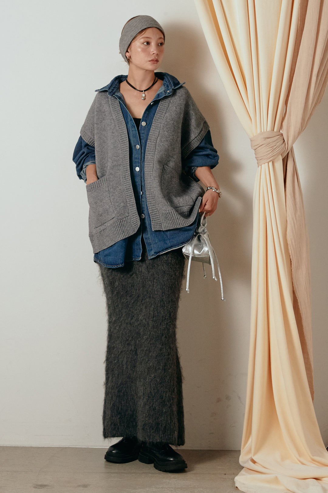 [SET]ニットドッキングデニムジャケット+起毛ニットワイドスカート(2set)