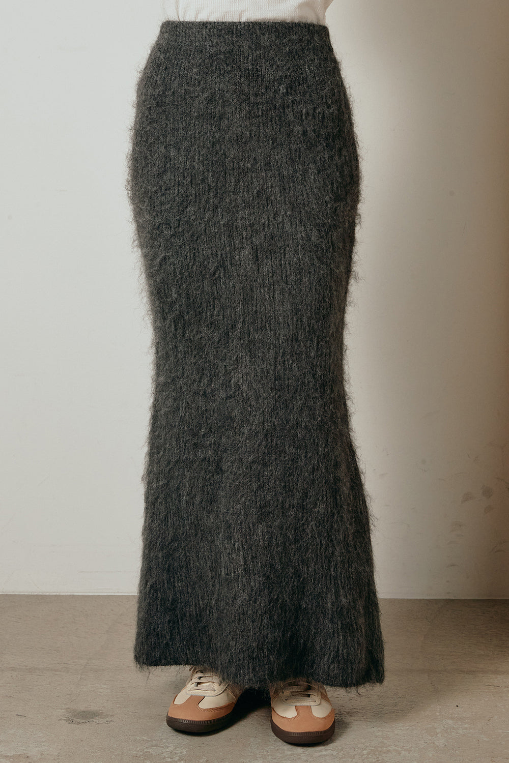 [SET]モヘアタッチレオパードVネックカーディガン+切り替えスウェットフレアスカート(2set)