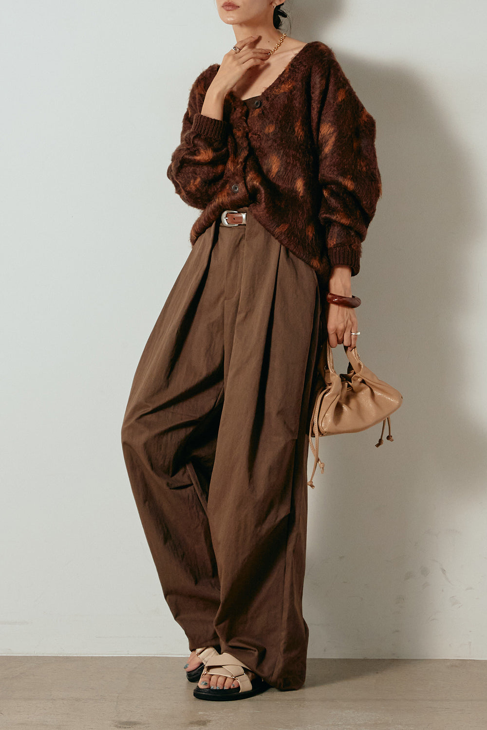[SET]モヘアタッチレオパードVネックカーディガン+ワイドタック入りパンツ(2set)
