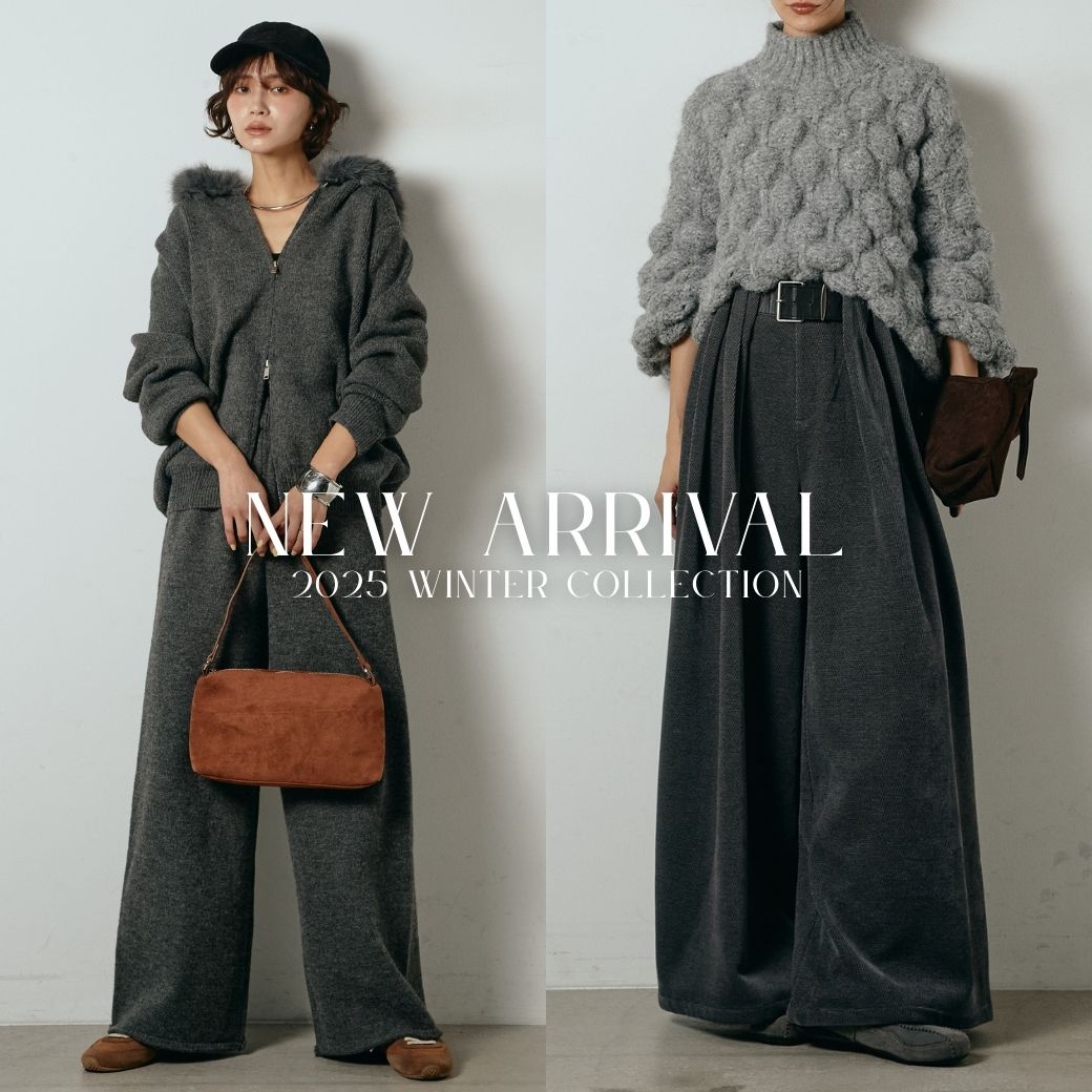 【着回しセット】[SET]モヘアタッチマーブルニット+タック入りコーデュロイワイドパンツ+ロープベルト付きスウェード調スカート(3set)
