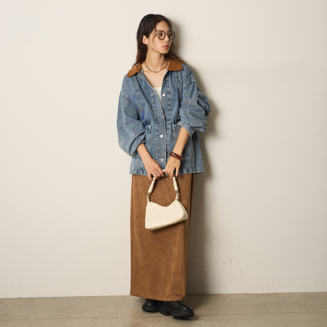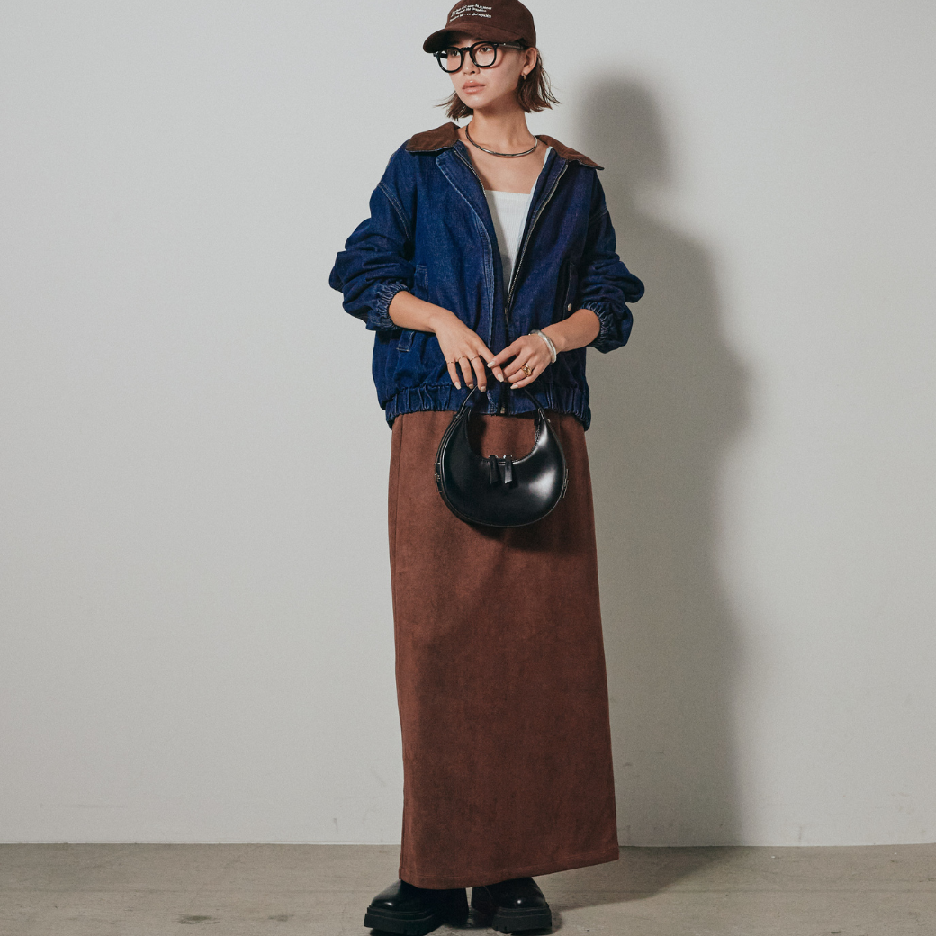 [SET]コーデュロイ襟デニムブルゾン+フェイクスウェードタイトスカート(2set)