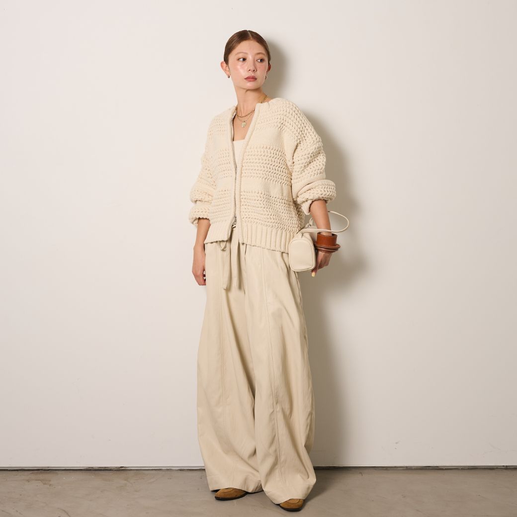 【着回しセット】[SET]ライン編みダブルジップニットカーディガン+ライン編みダブルジップニットカーディガン+フェイクレザーカーブワイドパンツ(3set)