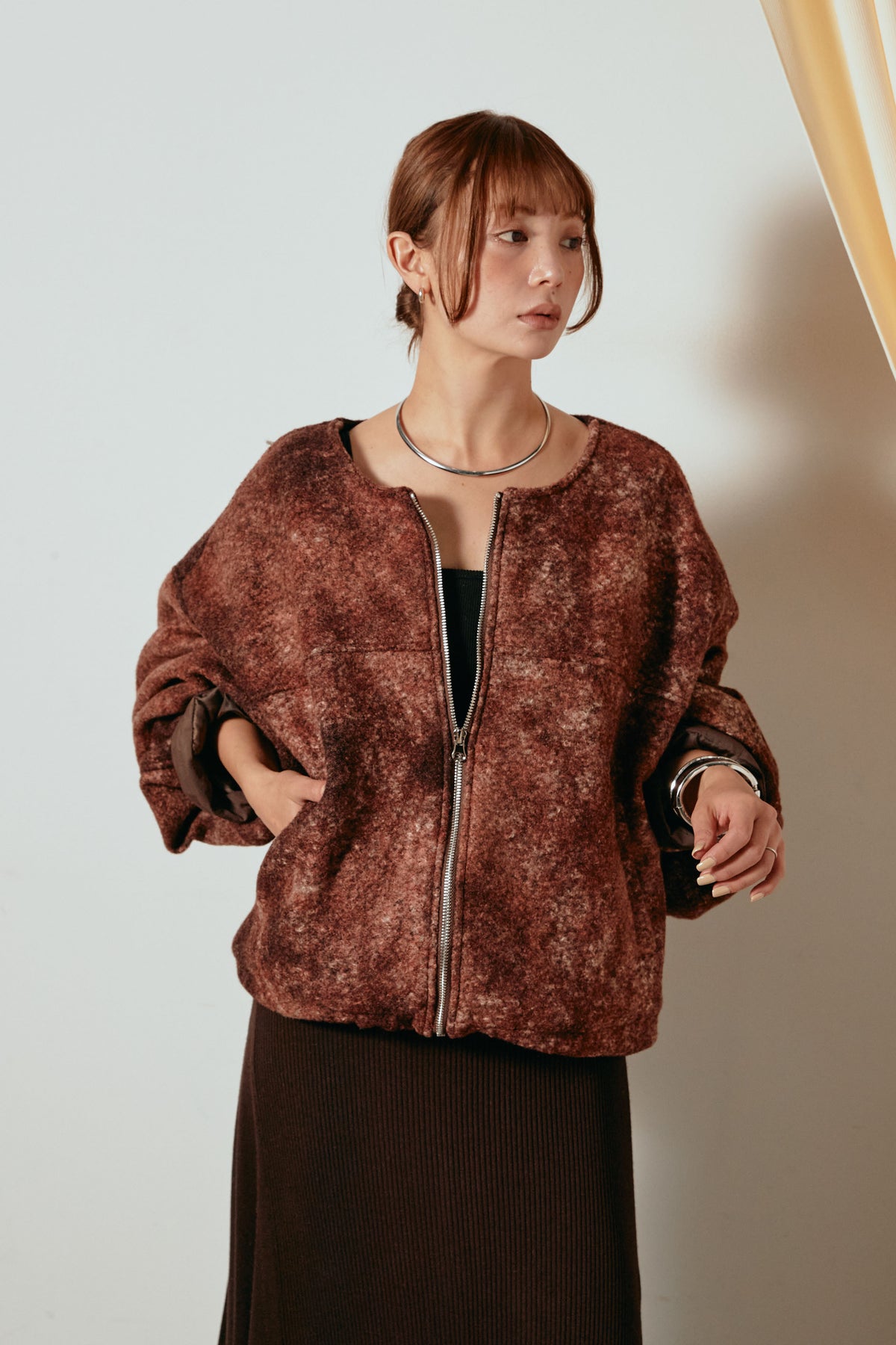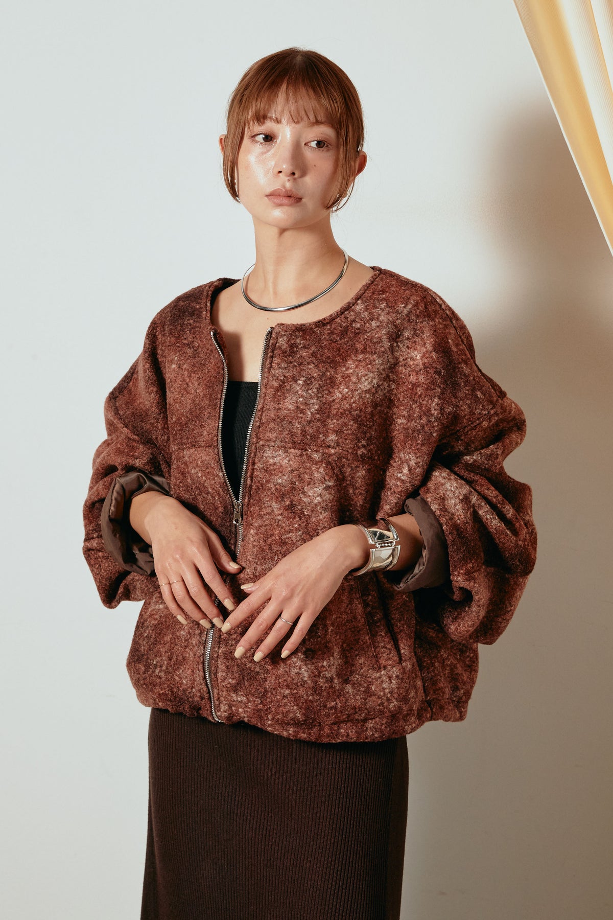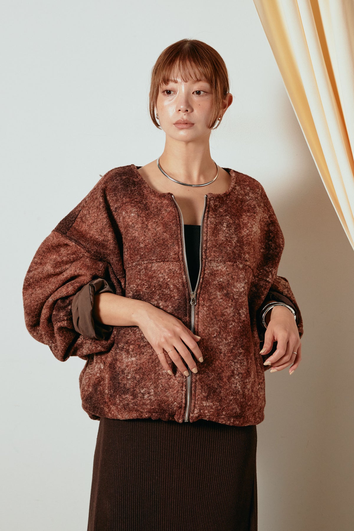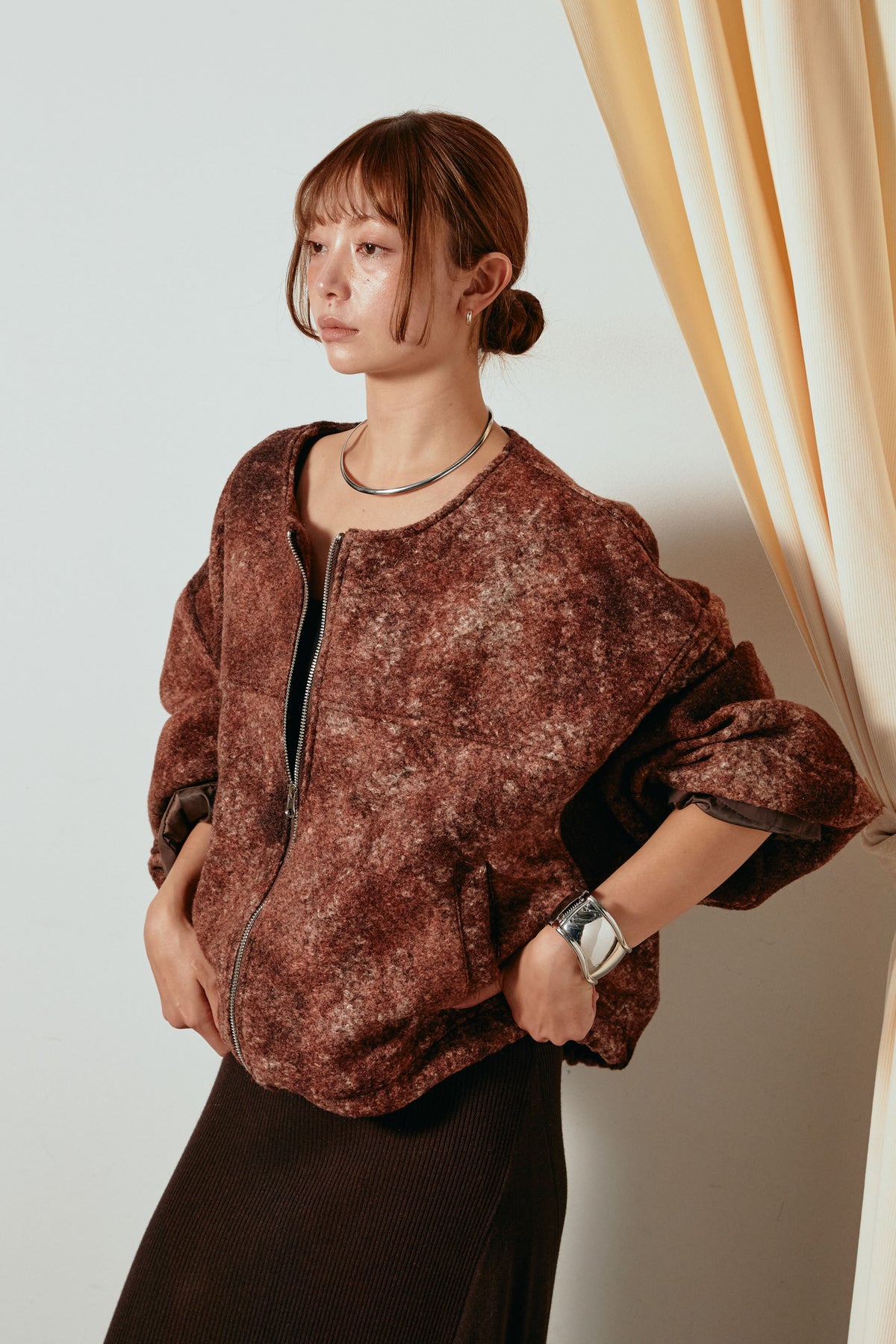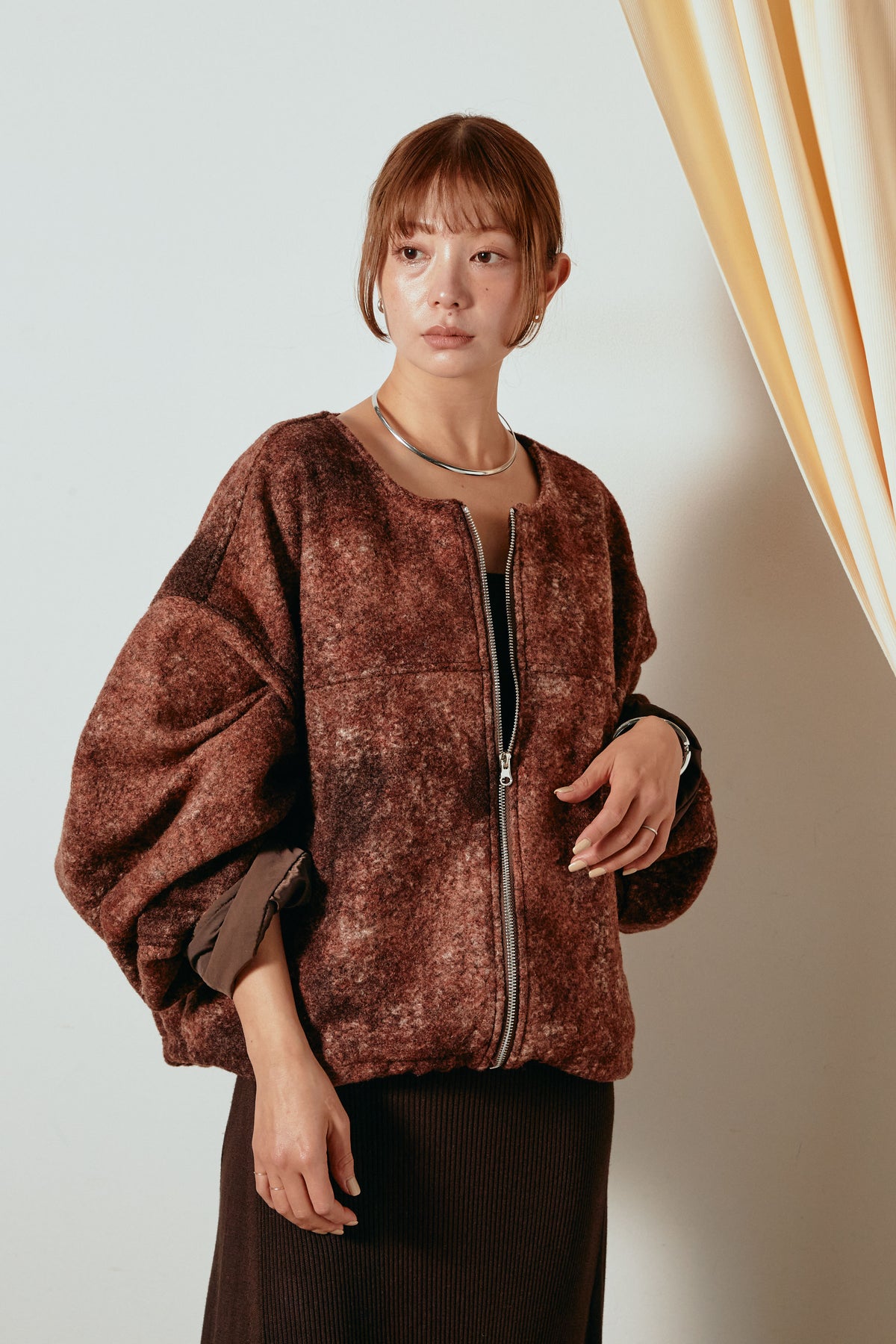 ノーカラーニュアンス柄ジップアウター/ブラウン