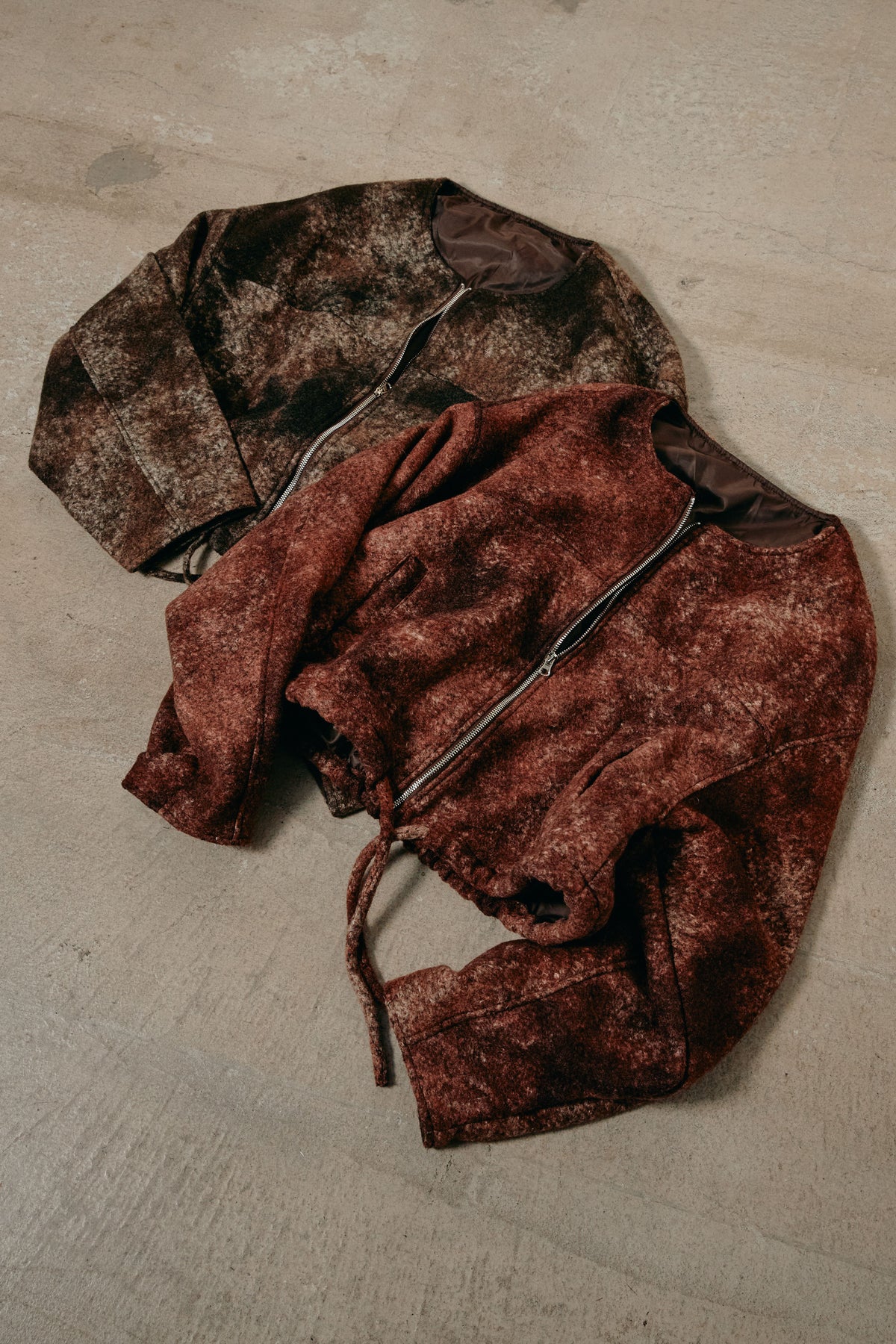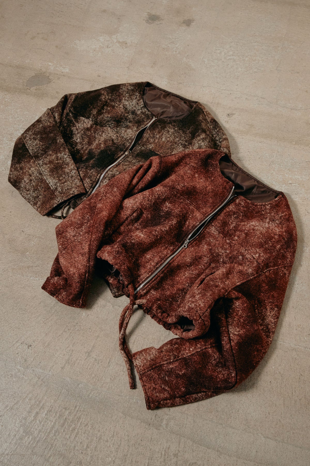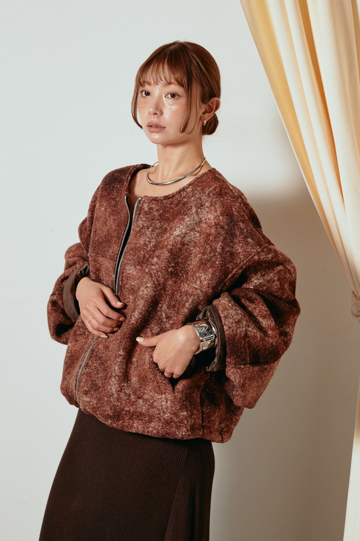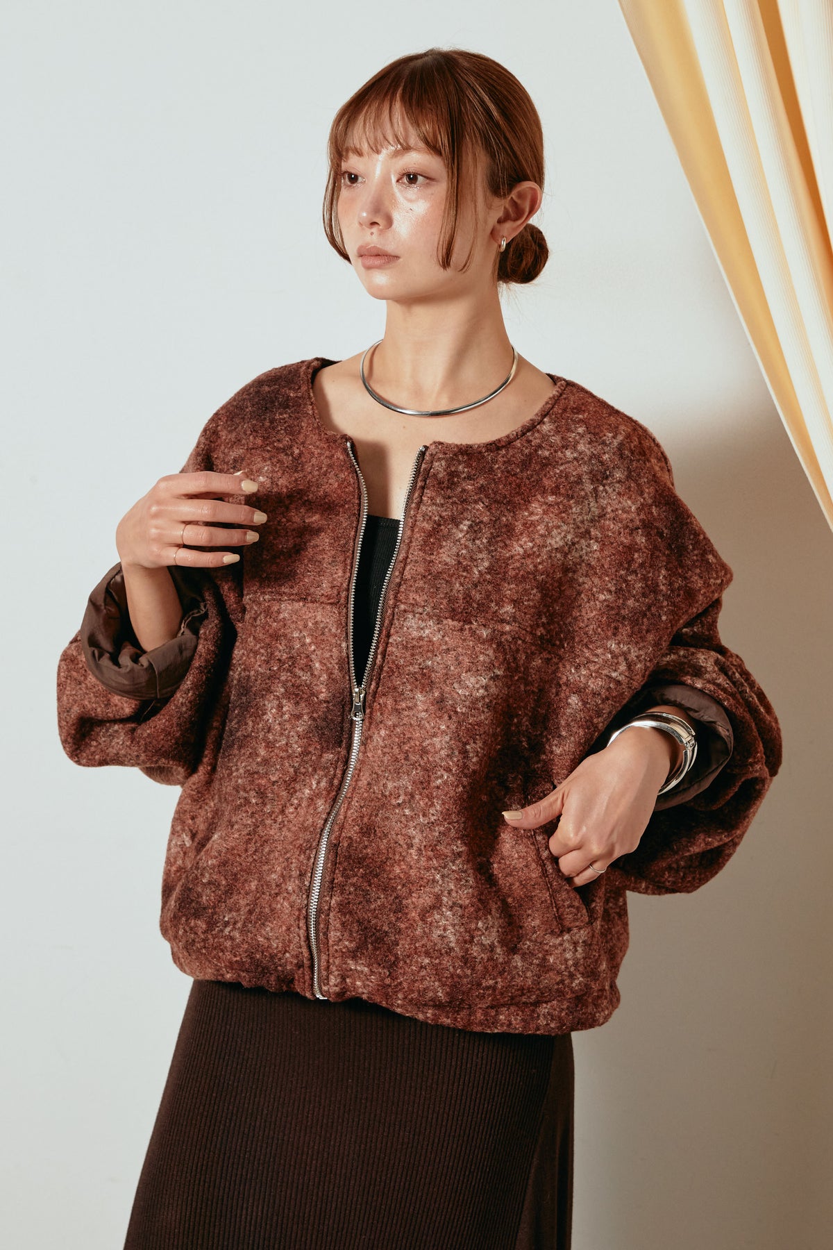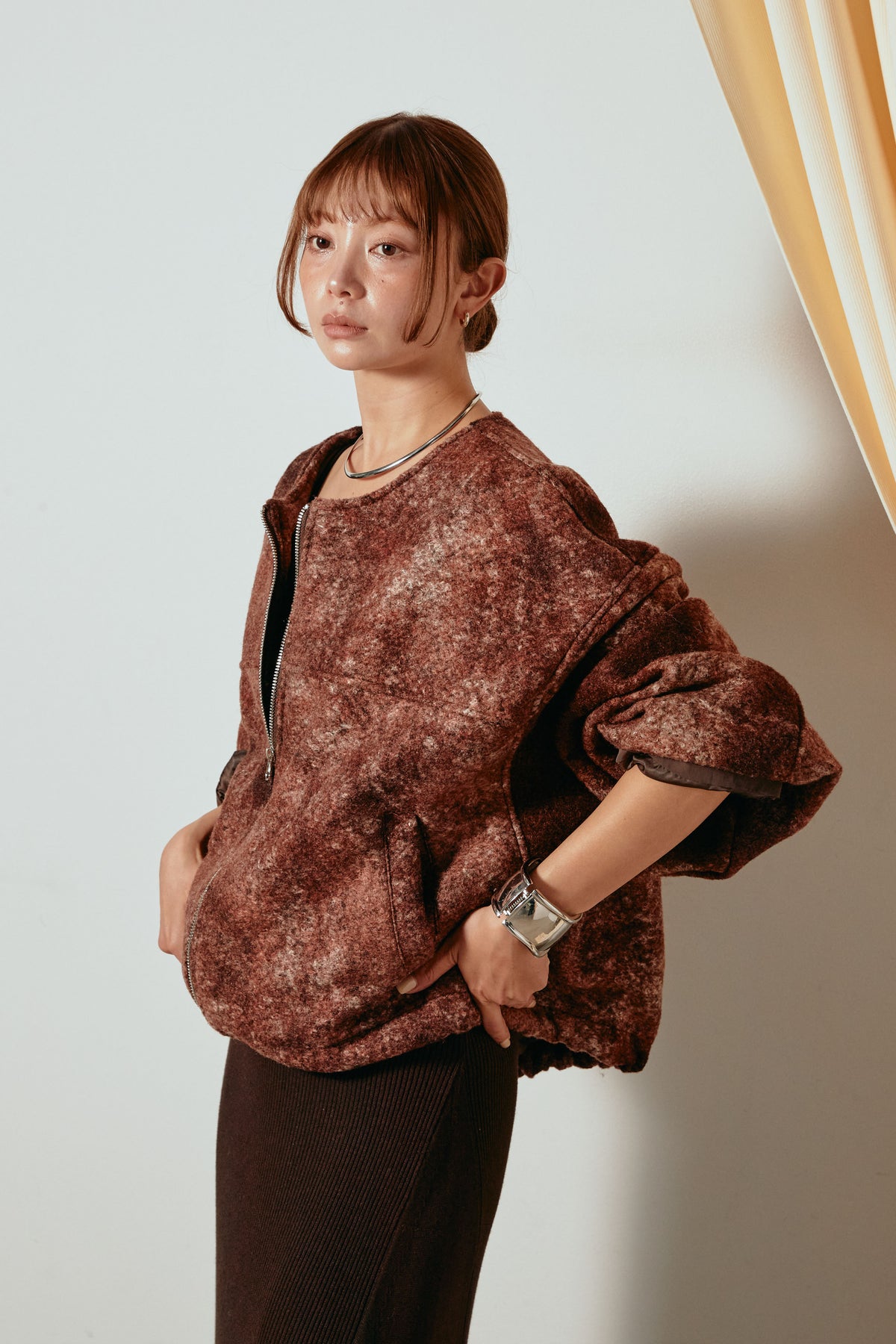 ノーカラーニュアンス柄ジップアウター/ブラウン