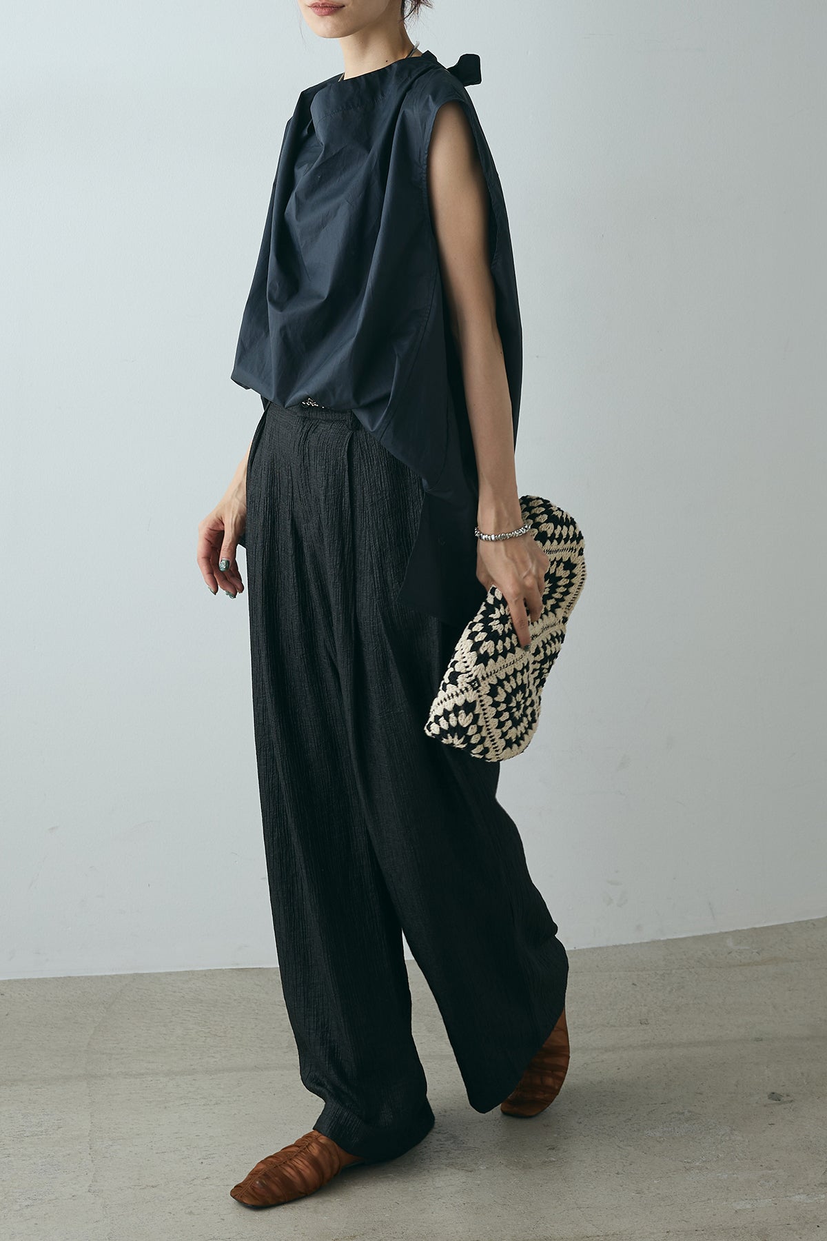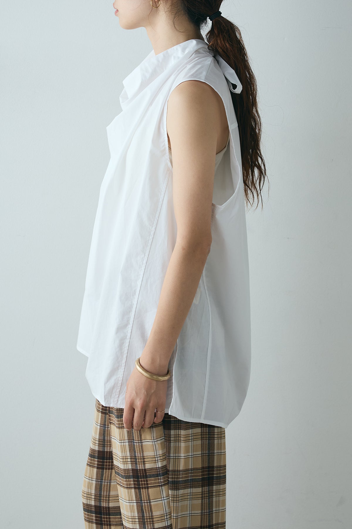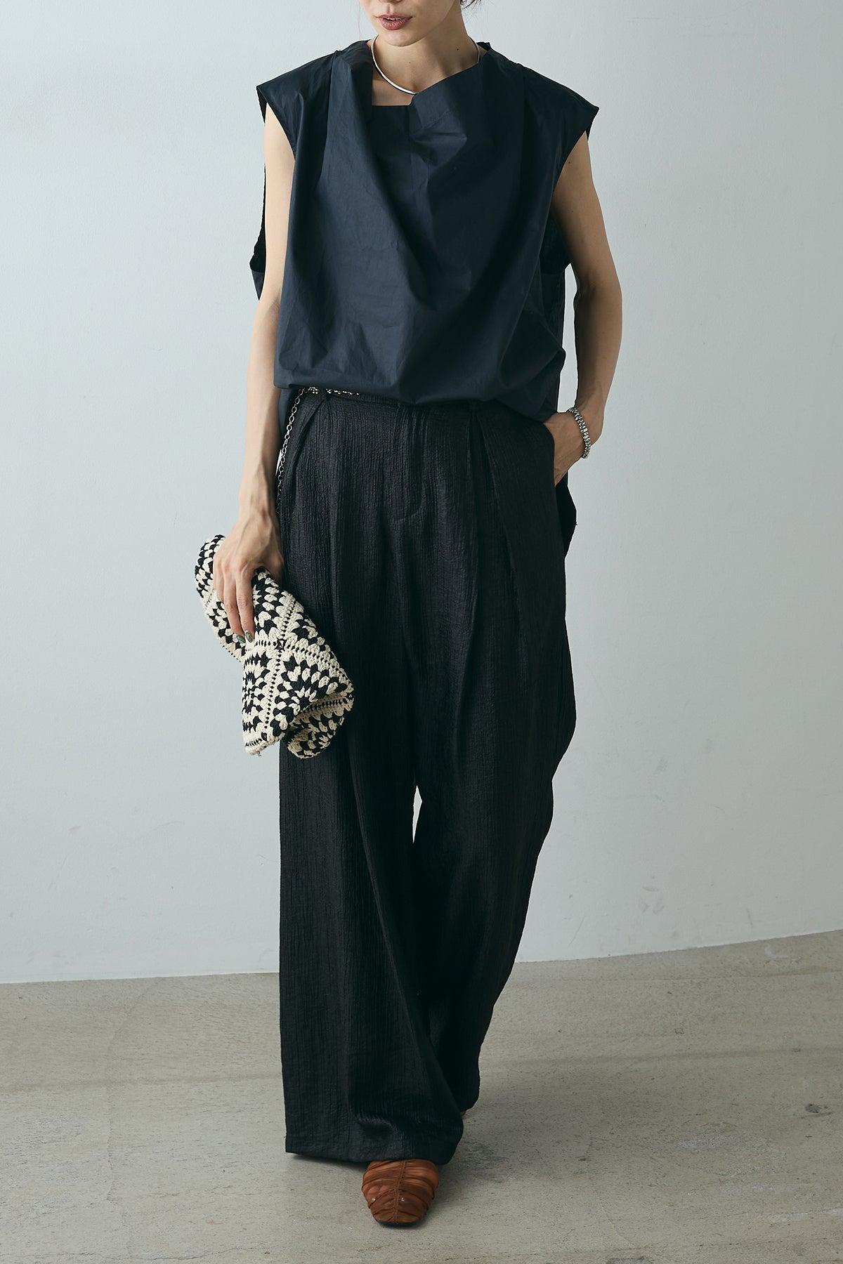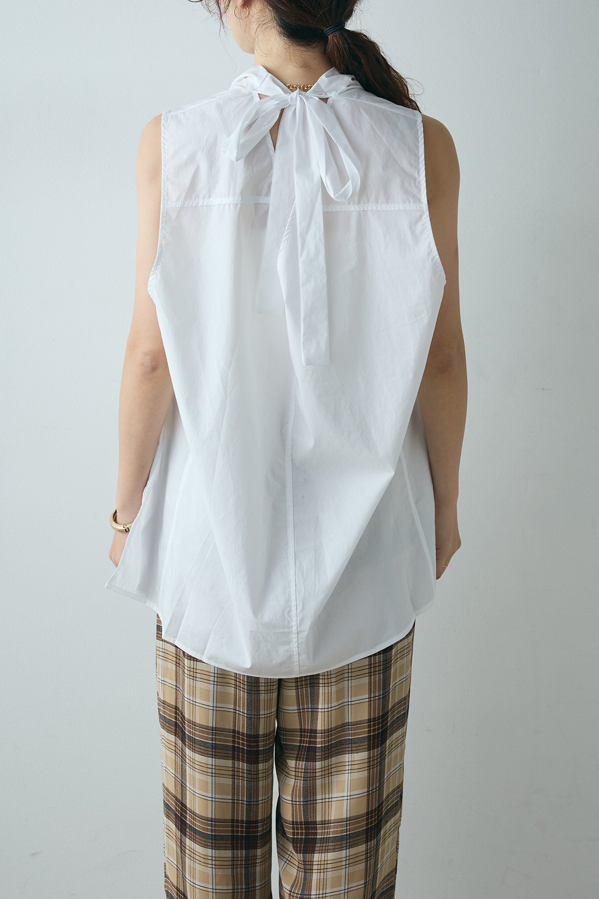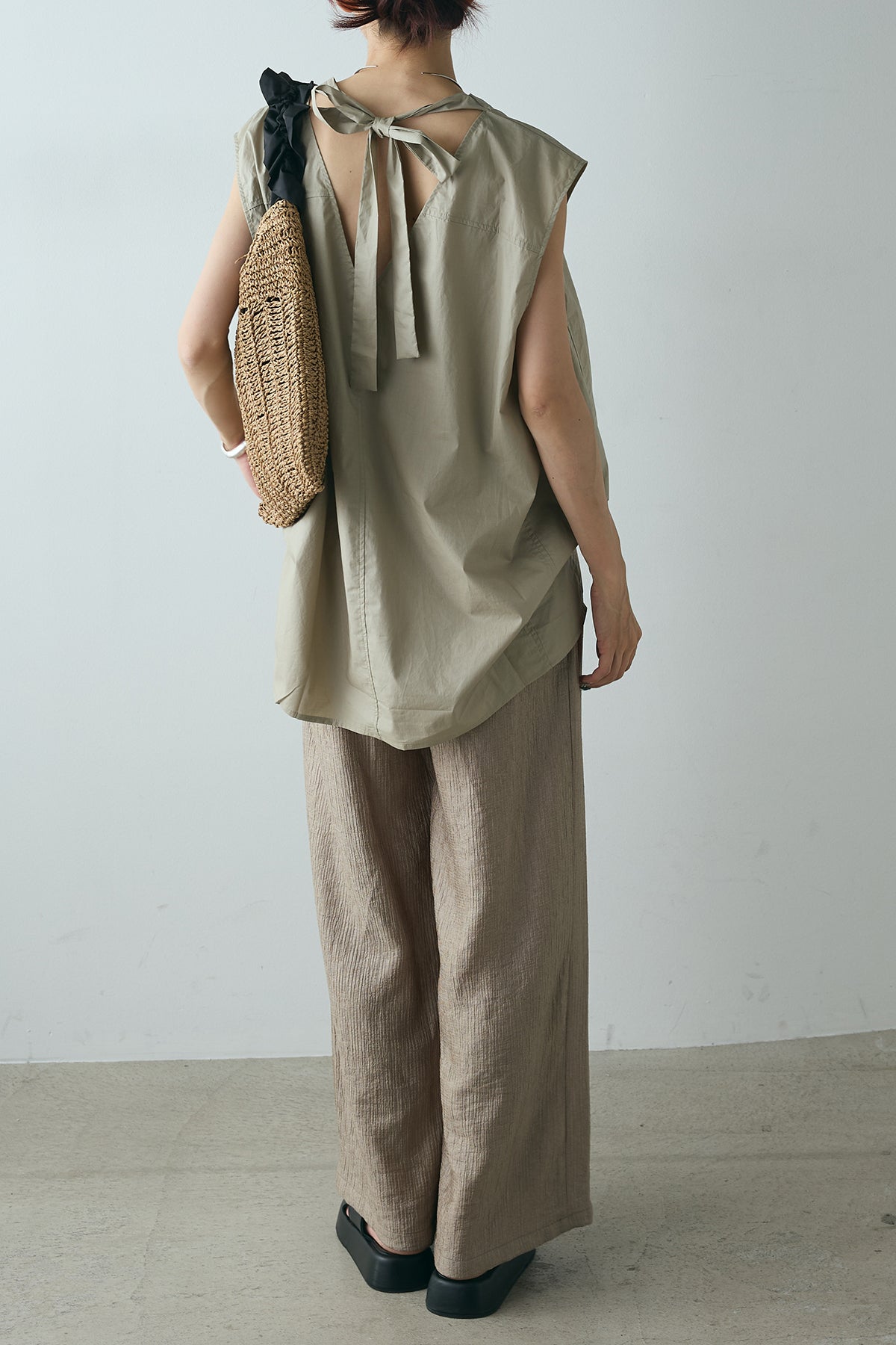 背中のバックオープンデザインが抜け感を演出するノースリーブトップス。程よいゆとりのあるストレートシルエットで体のラインを拾いすぎず、涼しげでリラクシーな着心地を実現。軽やかな素材感と洗練されたデザインが女性らしさを引き立て、幅広いシーンで活躍します。シンプルながらも華奢なディテールが魅力的で、インナーやボトムス次第でカジュアルにもフェミニンにもスタイリング可能。ロングシーズンで着回しやすい一着です。