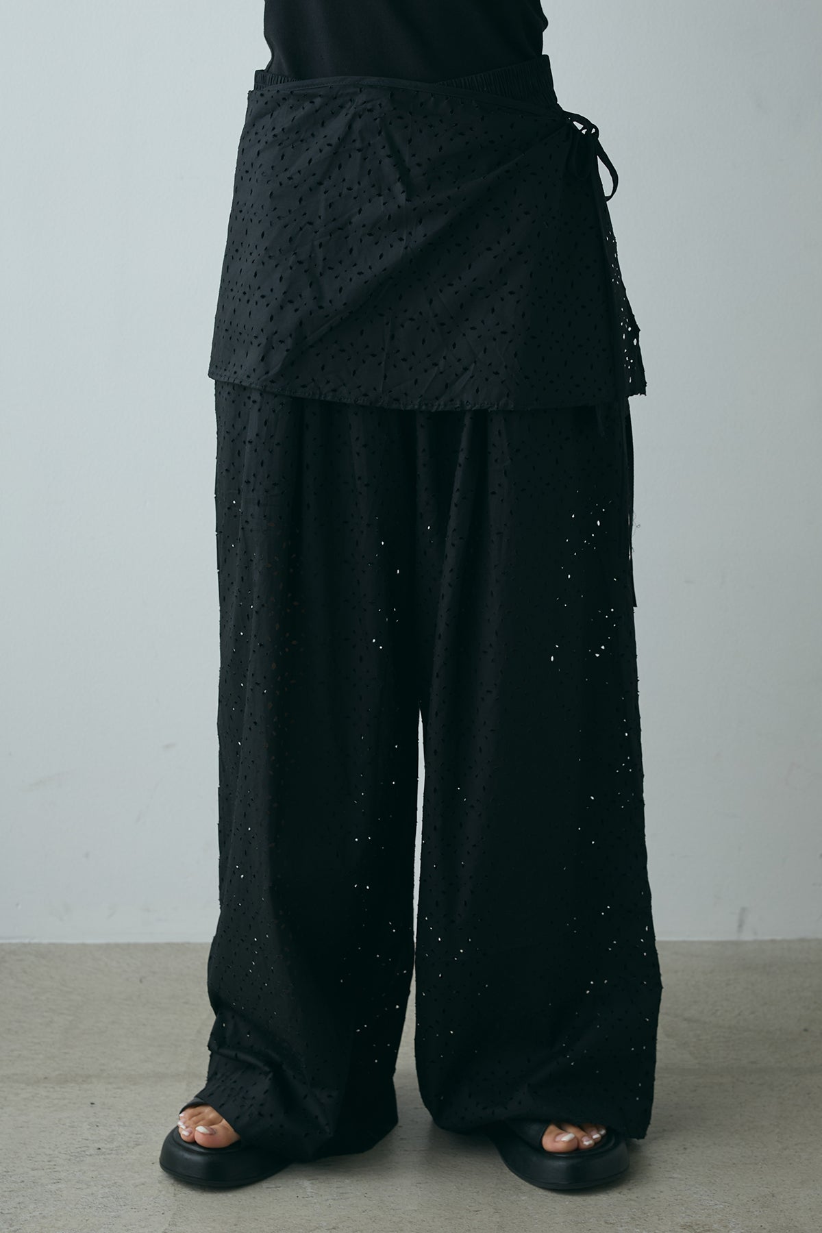 ◆ 透かし柄レイヤードワイドパンツ