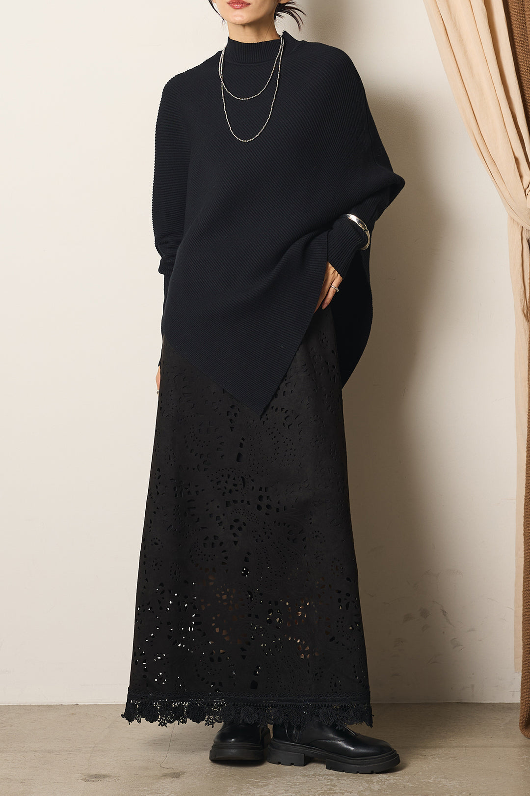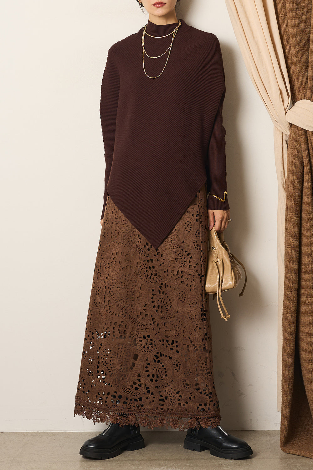 [SET]裾アシメデザインニットトップス+ランダム柄ワイドスカート(2set)
