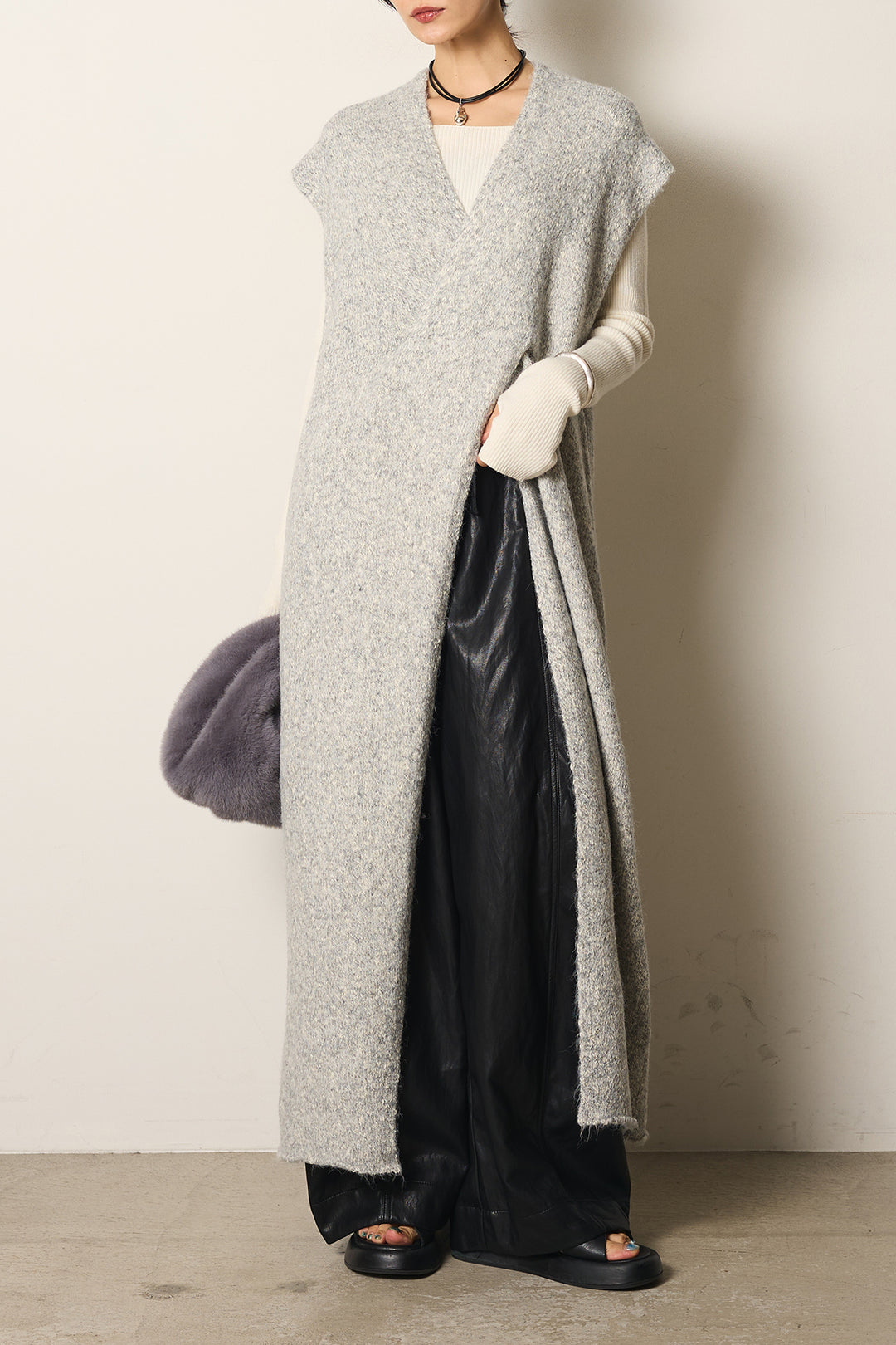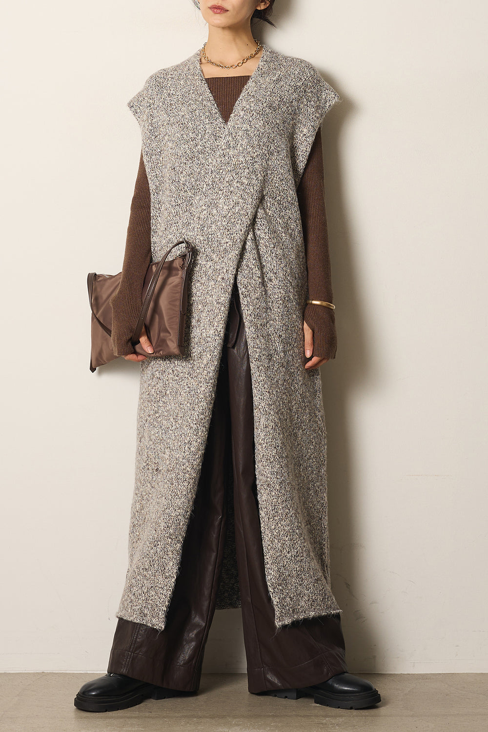 [SET]クロスデザインミックスニットワンピース+ミックスワイドニットスカート(2set)