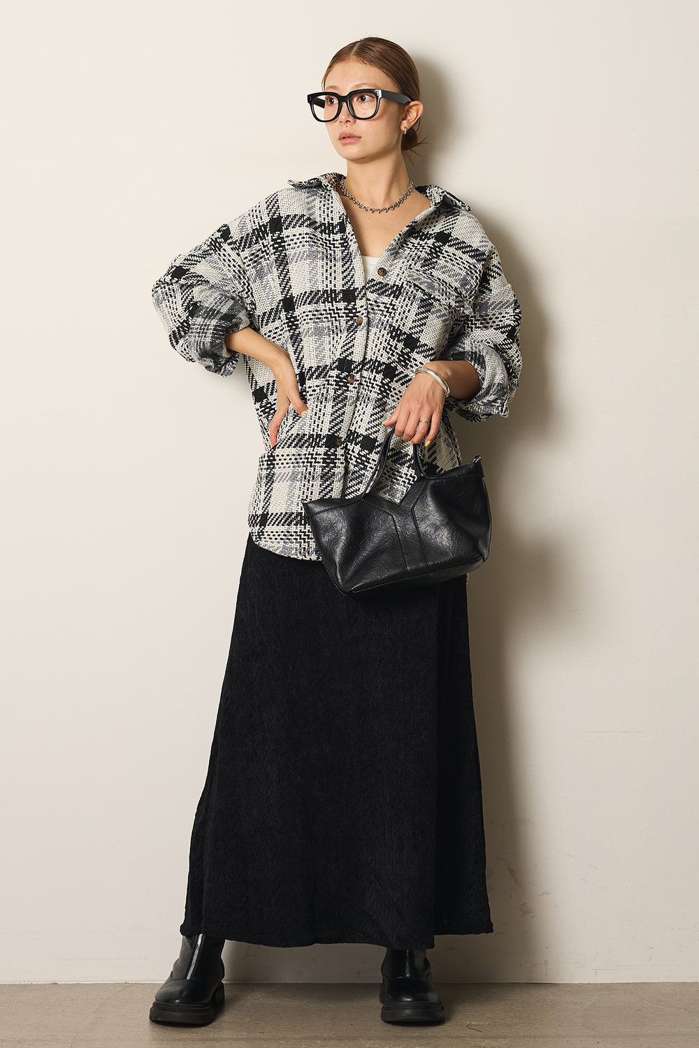 [SET]チェック柄ポケットツイードジャケット+ライン柄ベロアスカート(2set)