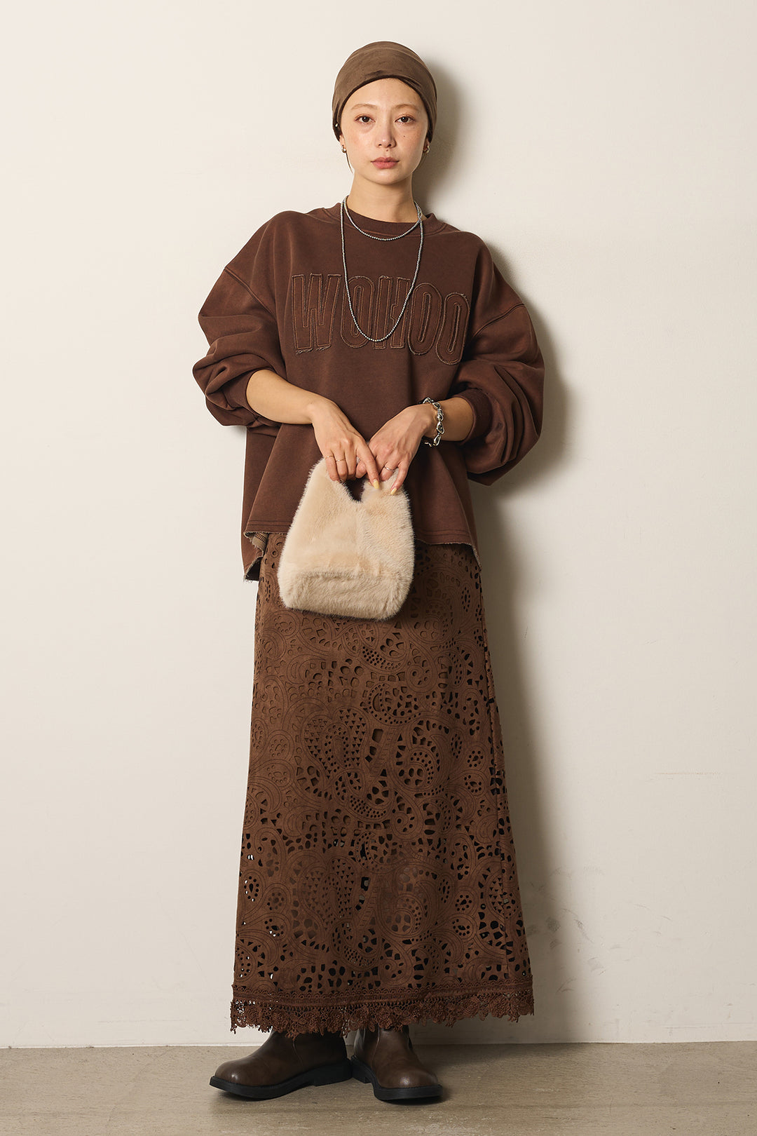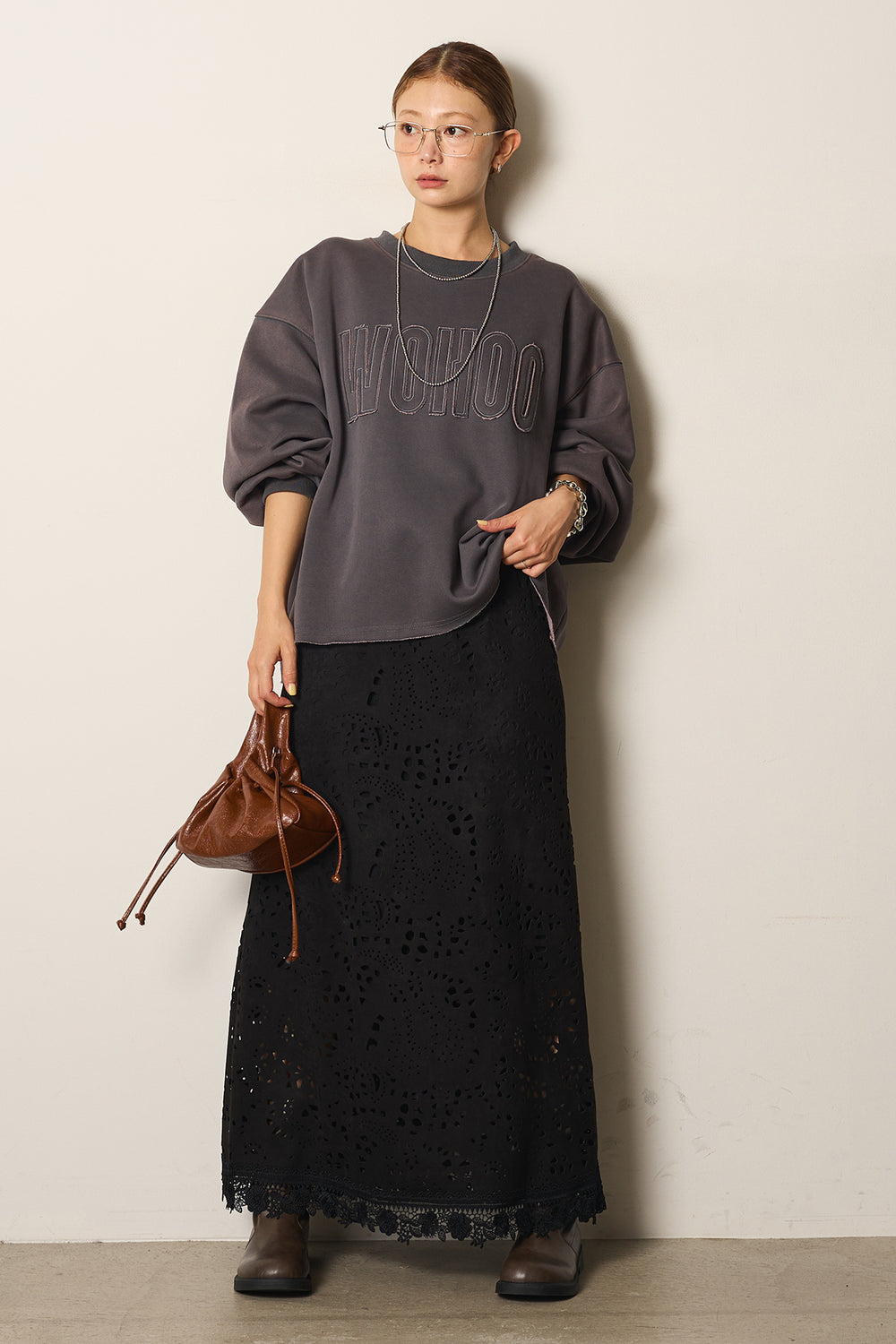 [SET]ピグメント配色ロゴスウェット+ランダム柄ワイドスカート(2set)