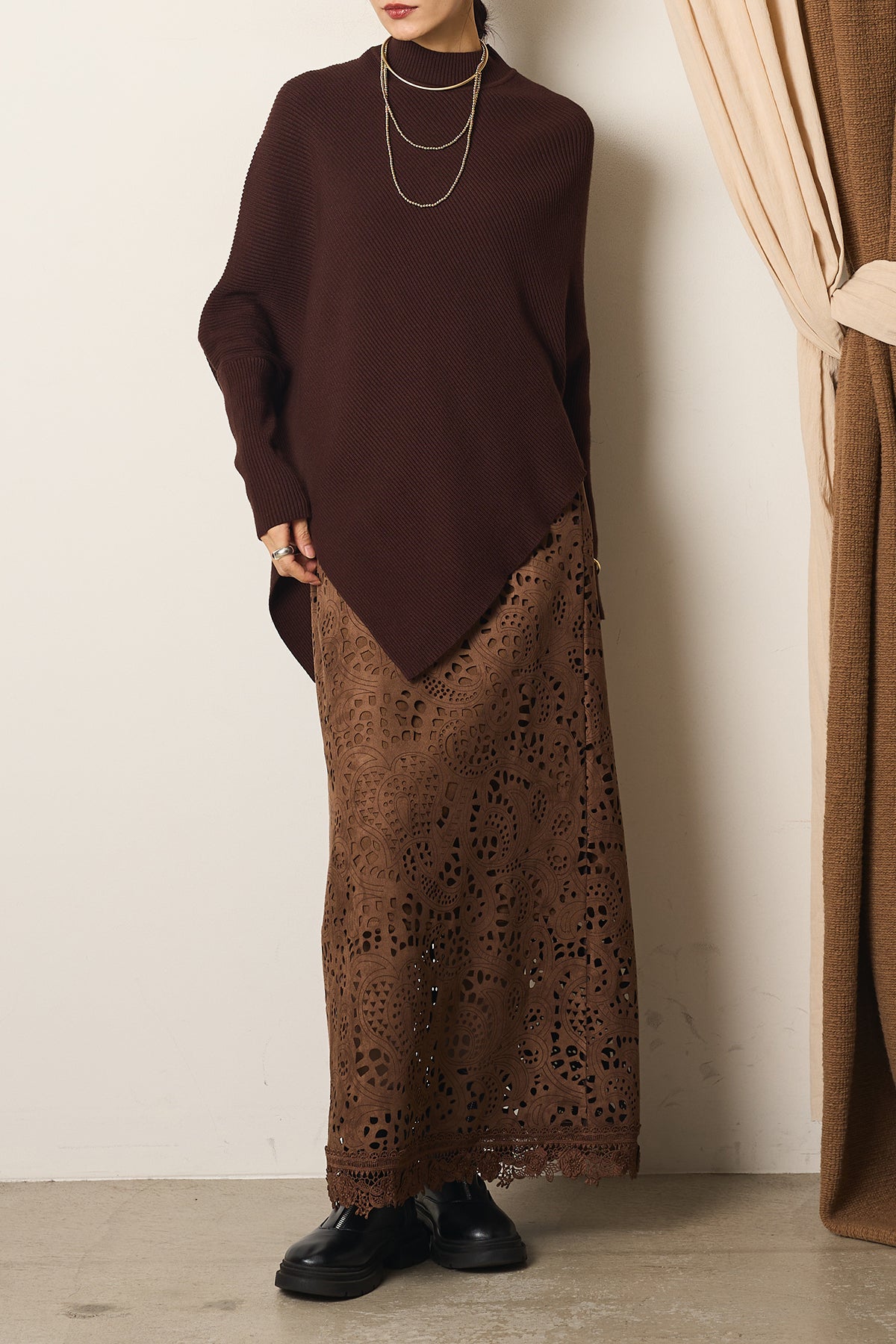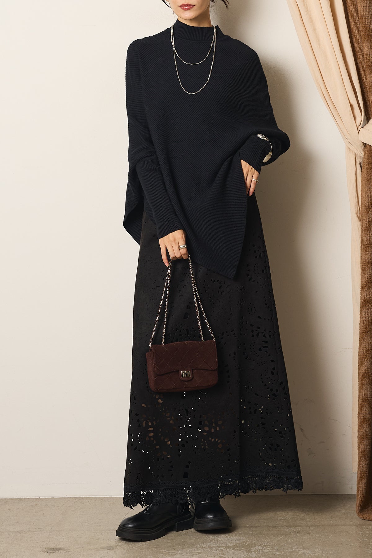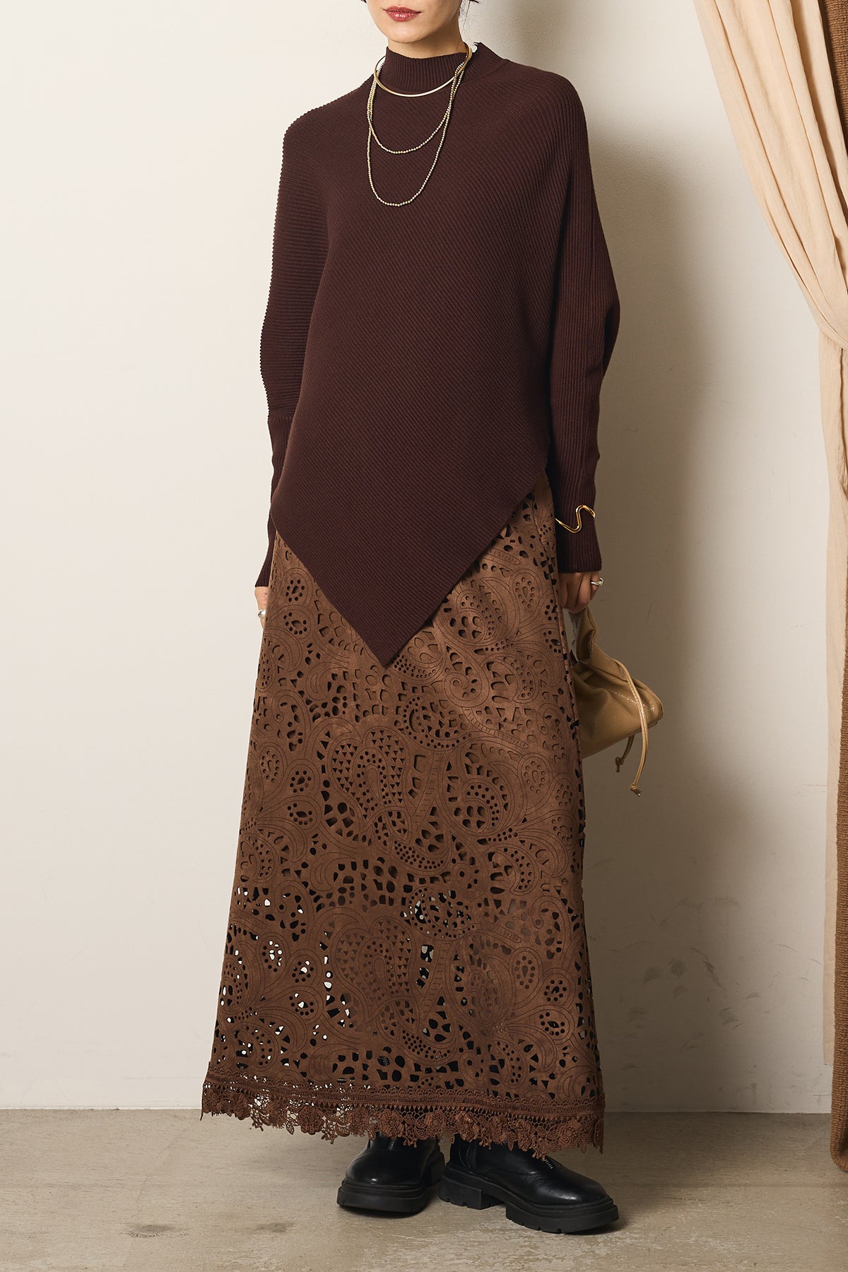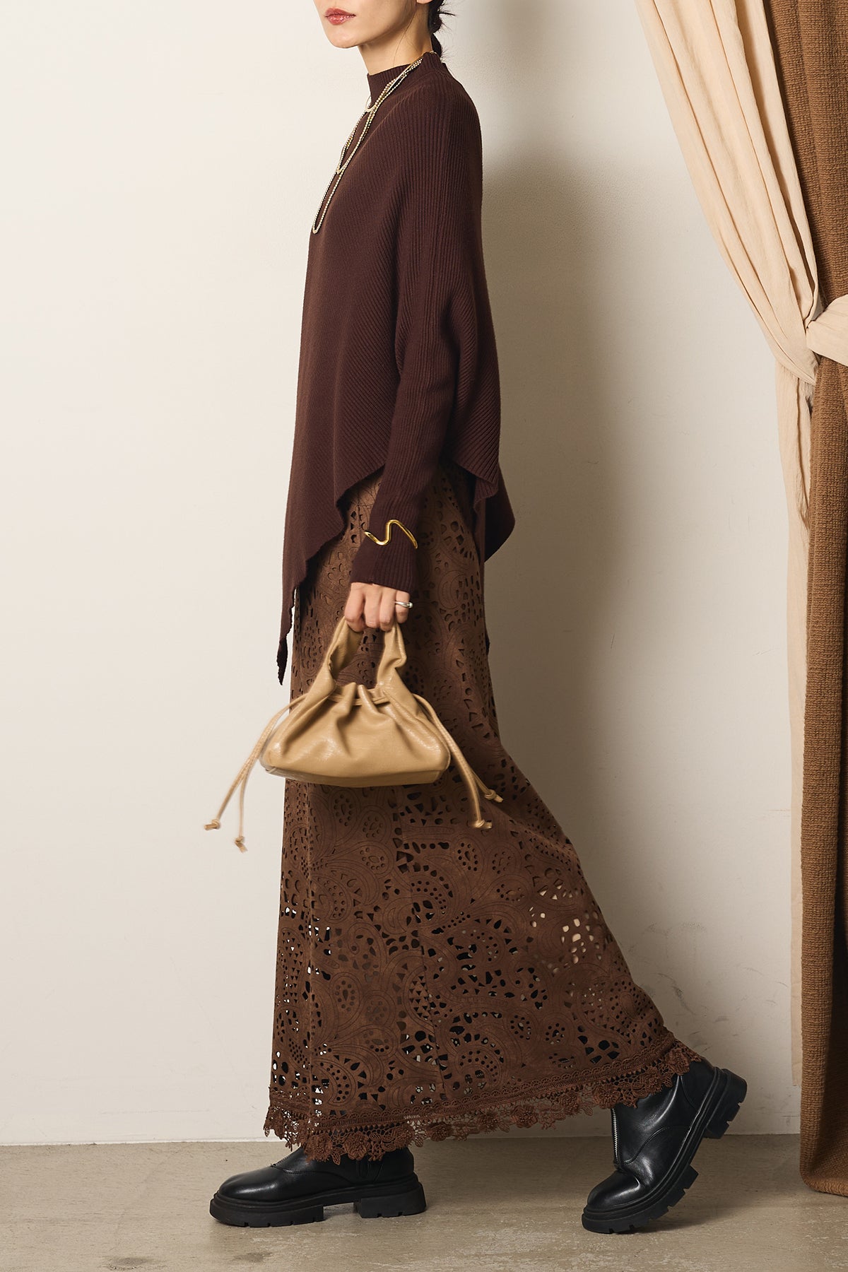 存在感のあるランダム柄が印象的なワイドスカート。レース調の透かし模様が軽やかな抜け感を生み、動くたびに表情豊かなスタイルを演出します。落ち着いたカラーで取り入れやすく、シンプルなトップスと合わせるだけでシーズンらしいコーディネートが完成する一枚です。