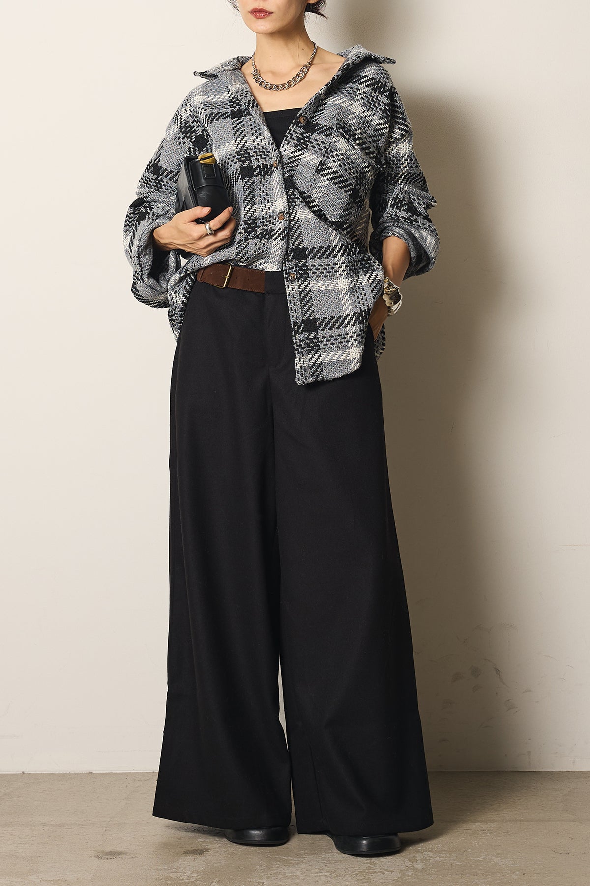 フェイクレザーサイドベルトワイドパンツの他のセットページはこちら