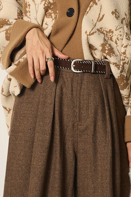 立体感のあるステッチがアクセントになったワイドパンツ。付属のベルトでウエストを引き締めつつ、ゆったりとしたシルエットがリラックス感を演出します。落ち感のある素材が動くたびに美しいラインを描き、シンプルなトップスと合わせるだけで洗練されたスタイルが完成する一本です。