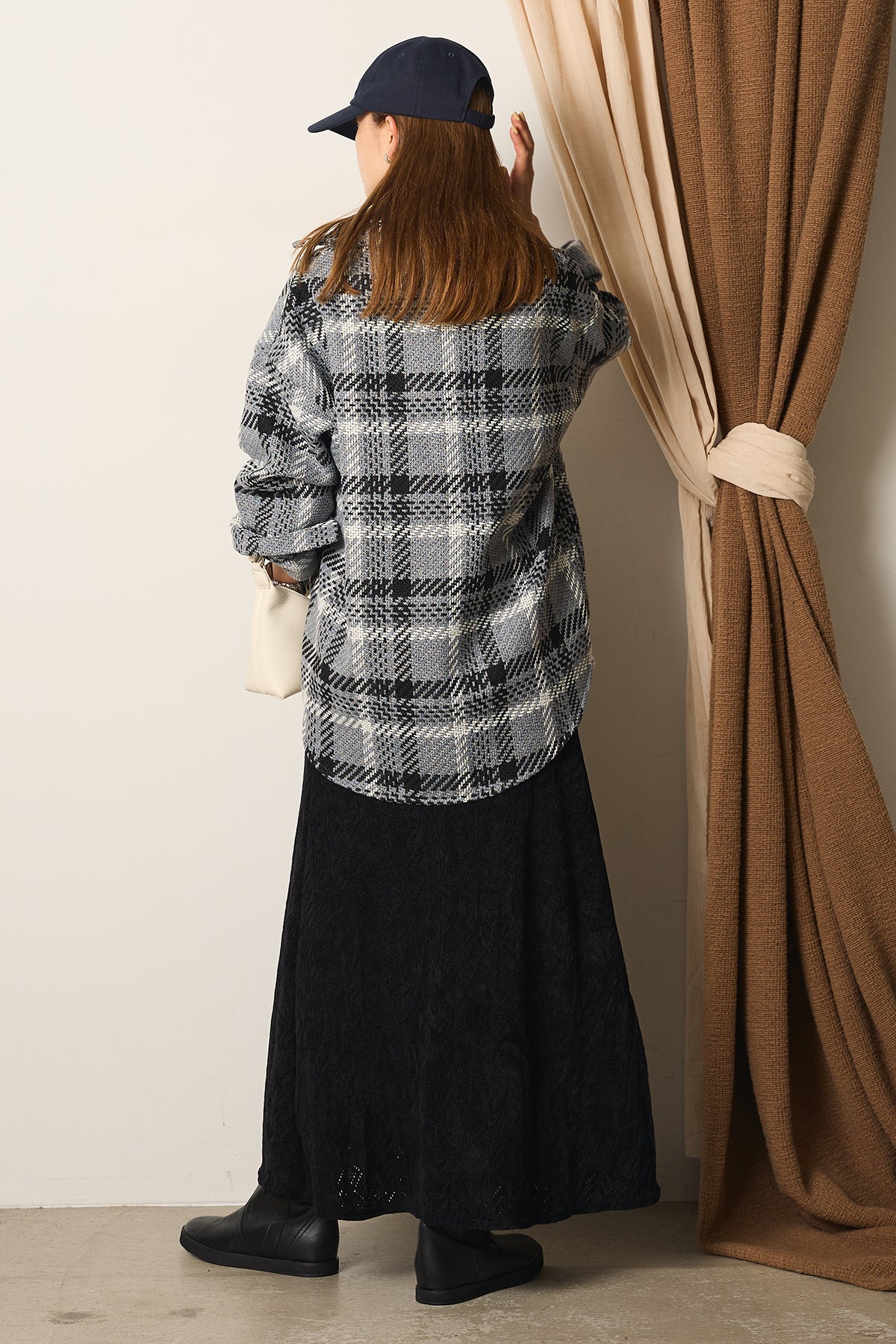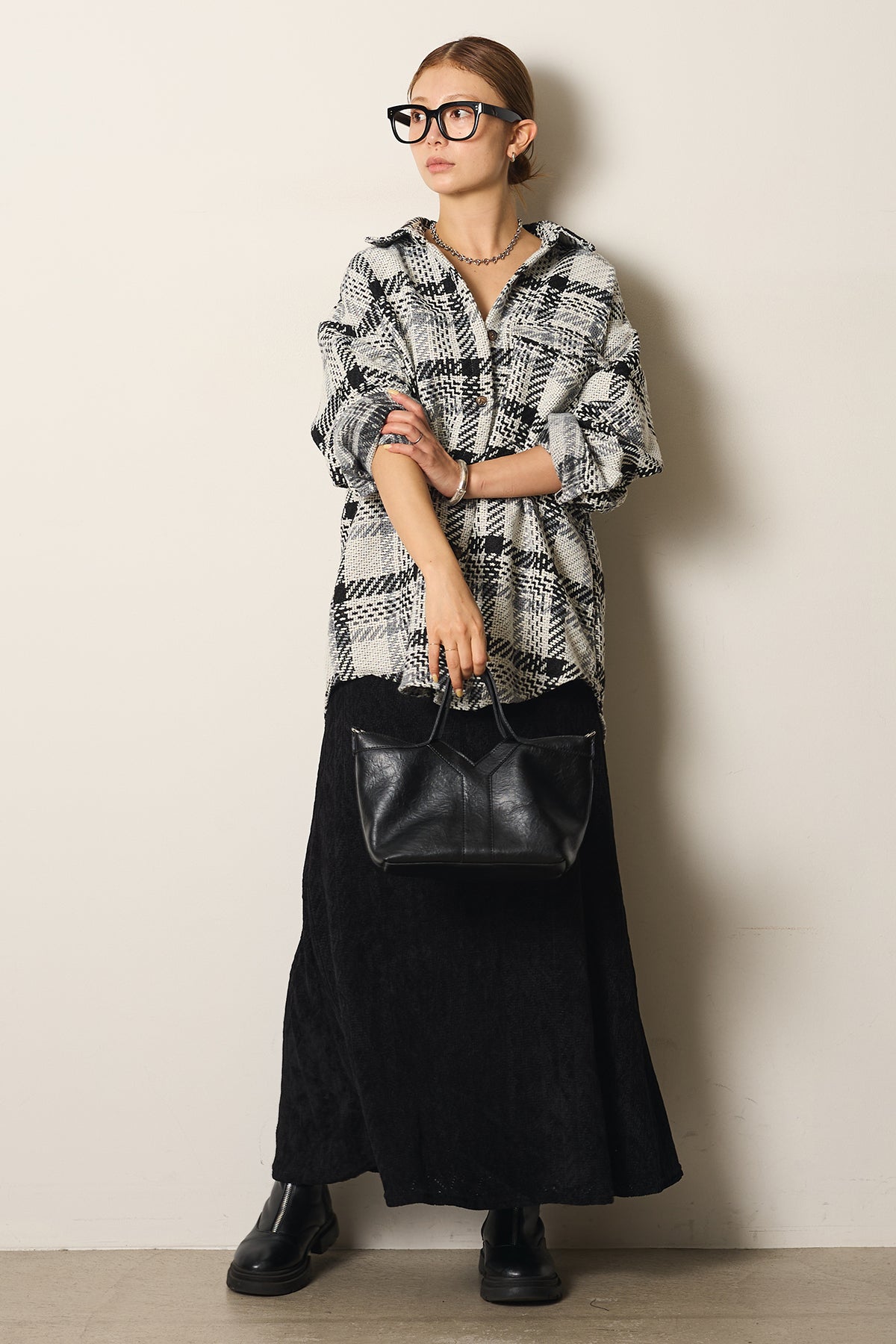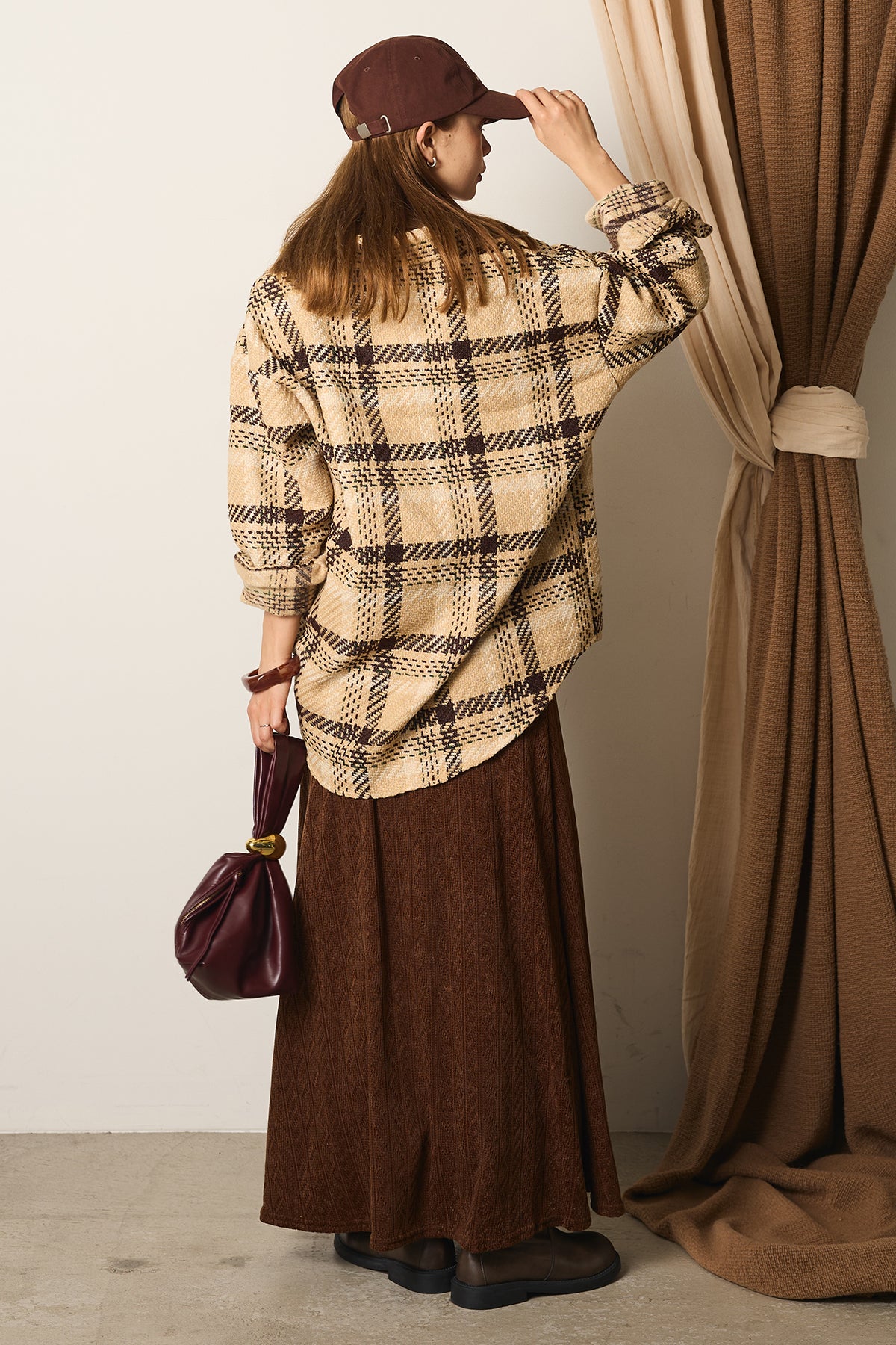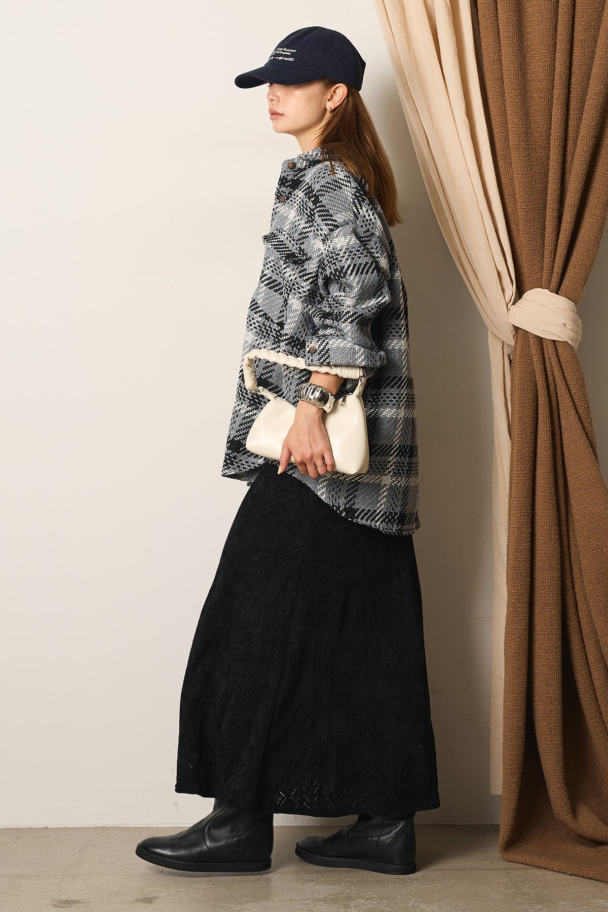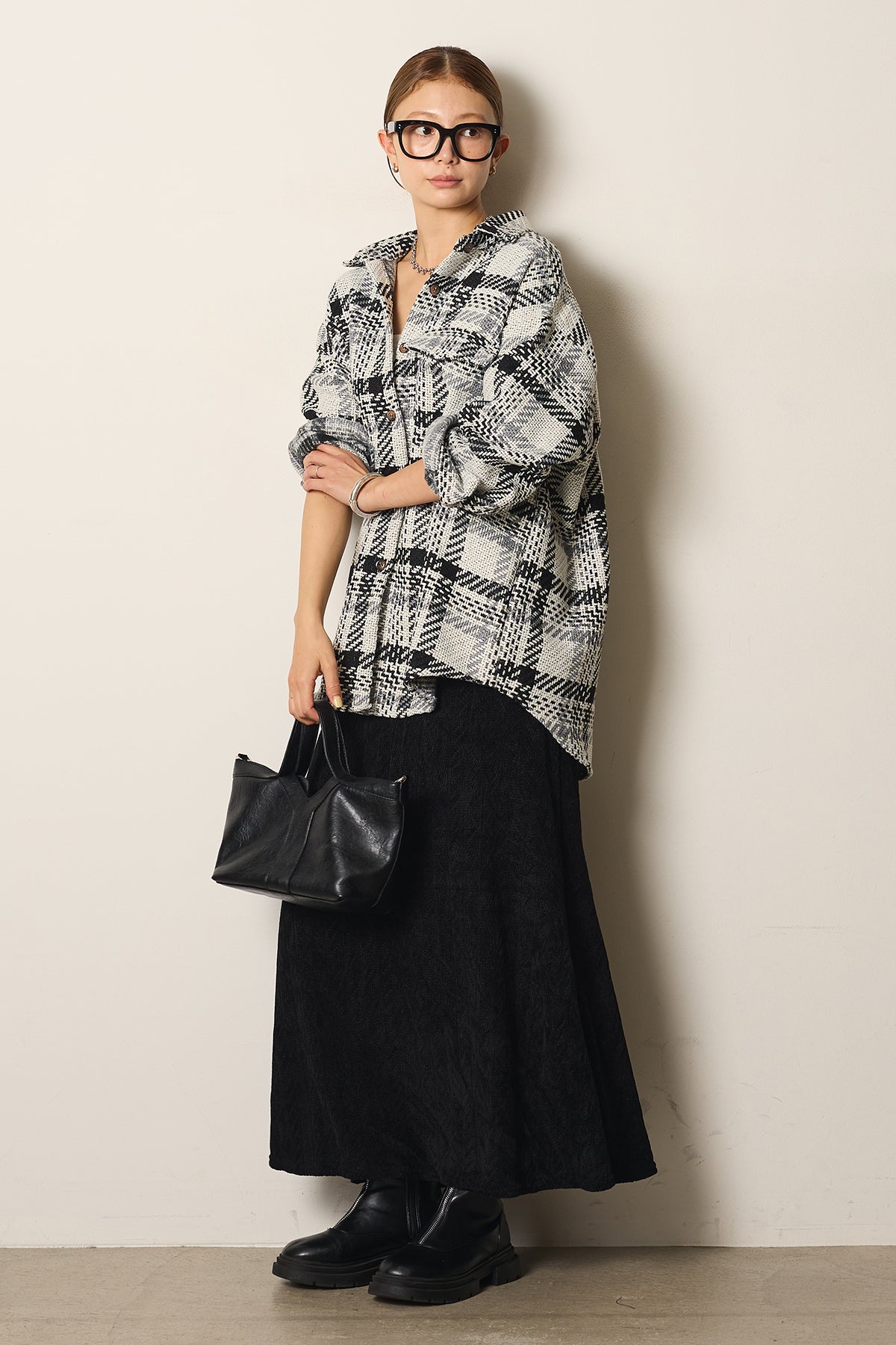 存在感のあるチェック柄が目を引くツイードジャケット。起毛感のある柔らかな風合いで、シーズンらしい温もりをプラスします。ゆとりのあるシルエットに大きめのポケットをあしらい、実用性とデザイン性を兼ね備えた一枚。羽織るだけでコーディネートが華やぐアイテムです。