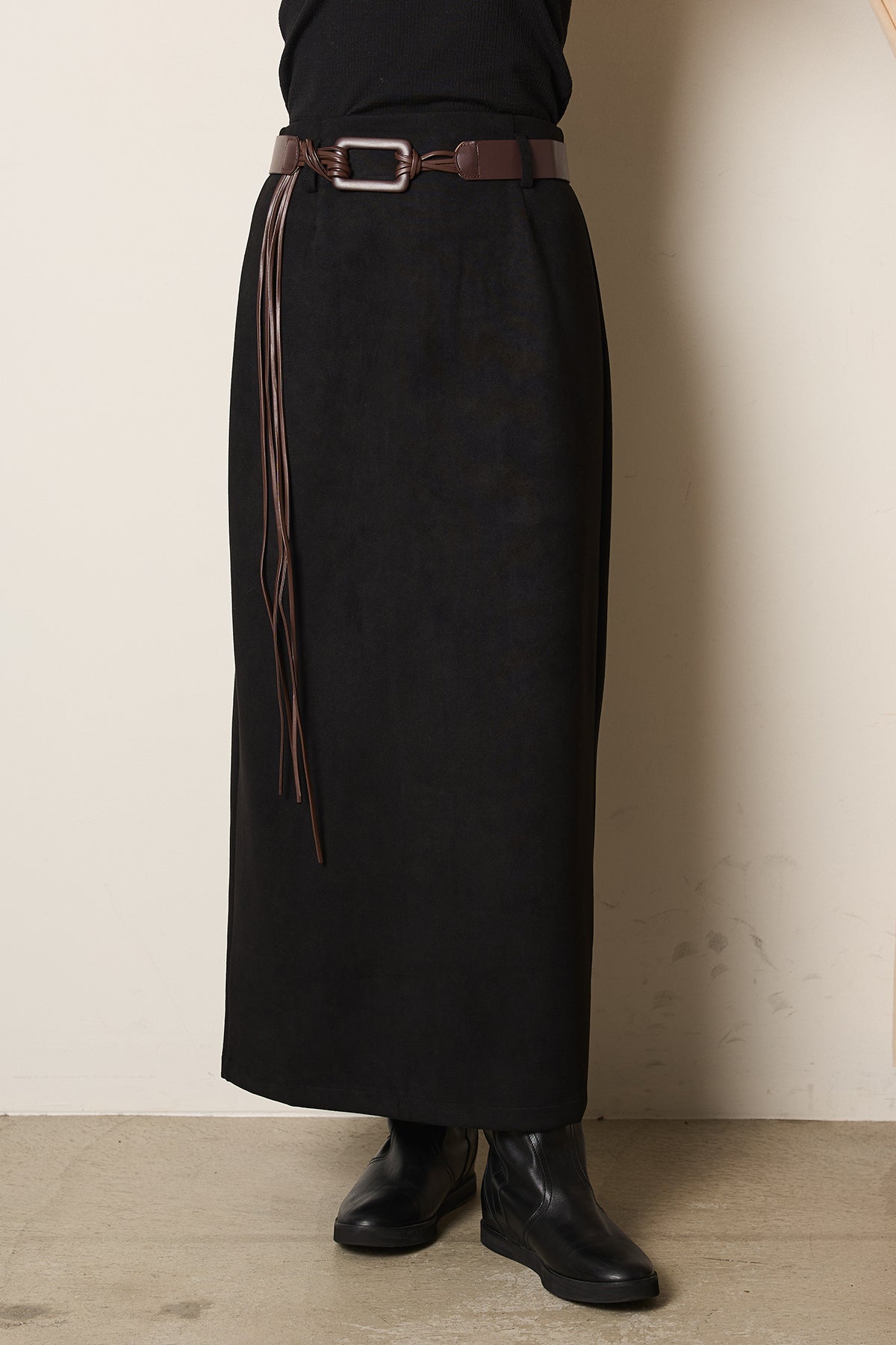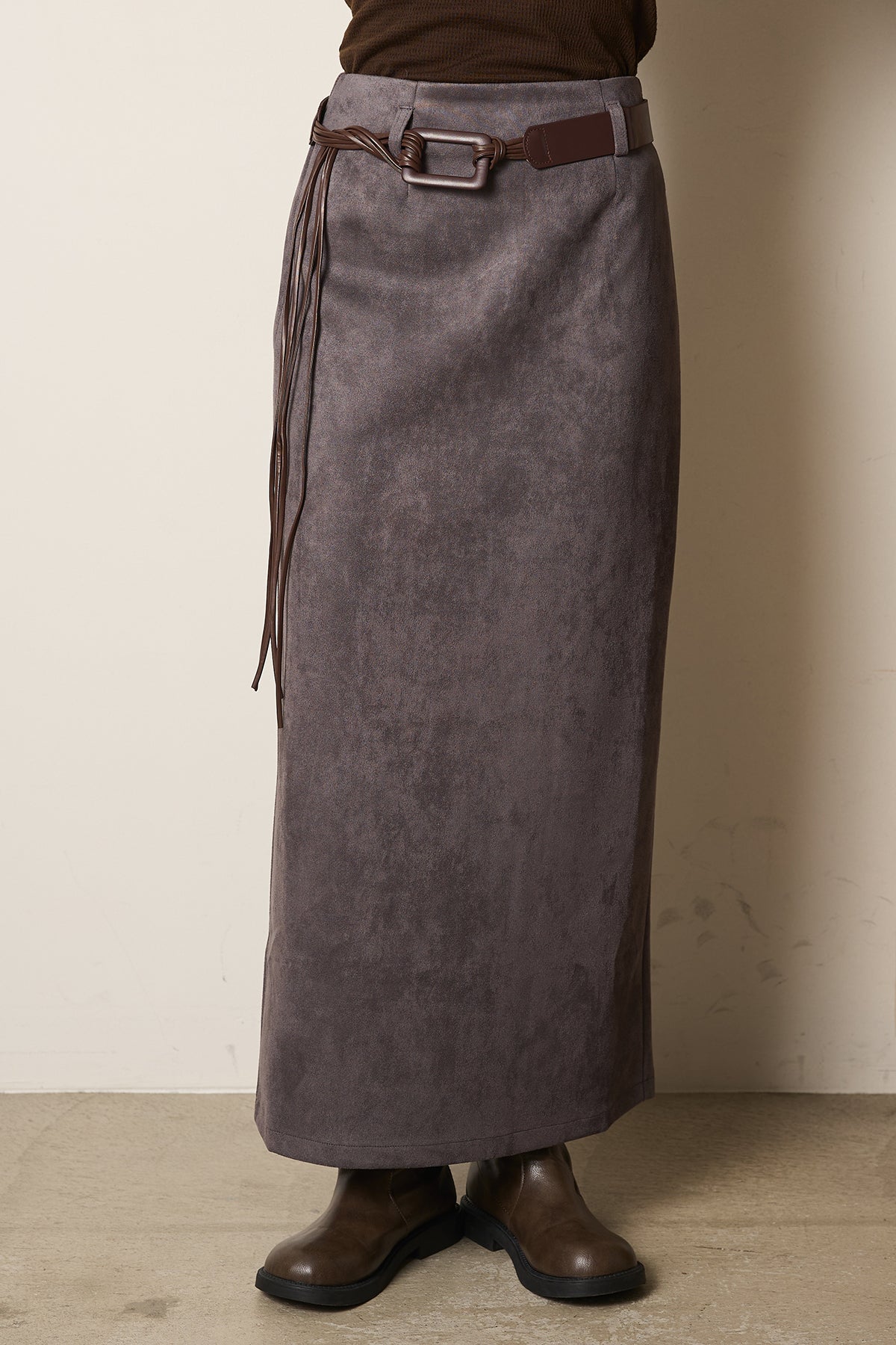 柔らかなフェイクスウェード素材を使用したワイドスカート。付属のベルトがウエストラインを引き締め、シンプルながらもこなれ感のあるスタイルに仕上げます。上品な質感と落ち感のあるシルエットで、ニットやブラウスとも好相性。秋冬のコーディネートに取り入れやすい一枚です。