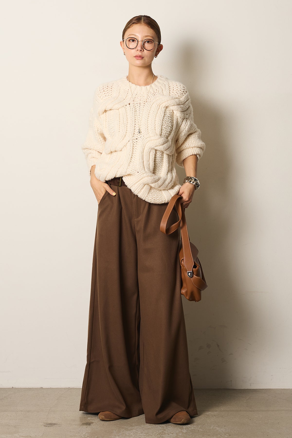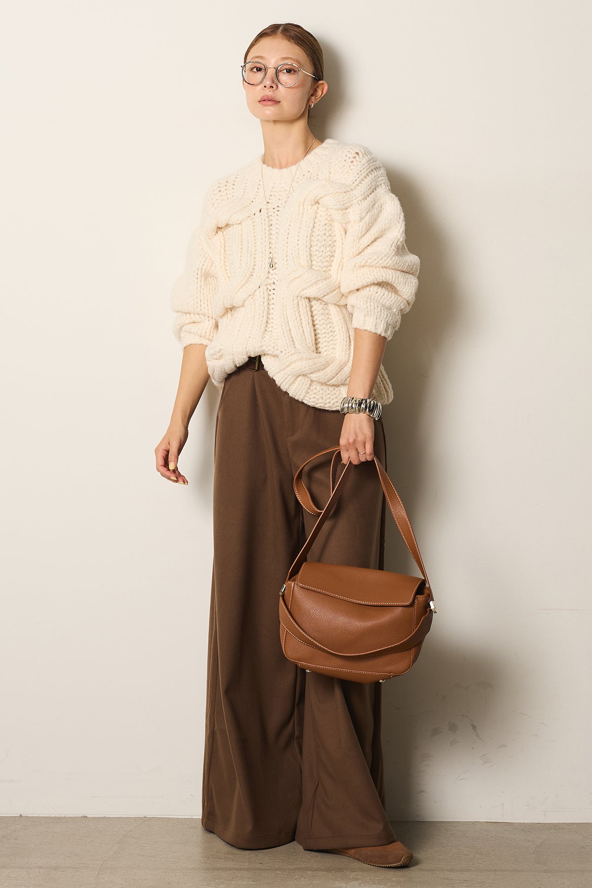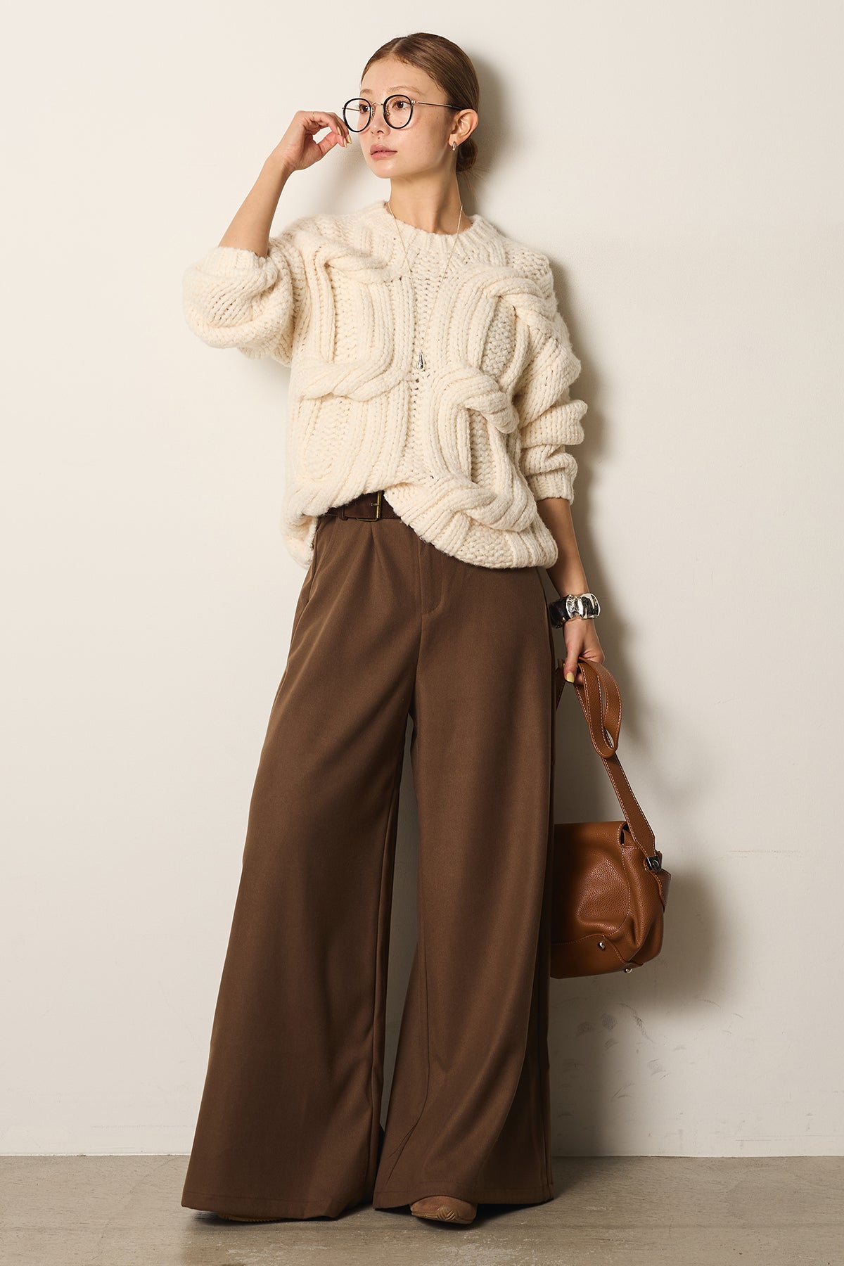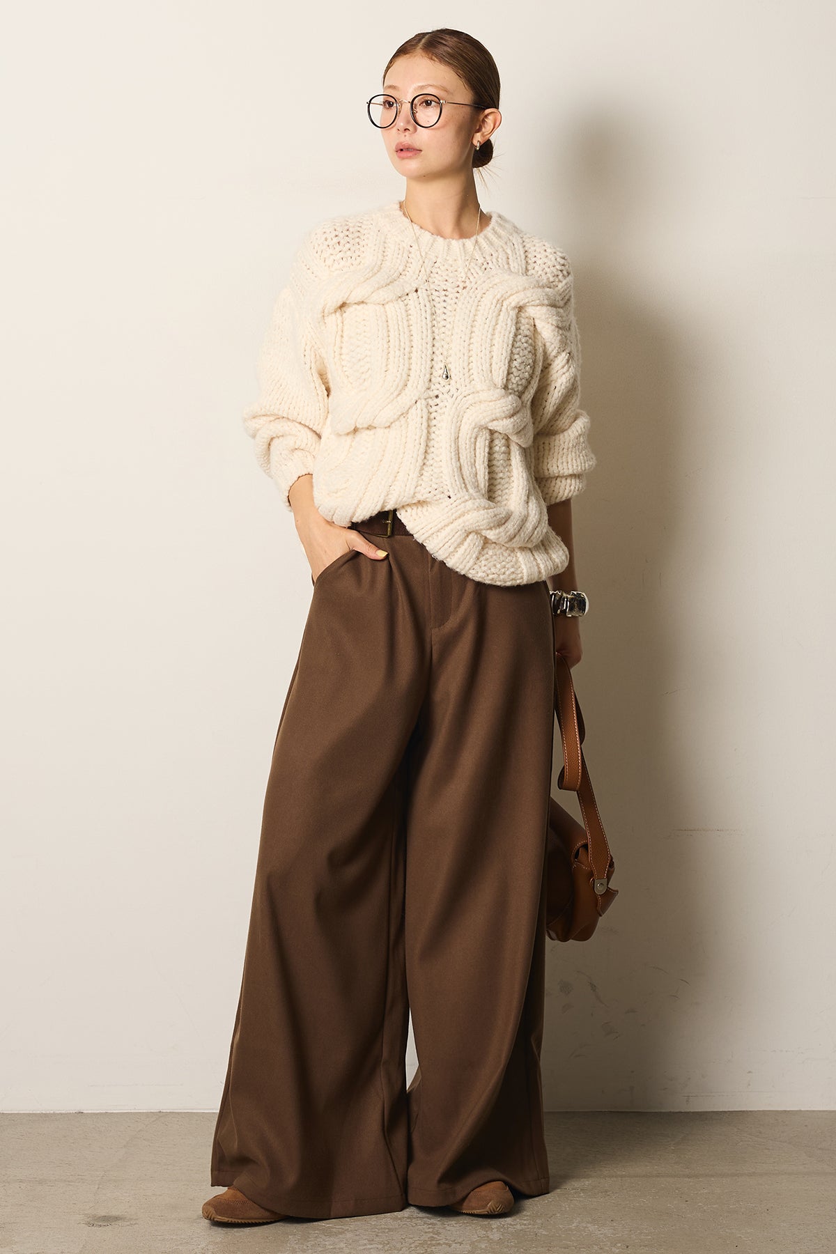 存在感のある立体的なケーブル編みが特徴のニットトップス。ふんわりとしたボリューム感がシーズンムードを高め、シンプルなスタイリングに加えるだけで華やかな印象に。柔らかな素材で着心地も良く、デイリーから冬のお出かけまで幅広く活躍する一枚です。