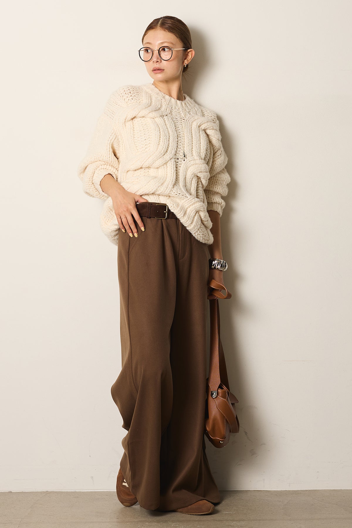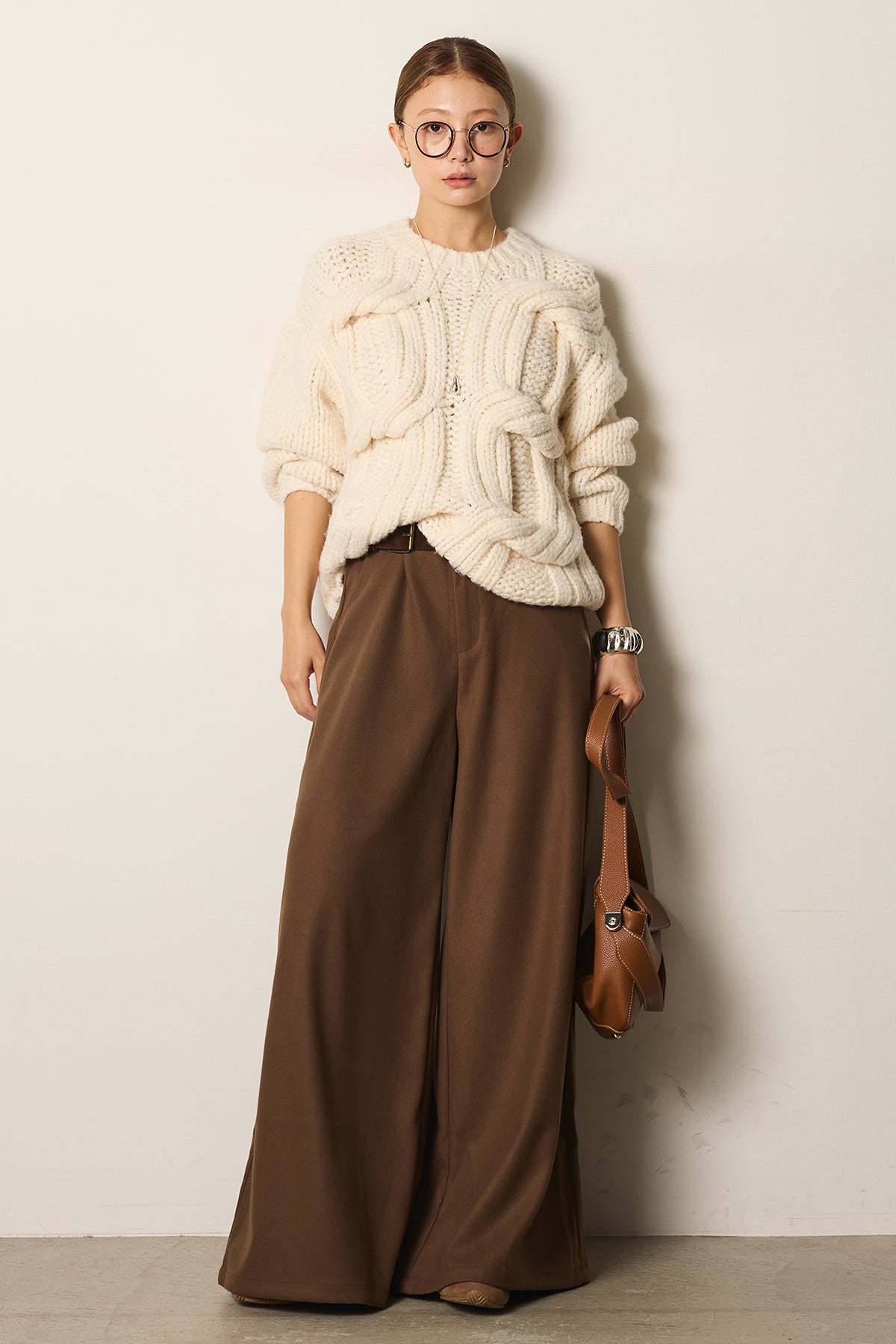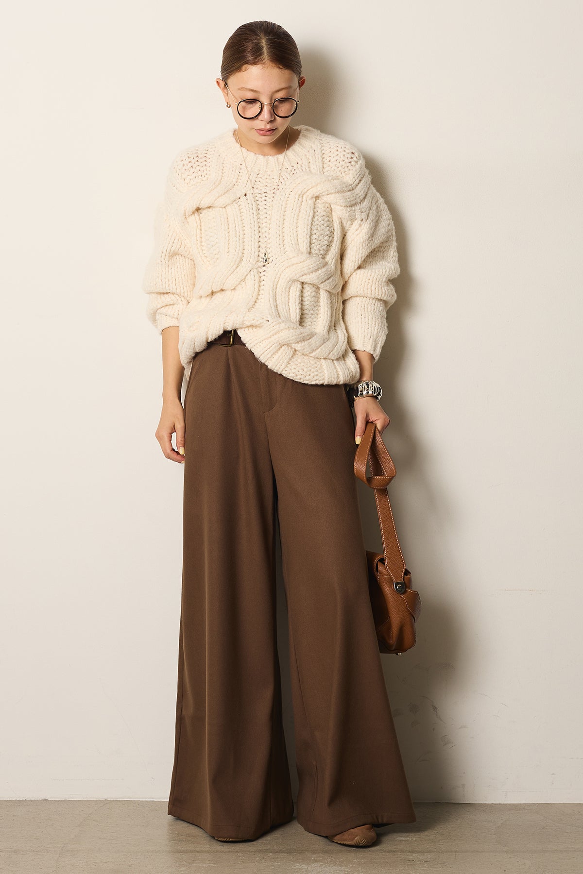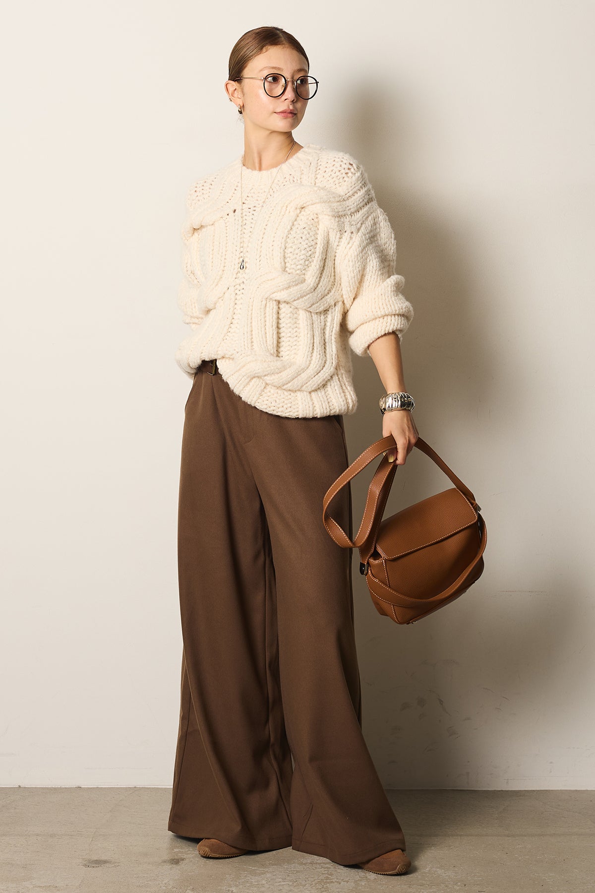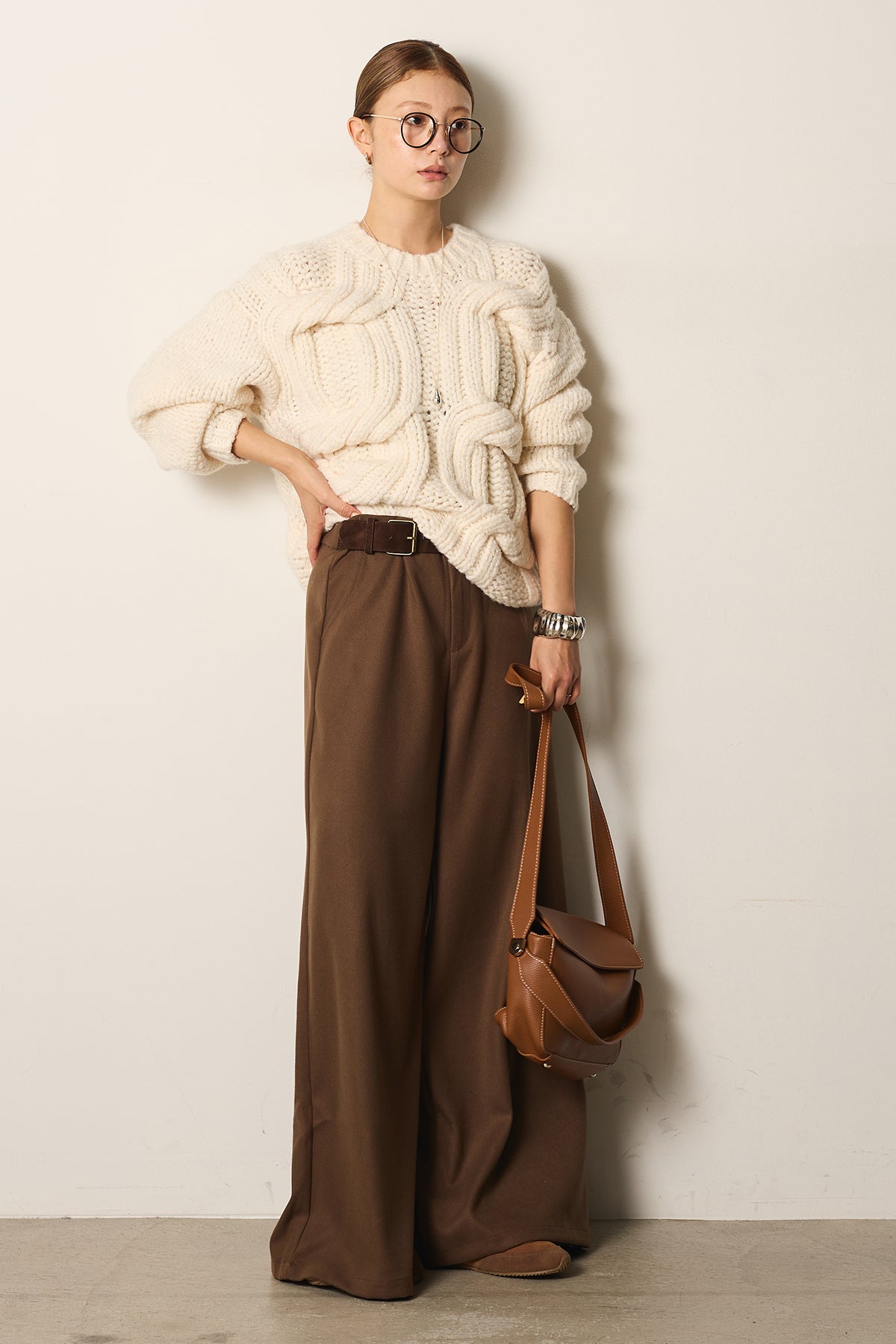 存在感のある立体的なケーブル編みが特徴のニットトップス。ふんわりとしたボリューム感がシーズンムードを高め、シンプルなスタイリングに加えるだけで華やかな印象に。柔らかな素材で着心地も良く、デイリーから冬のお出かけまで幅広く活躍する一枚です。