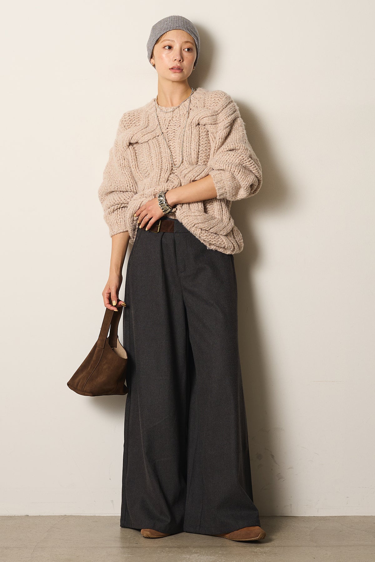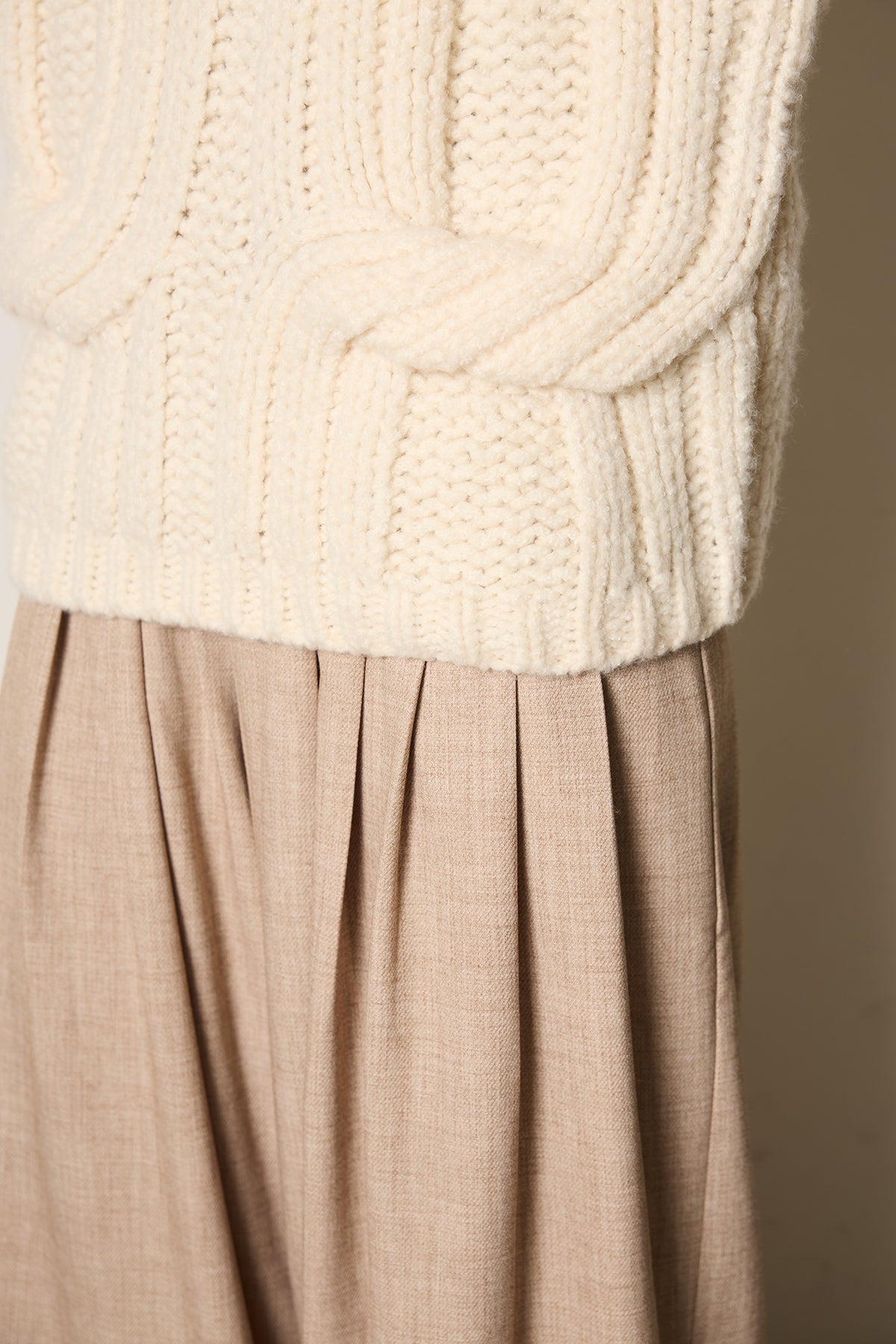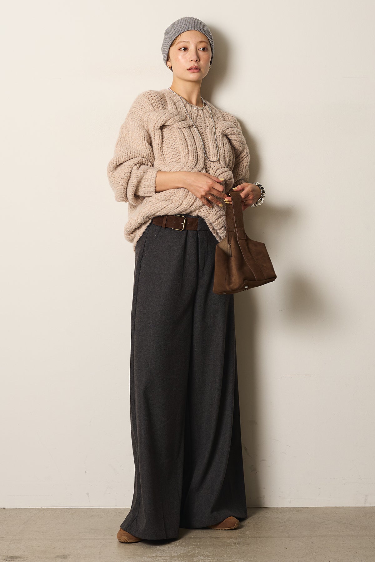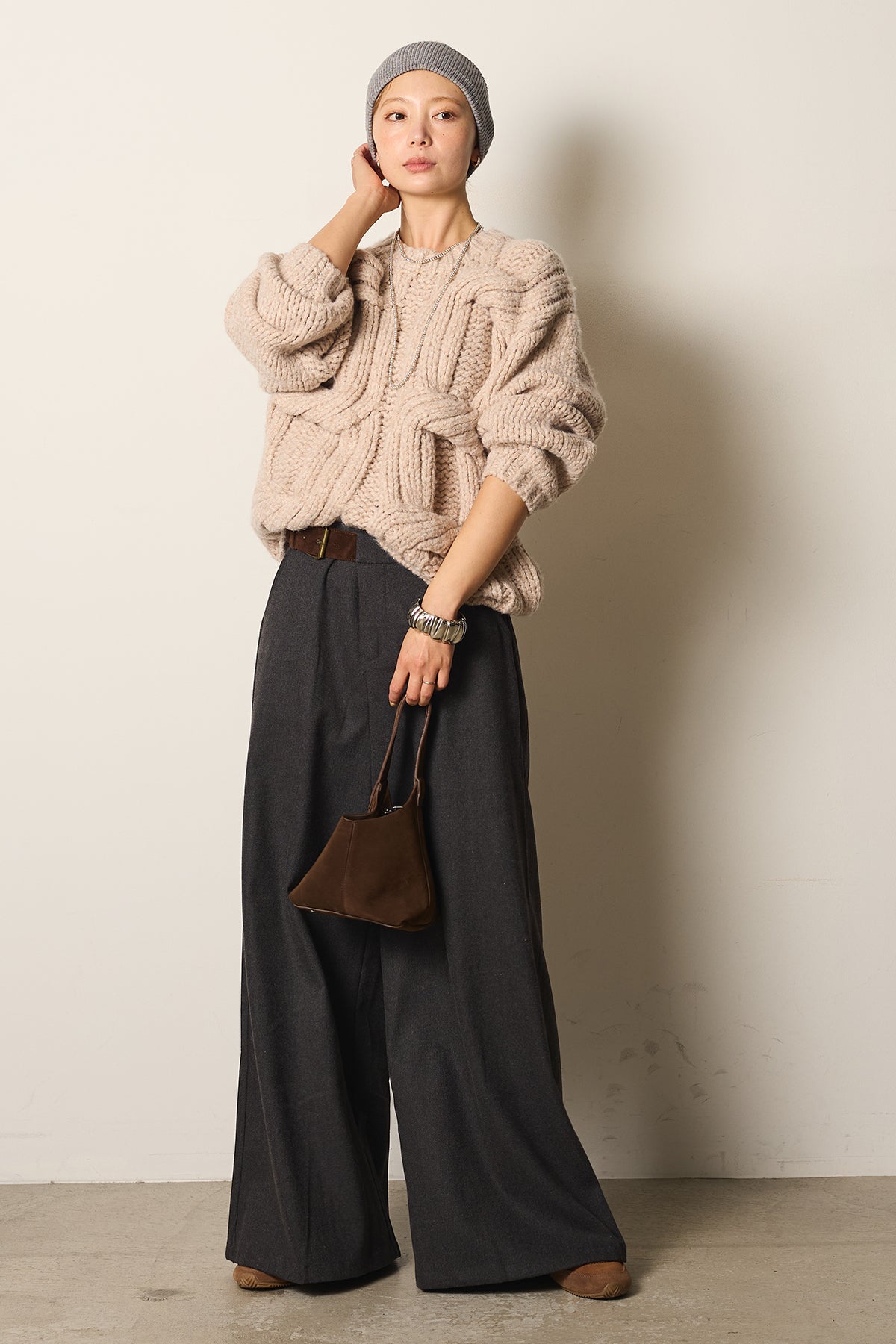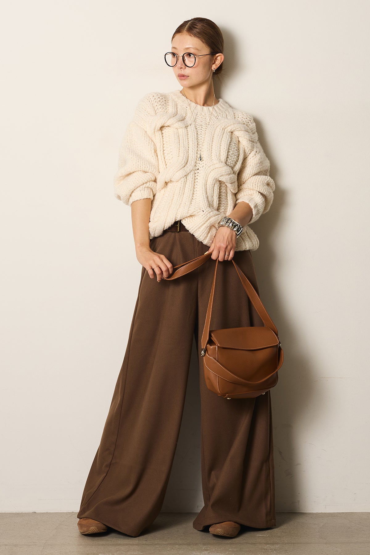 存在感のある立体的なケーブル編みが特徴のニットトップス。ふんわりとしたボリューム感がシーズンムードを高め、シンプルなスタイリングに加えるだけで華やかな印象に。柔らかな素材で着心地も良く、デイリーから冬のお出かけまで幅広く活躍する一枚です。