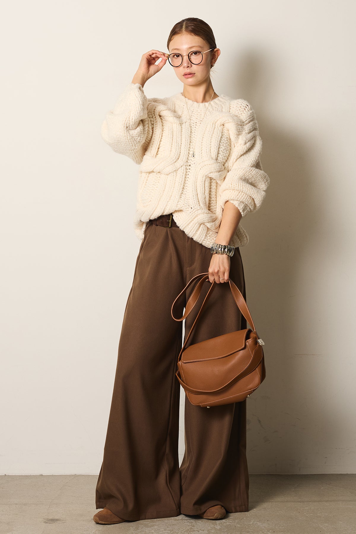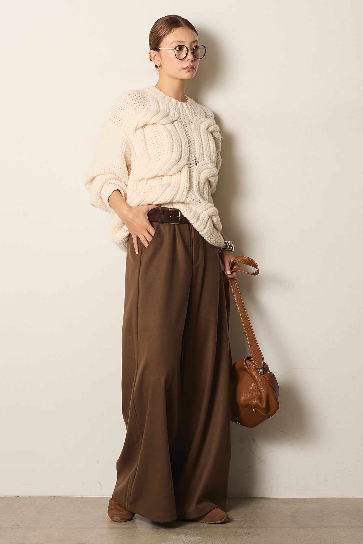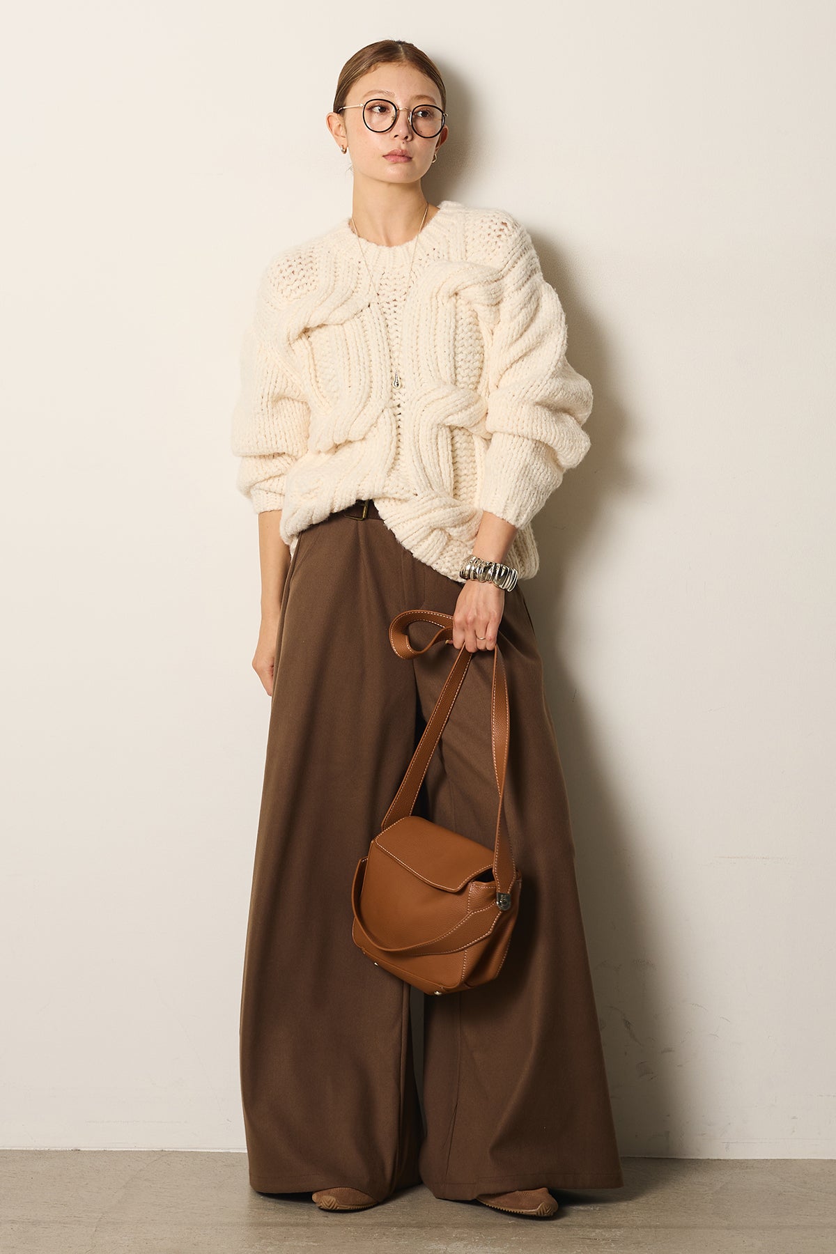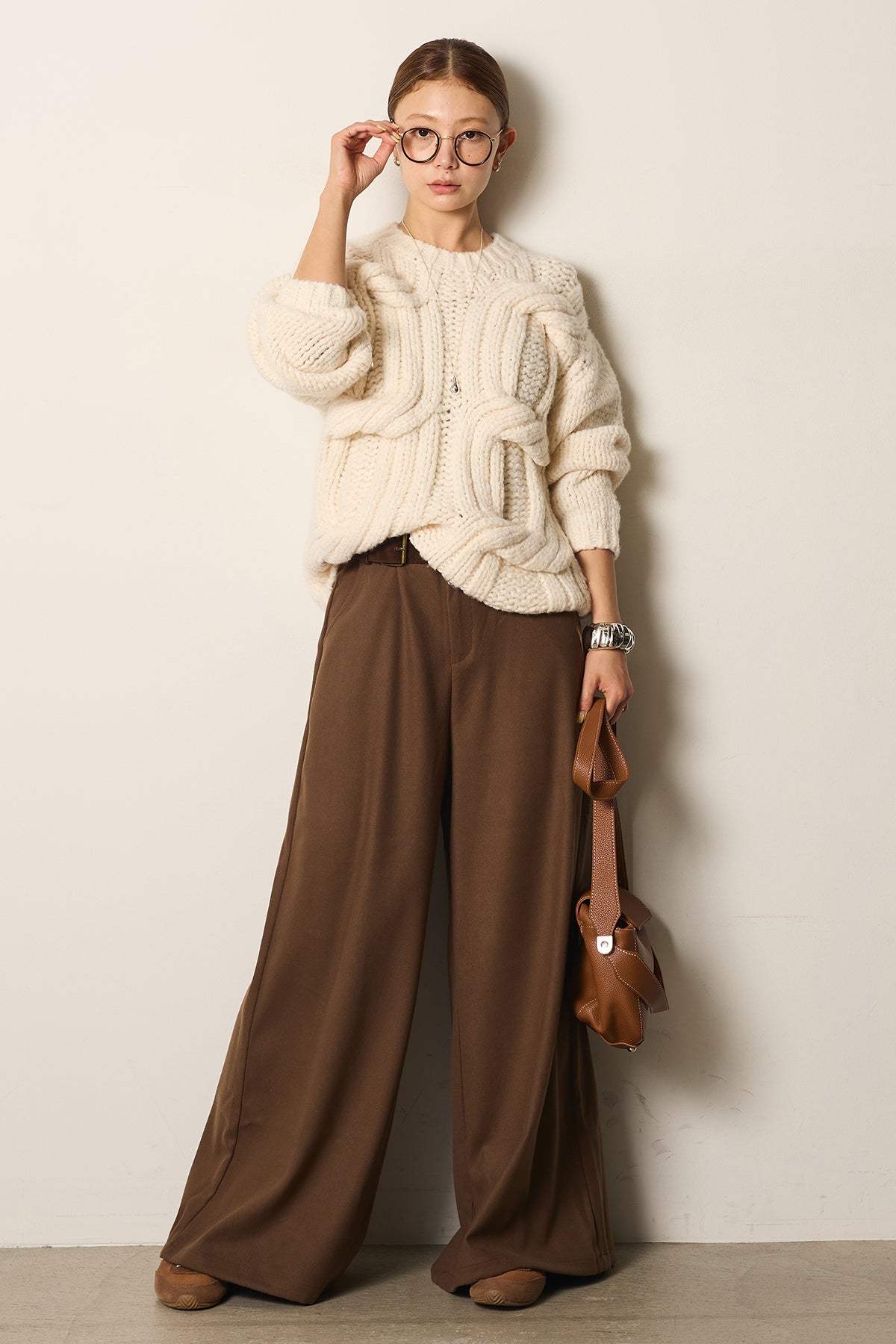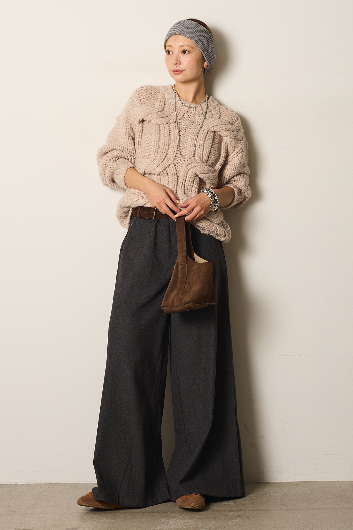 存在感のある立体的なケーブル編みが特徴のニットトップス。ふんわりとしたボリューム感がシーズンムードを高め、シンプルなスタイリングに加えるだけで華やかな印象に。柔らかな素材で着心地も良く、デイリーから冬のお出かけまで幅広く活躍する一枚です。