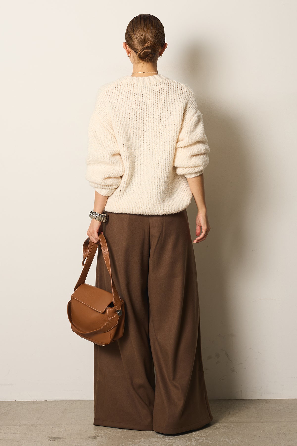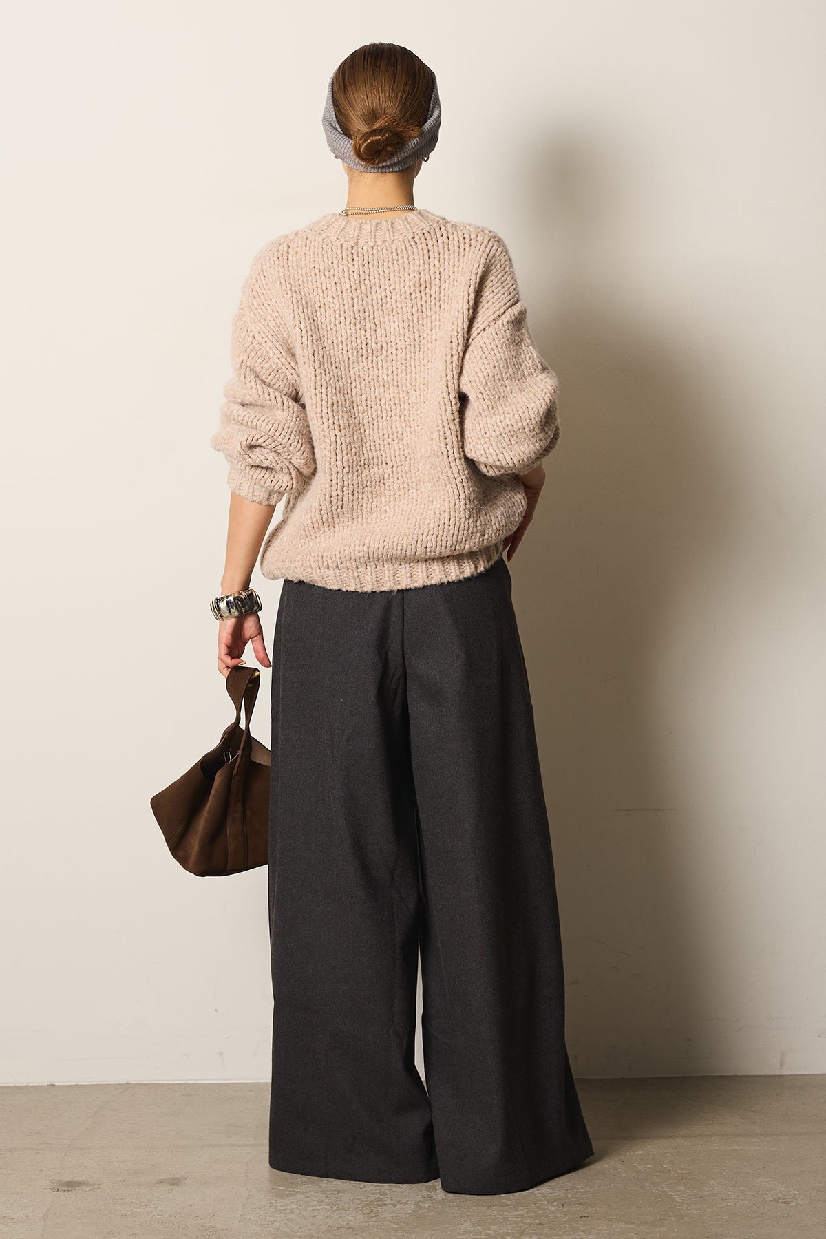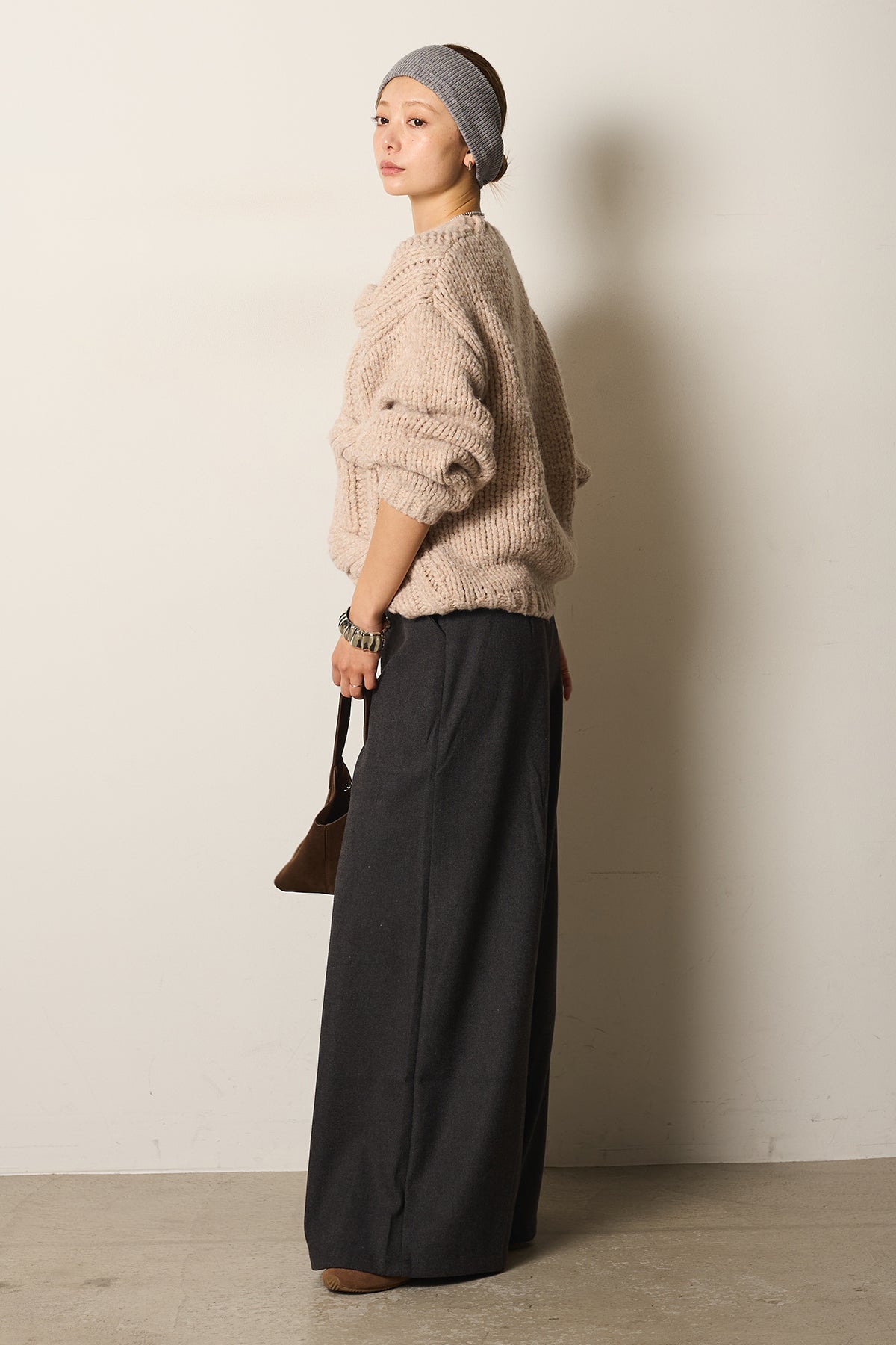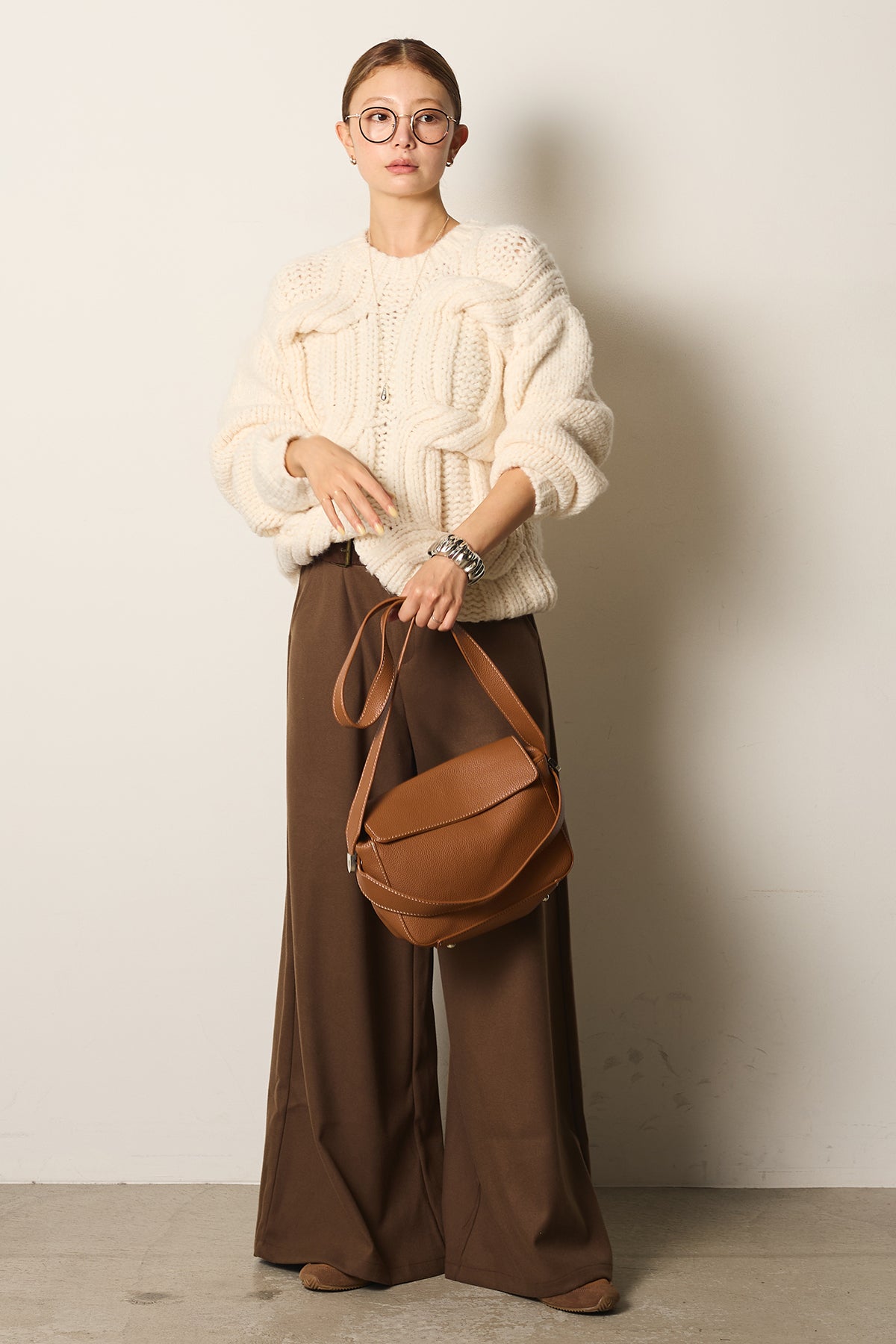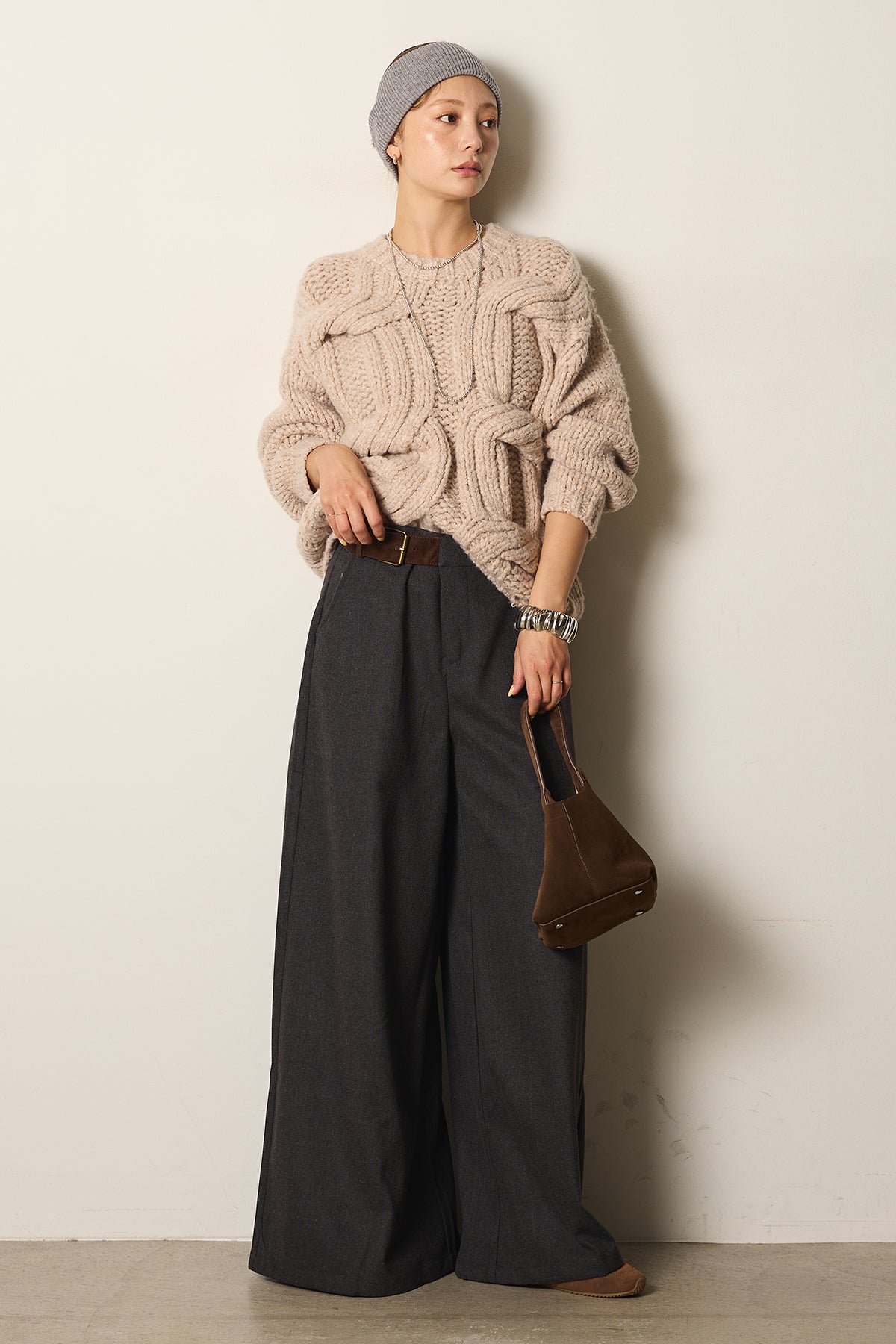 存在感のある立体的なケーブル編みが特徴のニットトップス。ふんわりとしたボリューム感がシーズンムードを高め、シンプルなスタイリングに加えるだけで華やかな印象に。柔らかな素材で着心地も良く、デイリーから冬のお出かけまで幅広く活躍する一枚です。
