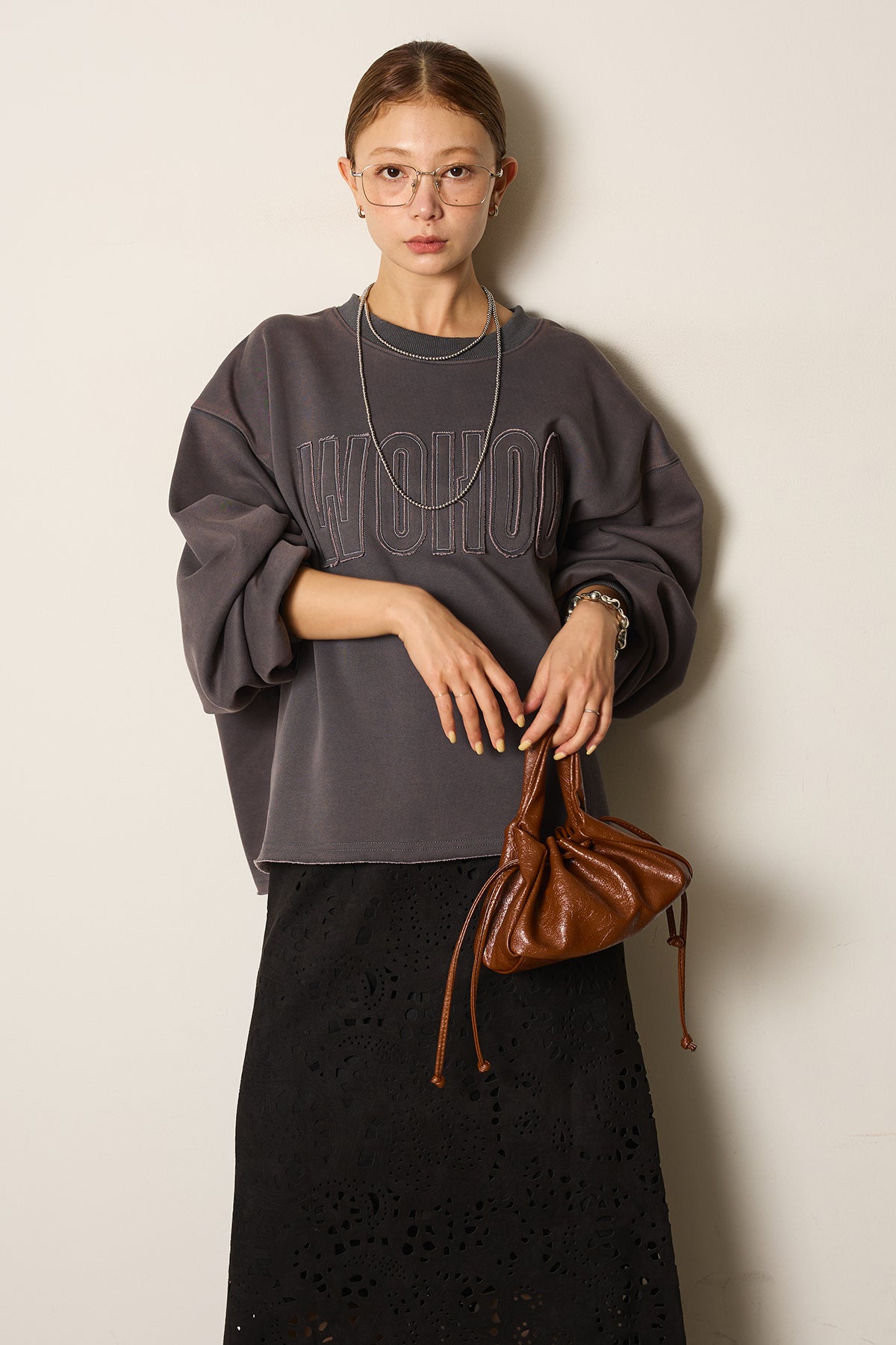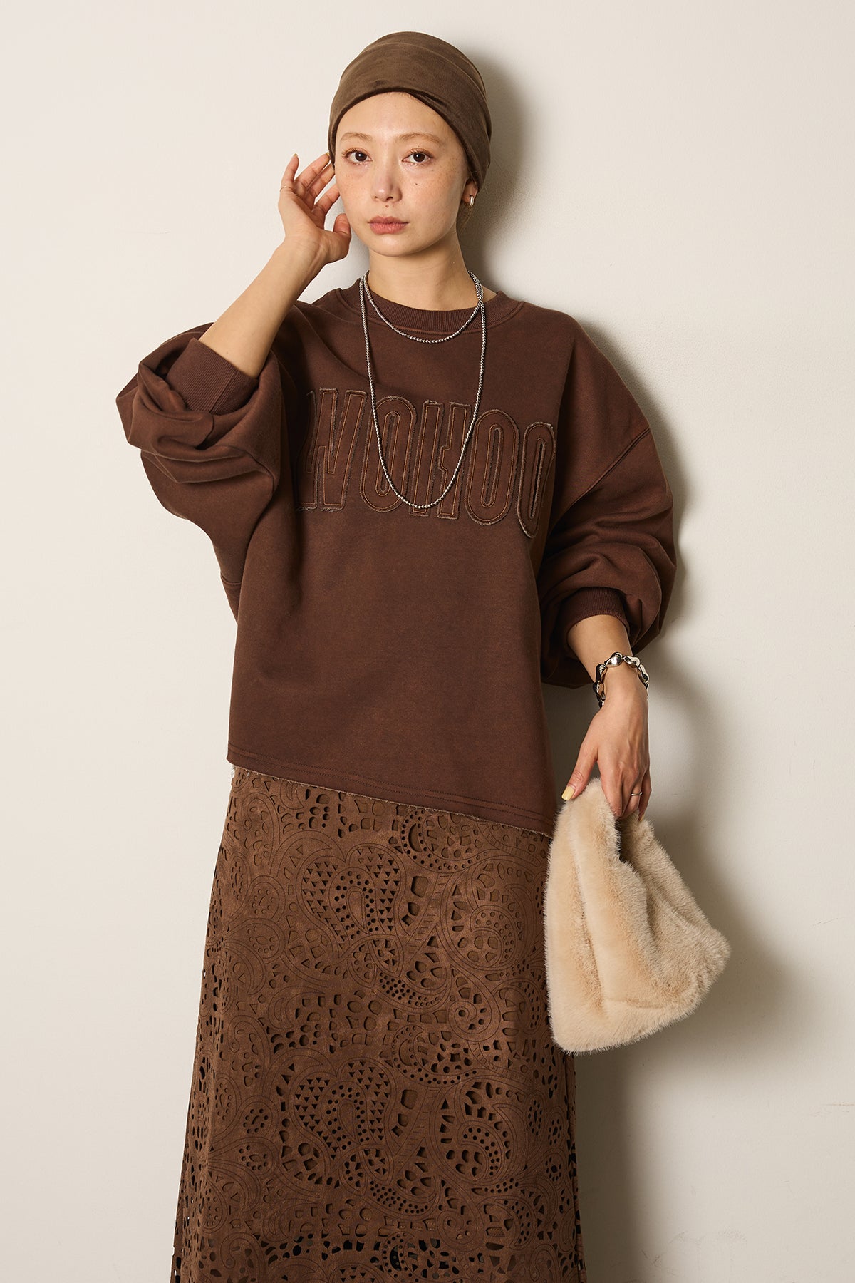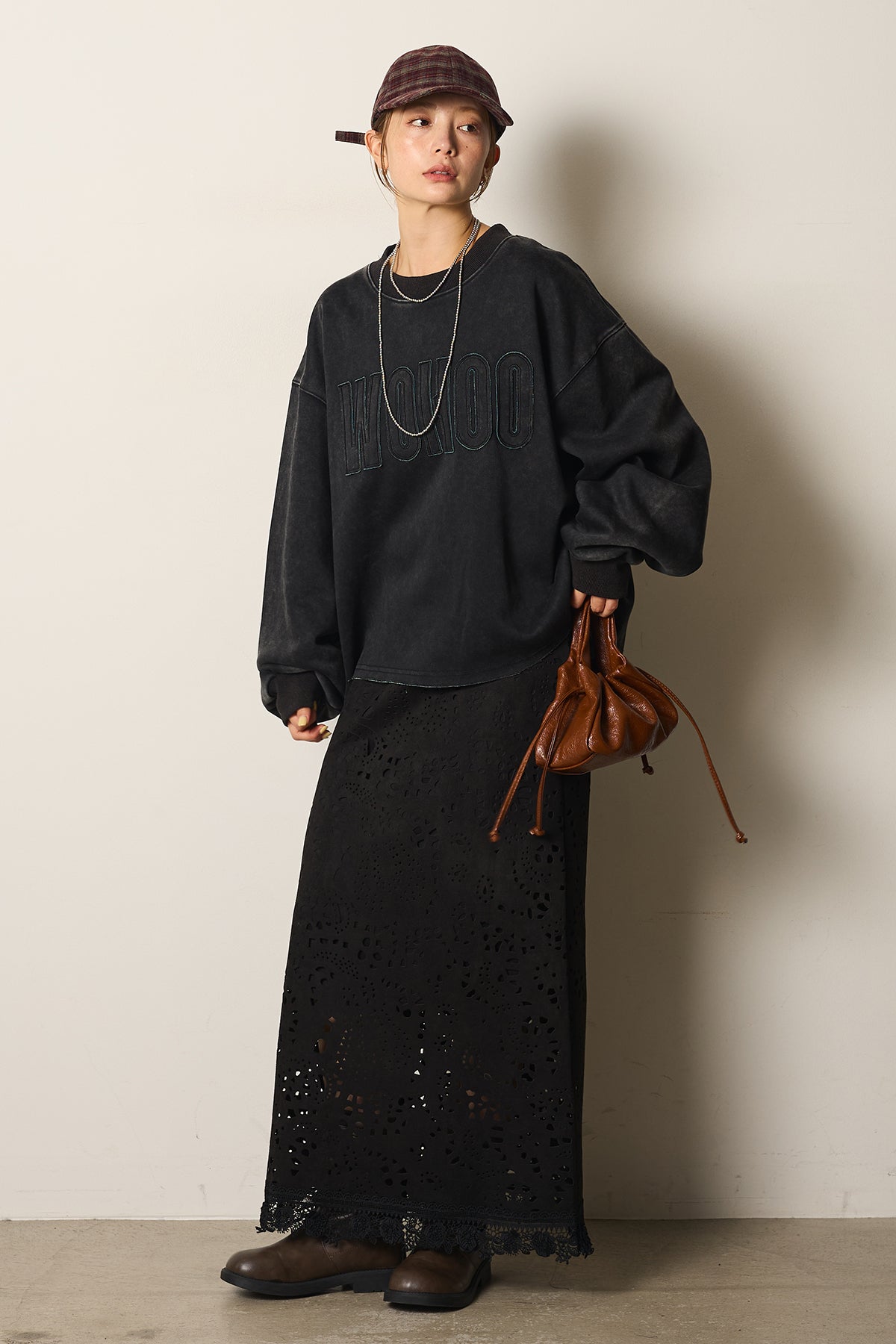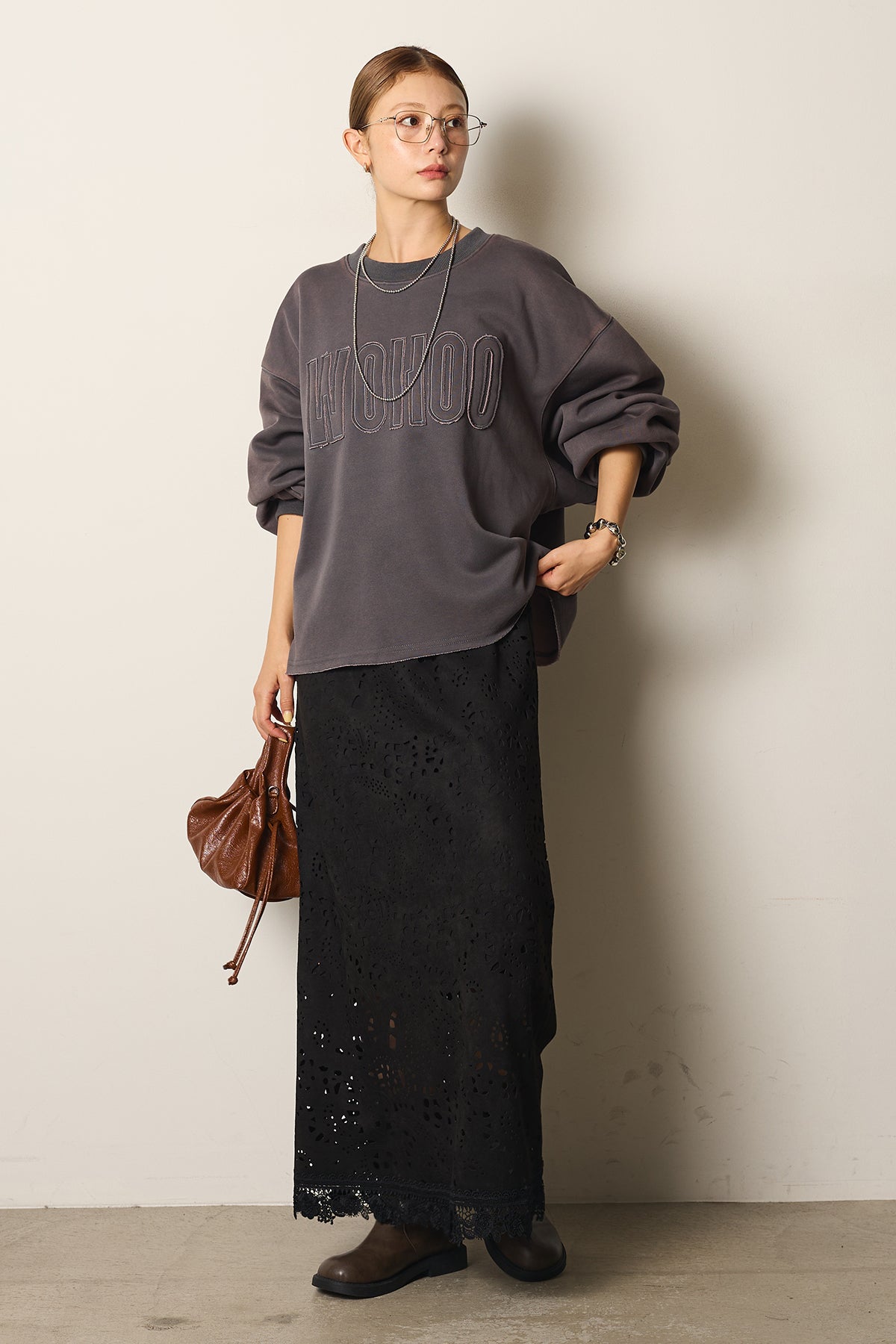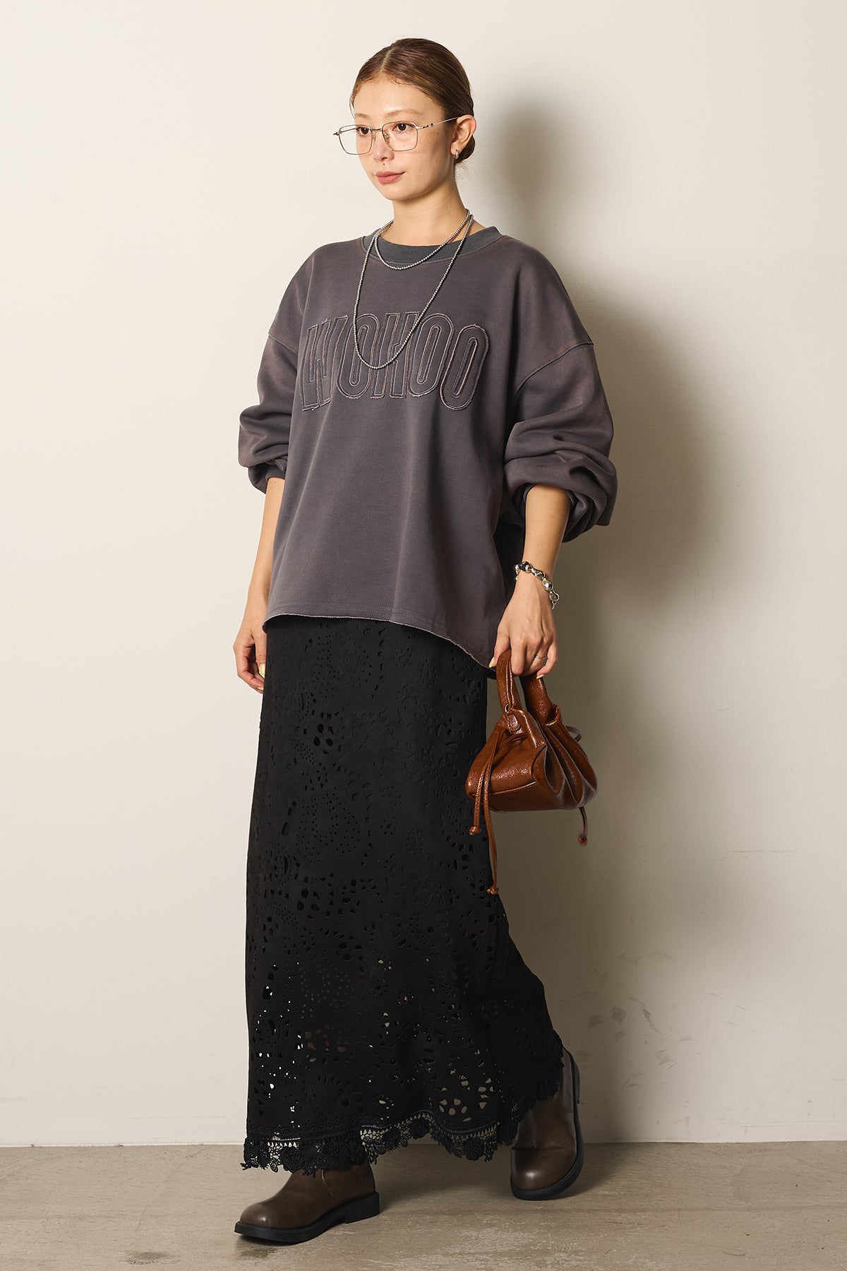 ヴィンテージ感漂うピグメント加工を施したロゴスウェット。立体的な配色ロゴがアクセントとなり、カジュアルスタイルを格上げします。ゆったりとしたシルエットでリラックス感があり、デニムやスカートなど幅広いアイテムと相性抜群の一枚です。