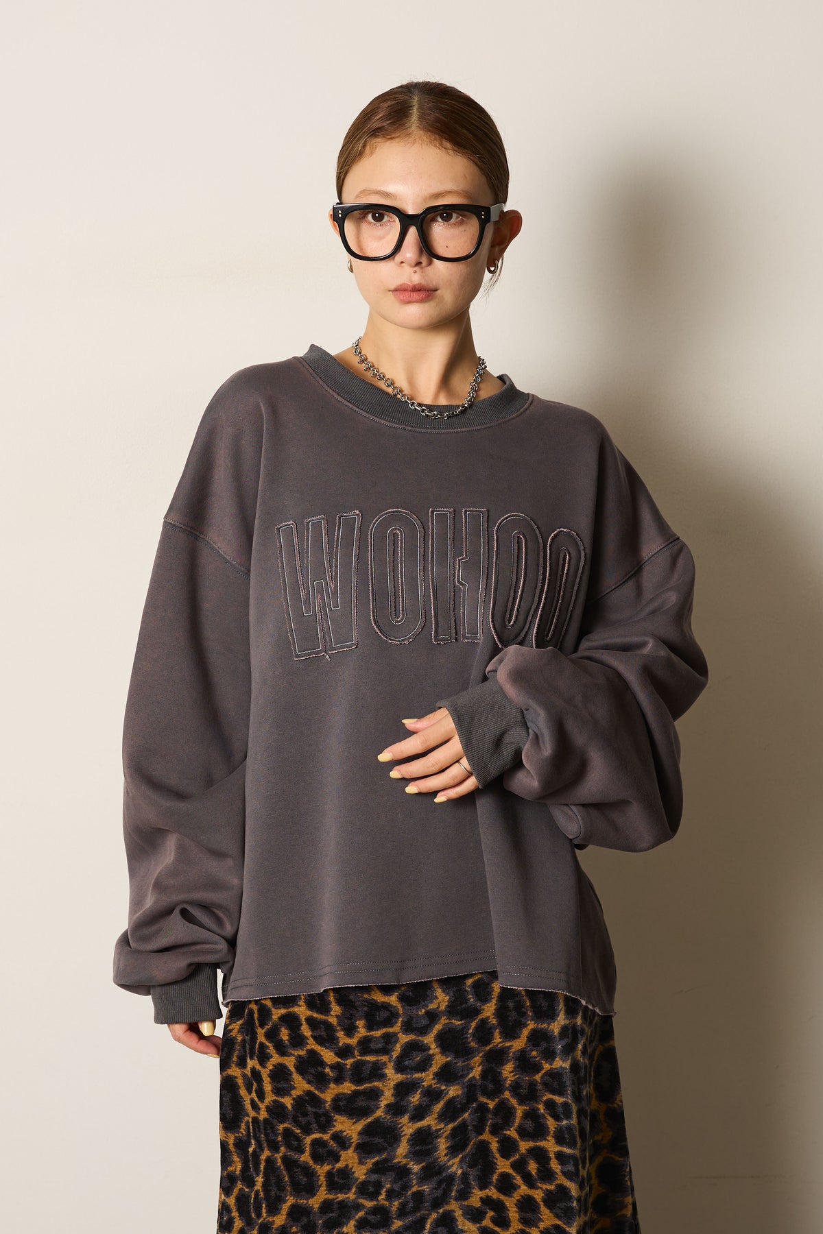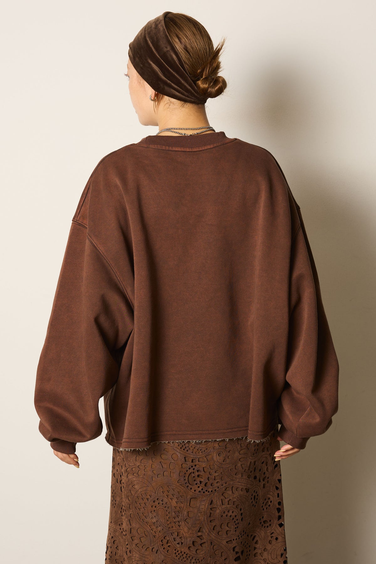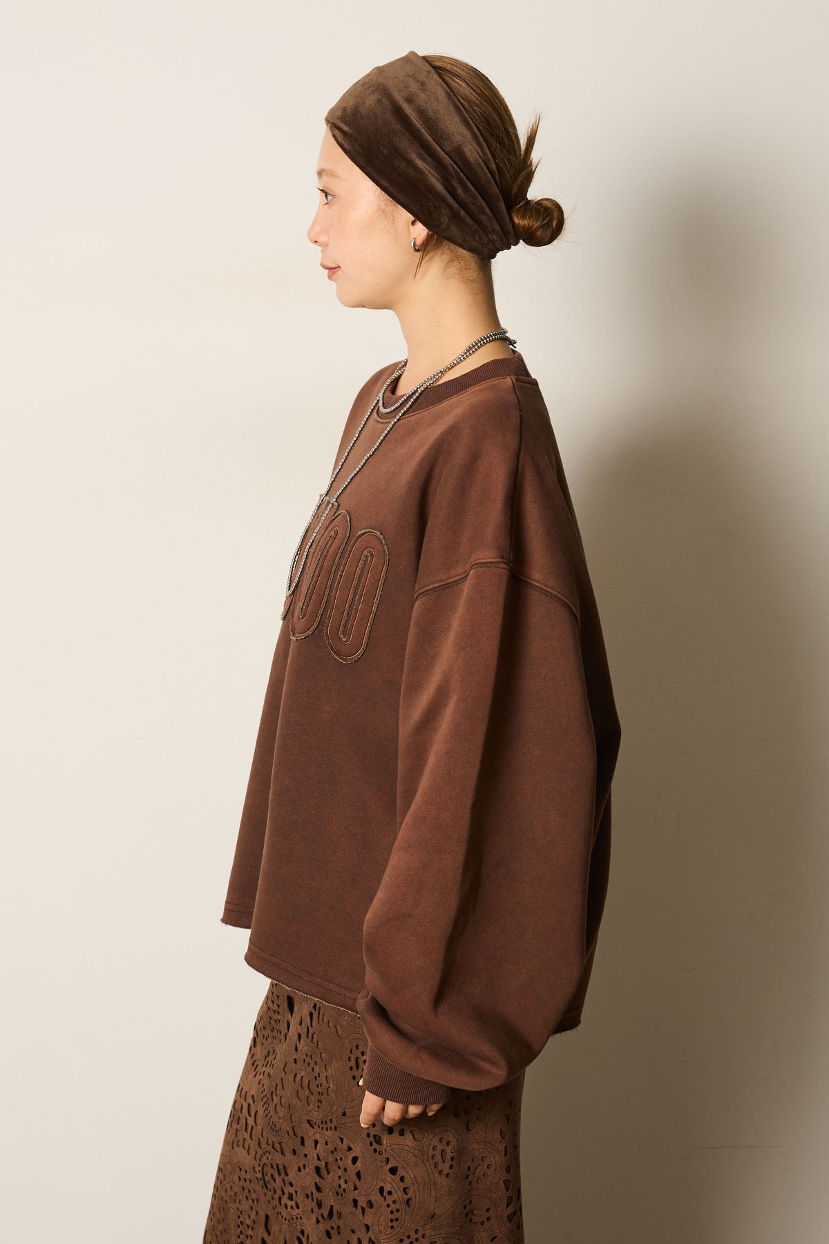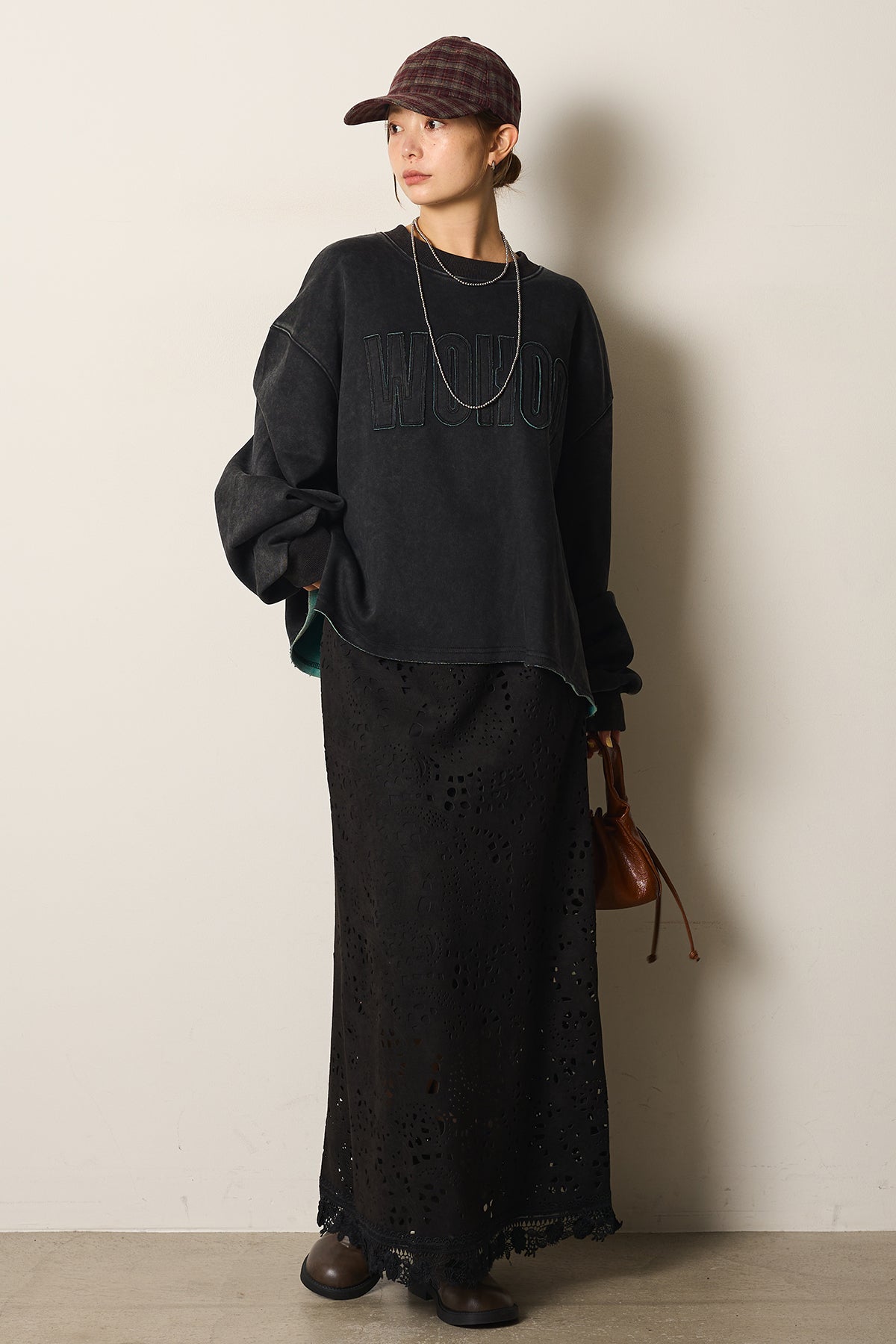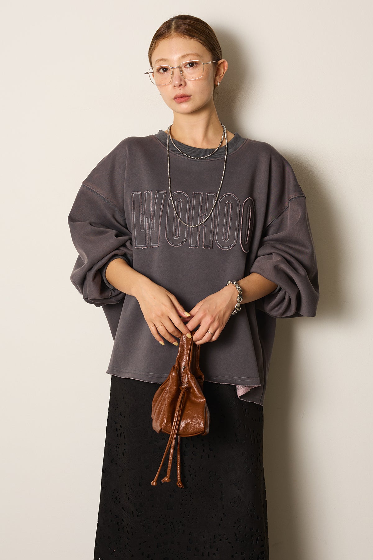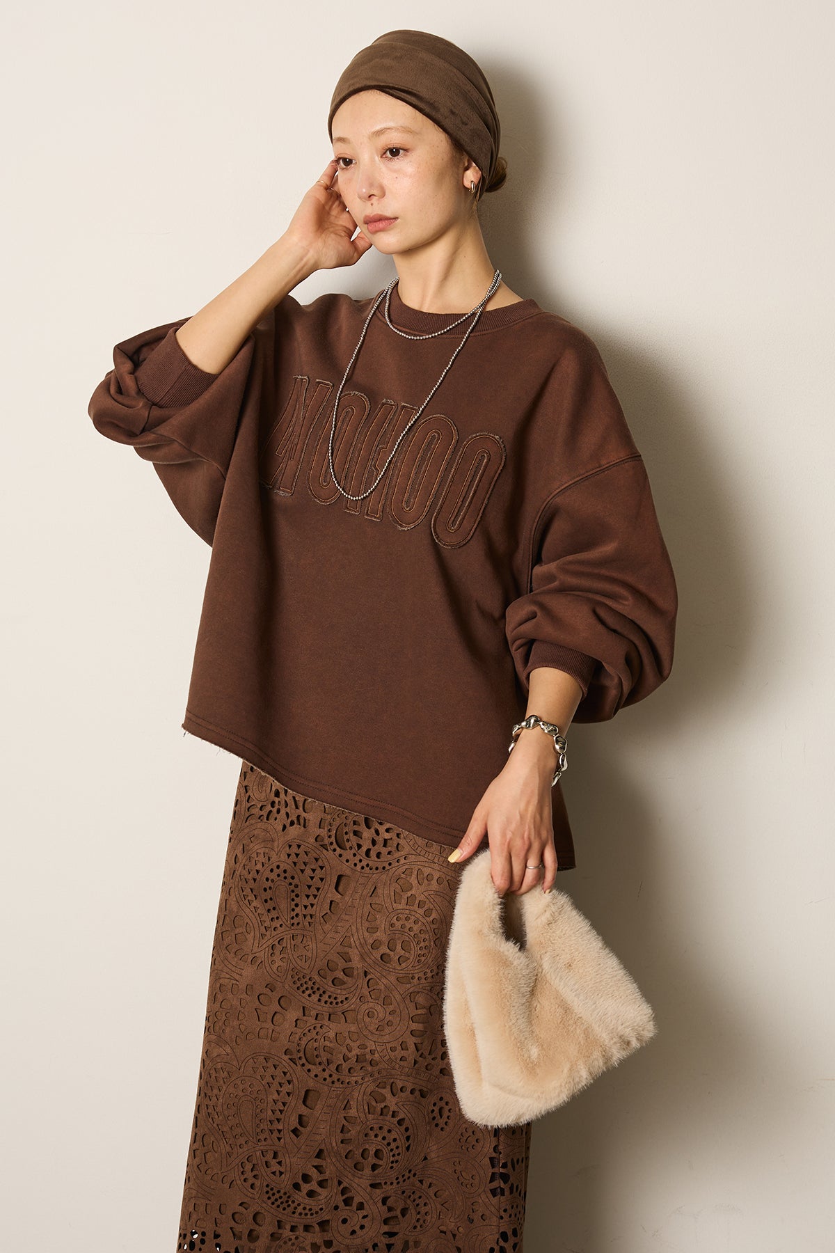 ヴィンテージ感漂うピグメント加工を施したロゴスウェット。立体的な配色ロゴがアクセントとなり、カジュアルスタイルを格上げします。ゆったりとしたシルエットでリラックス感があり、デニムやスカートなど幅広いアイテムと相性抜群の一枚です。