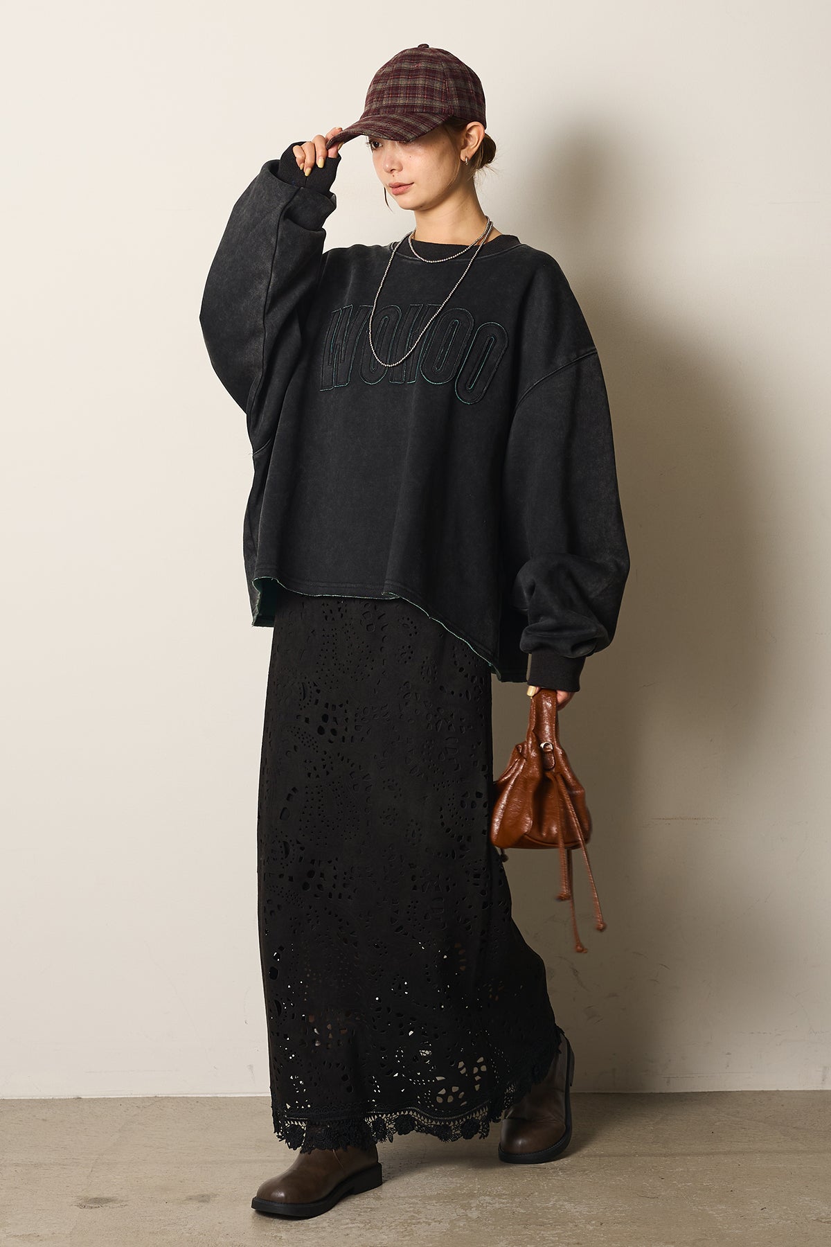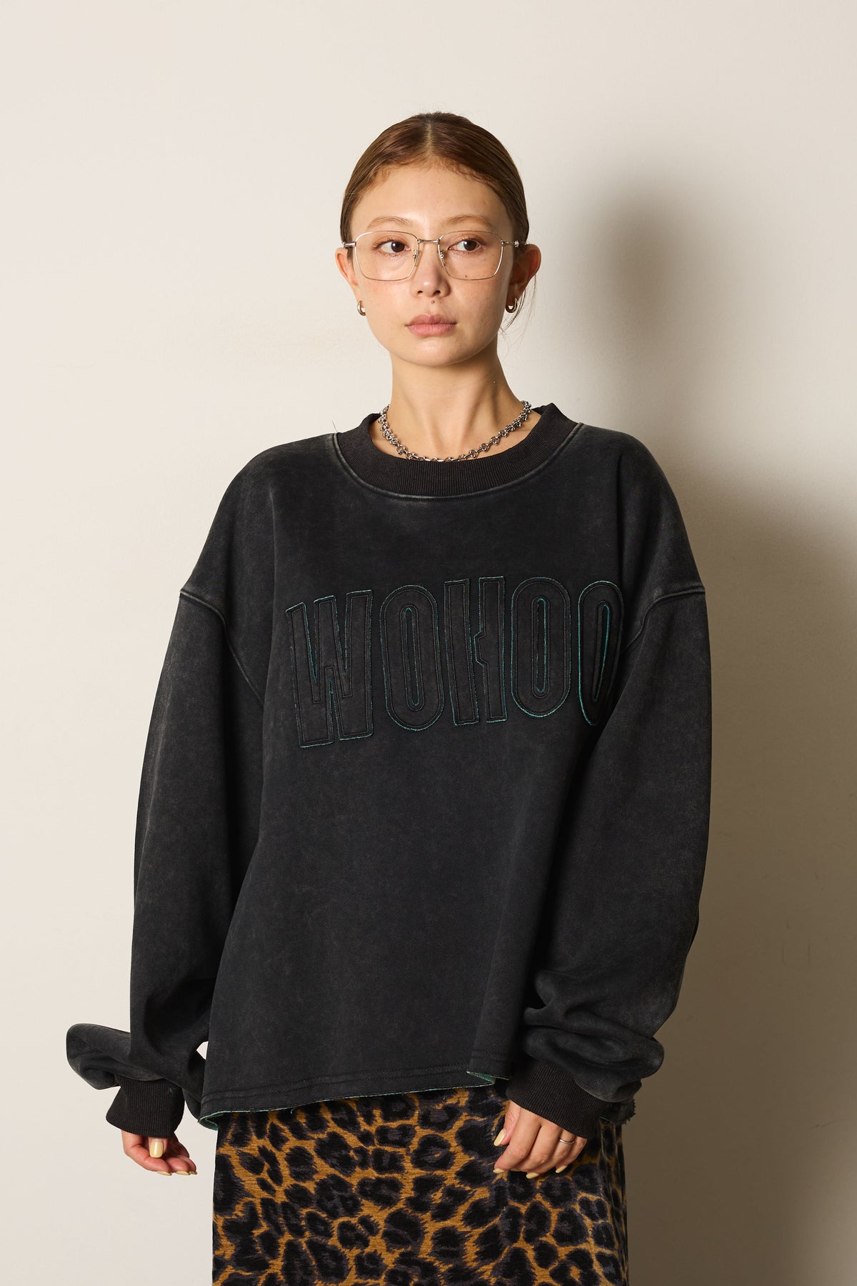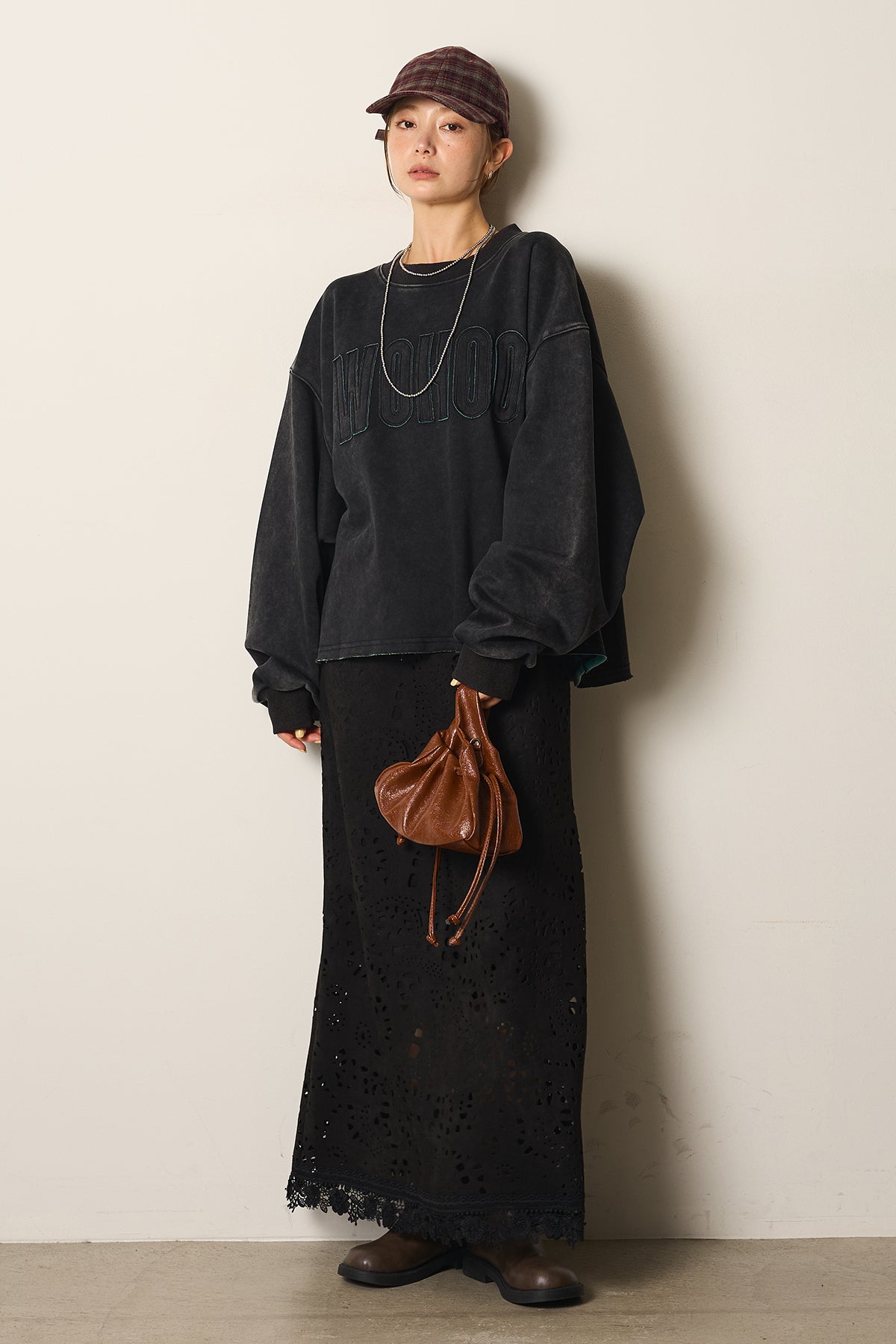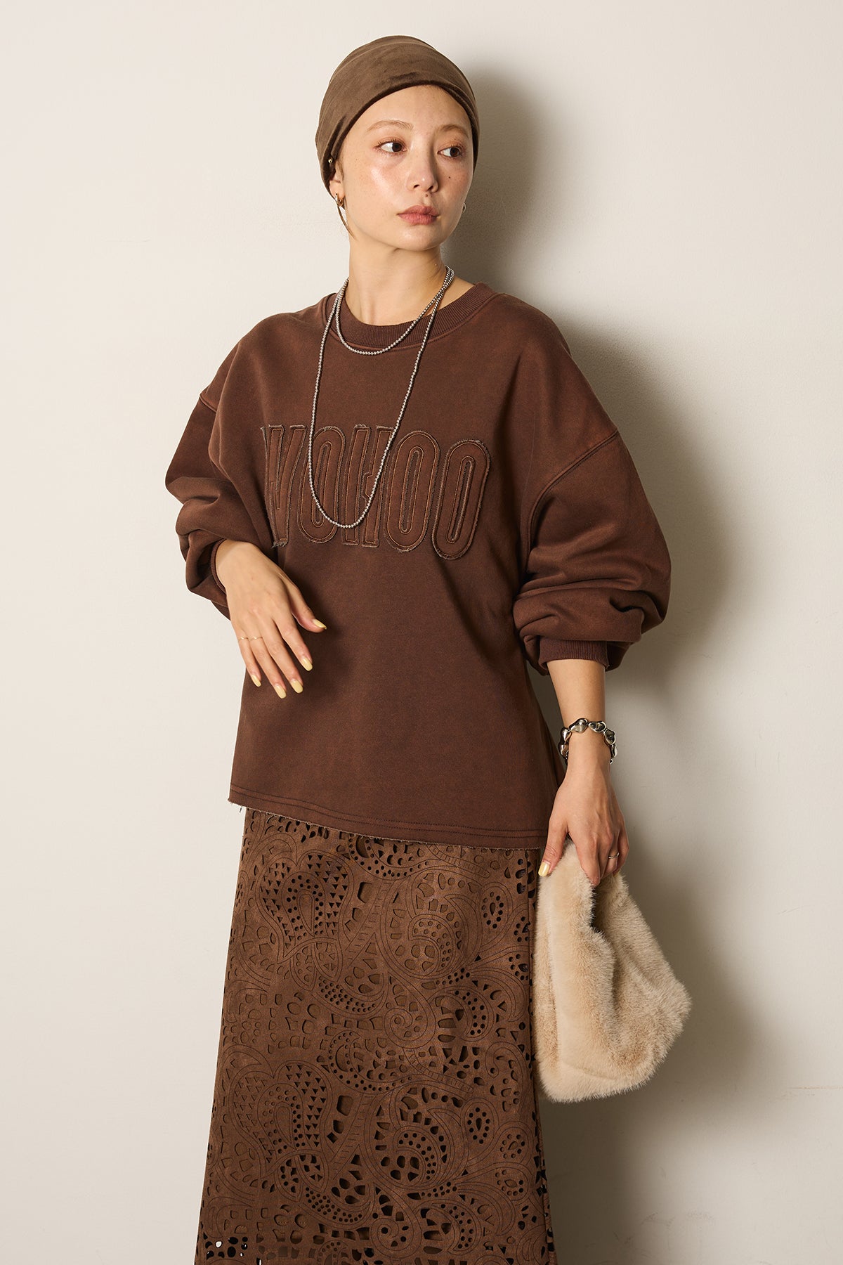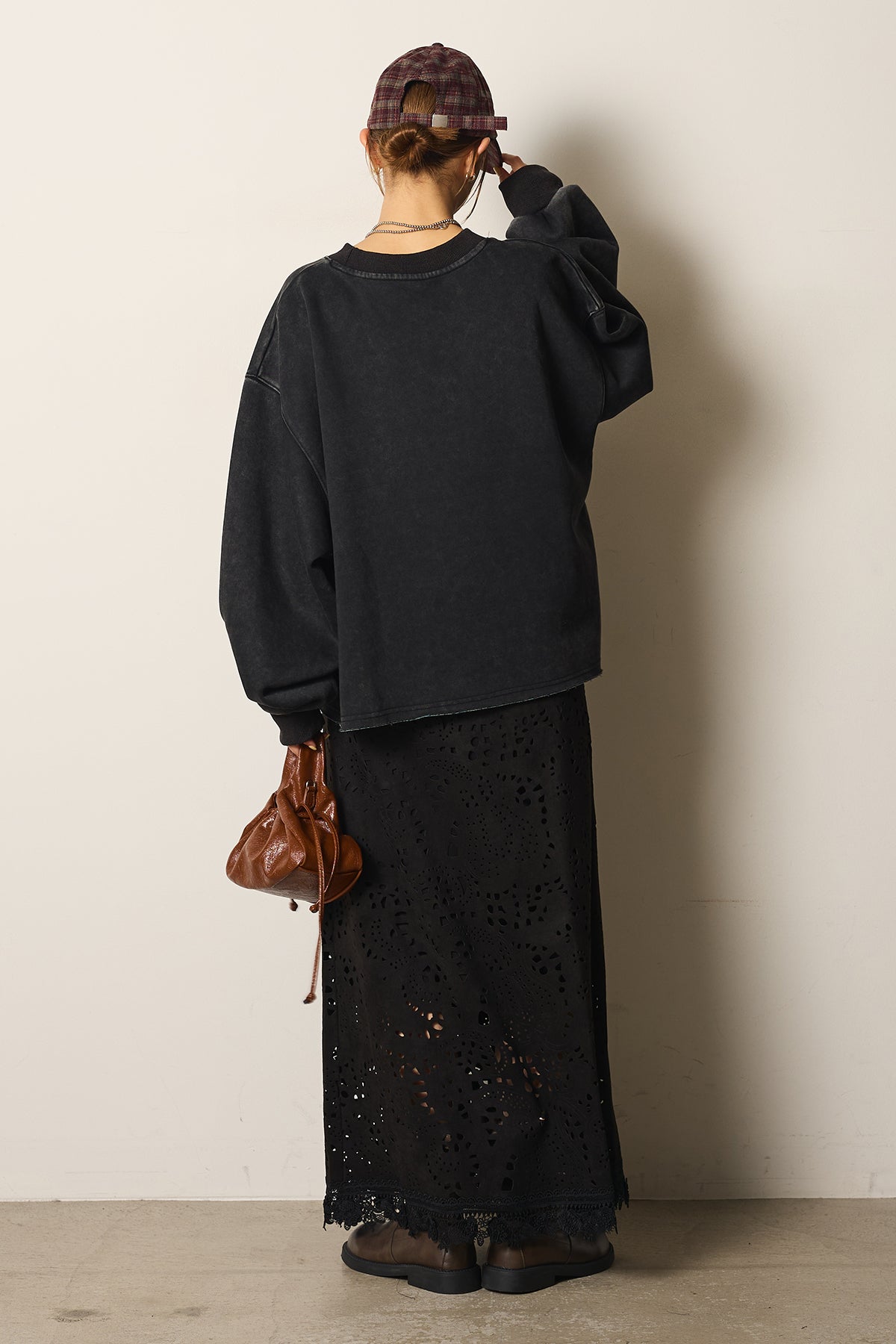 ヴィンテージ感漂うピグメント加工を施したロゴスウェット。立体的な配色ロゴがアクセントとなり、カジュアルスタイルを格上げします。ゆったりとしたシルエットでリラックス感があり、デニムやスカートなど幅広いアイテムと相性抜群の一枚です。