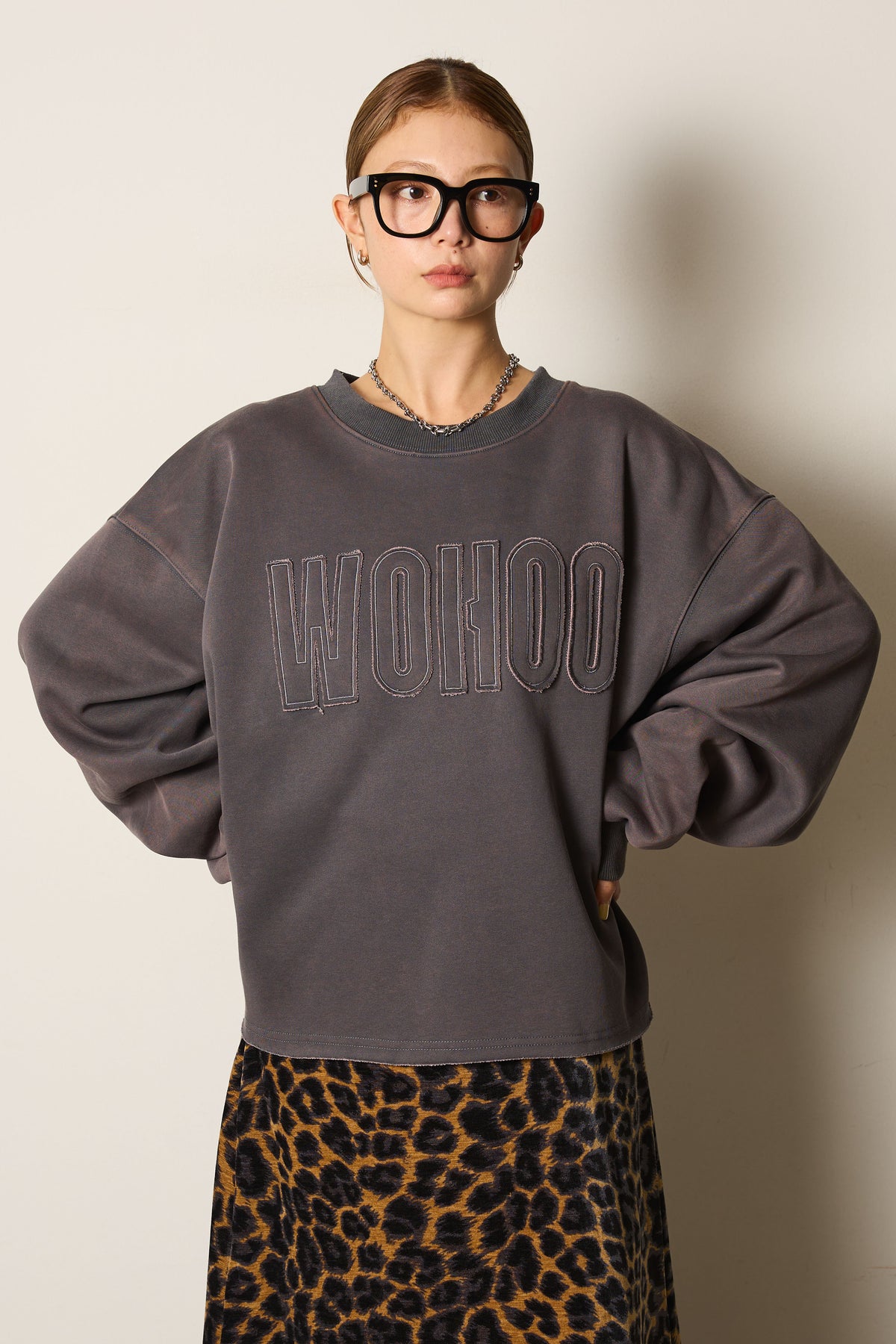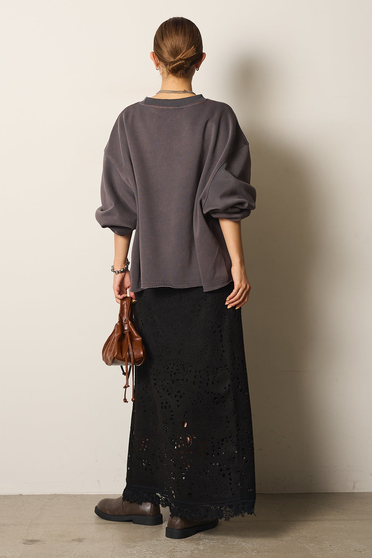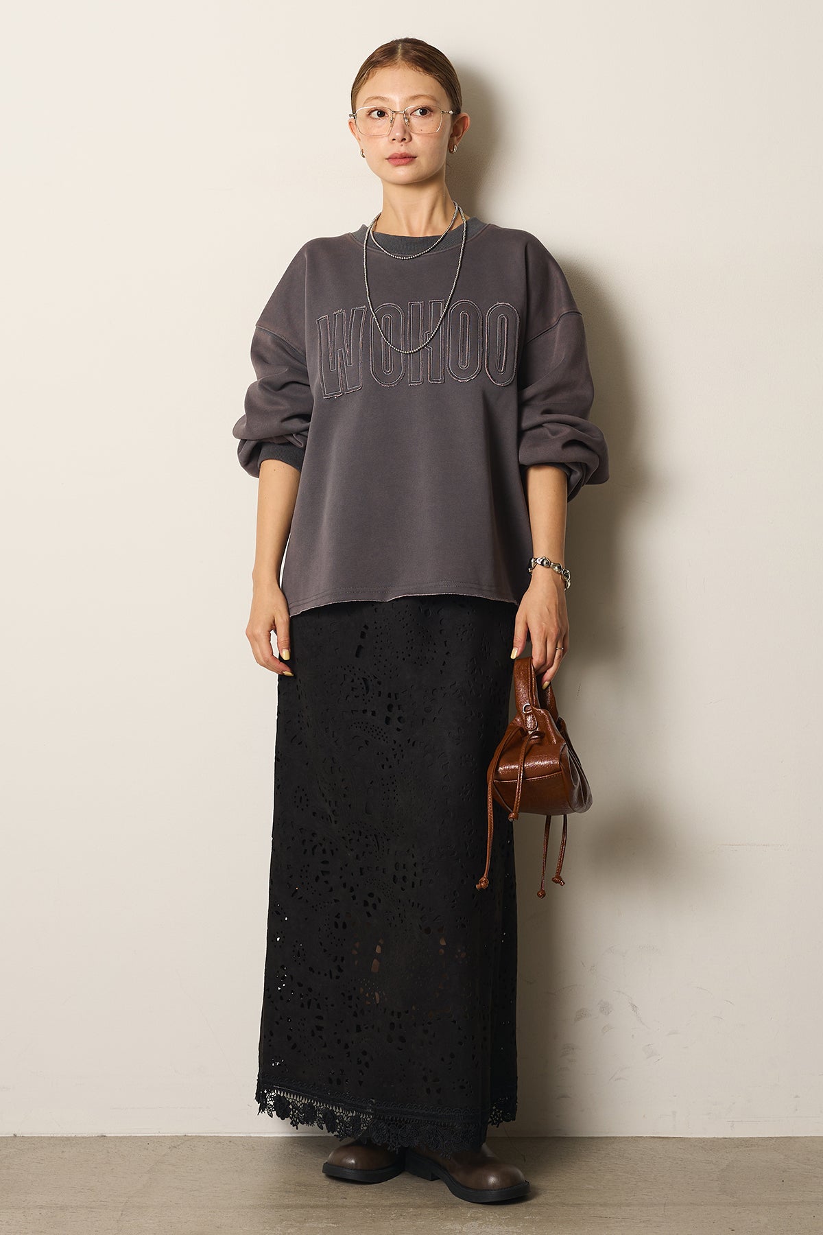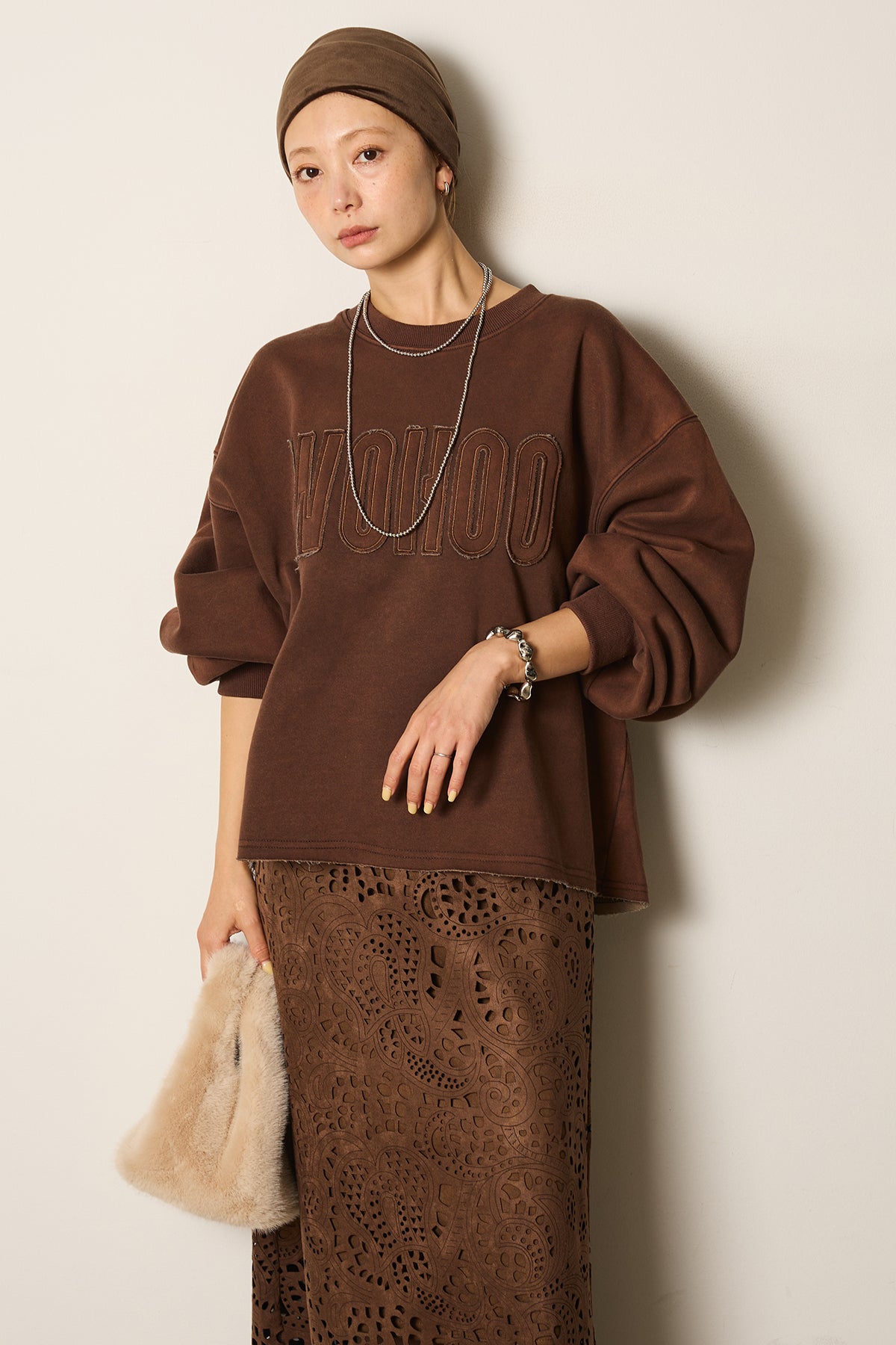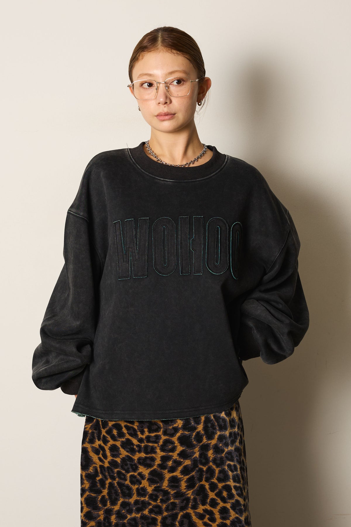 ヴィンテージ感漂うピグメント加工を施したロゴスウェット。立体的な配色ロゴがアクセントとなり、カジュアルスタイルを格上げします。ゆったりとしたシルエットでリラックス感があり、デニムやスカートなど幅広いアイテムと相性抜群の一枚です。