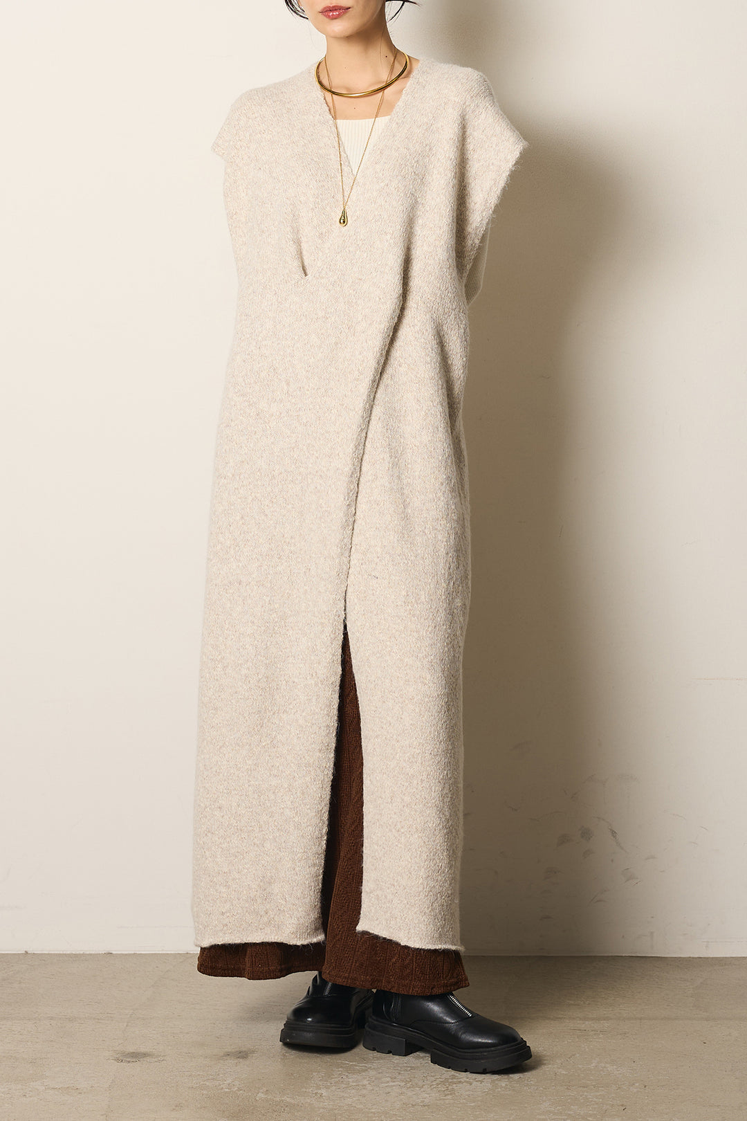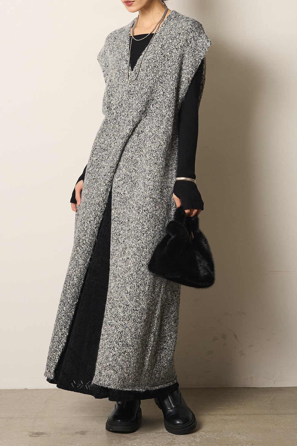 [SET]クロスデザインミックスニットワンピース+ライン柄ベロアスカート(2set)