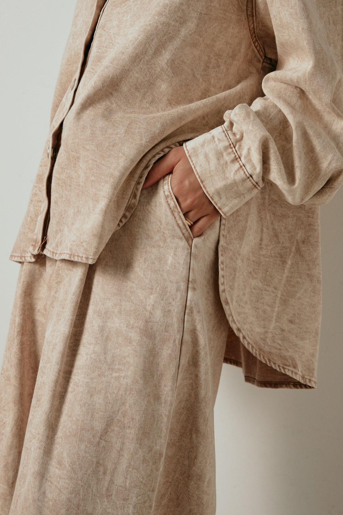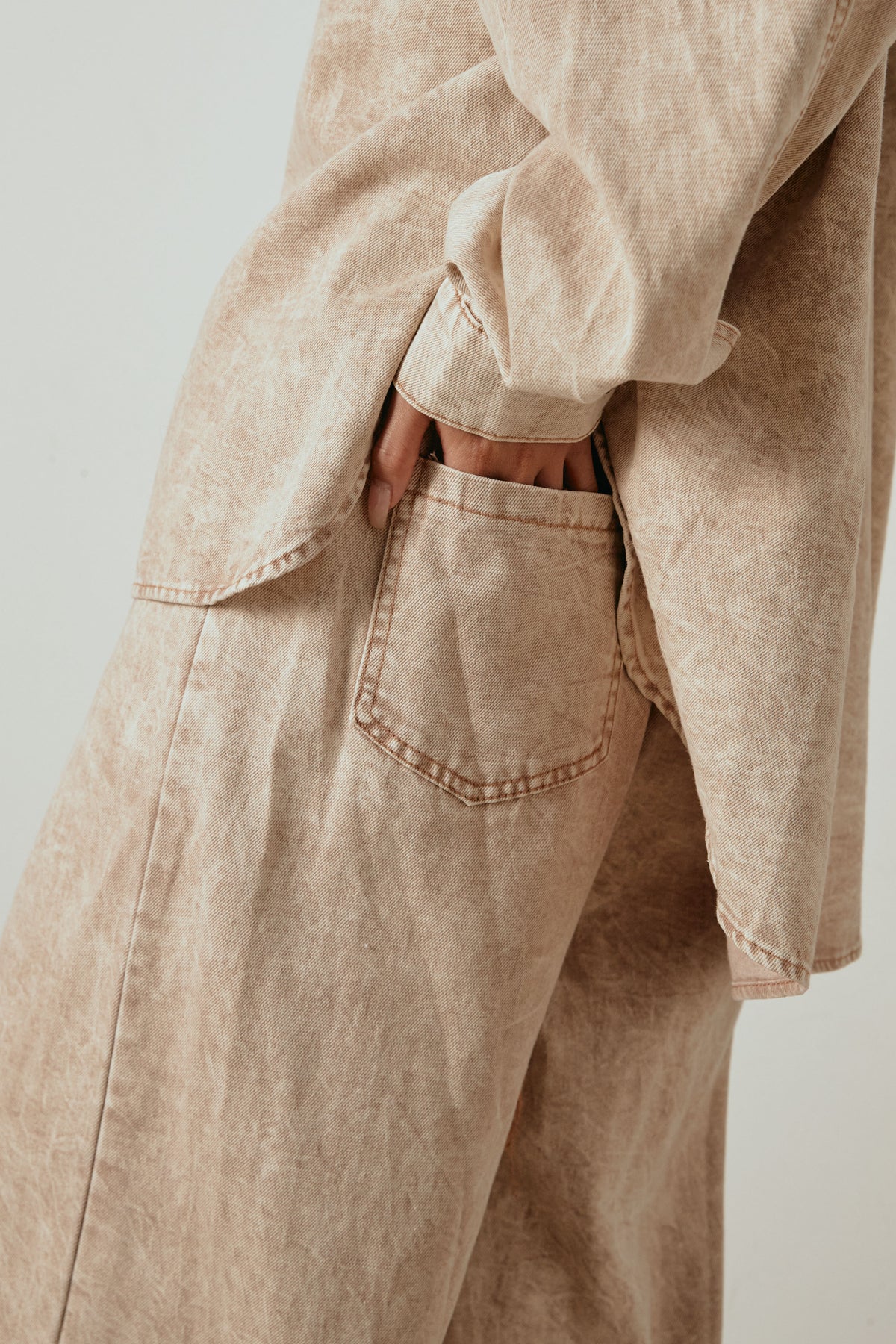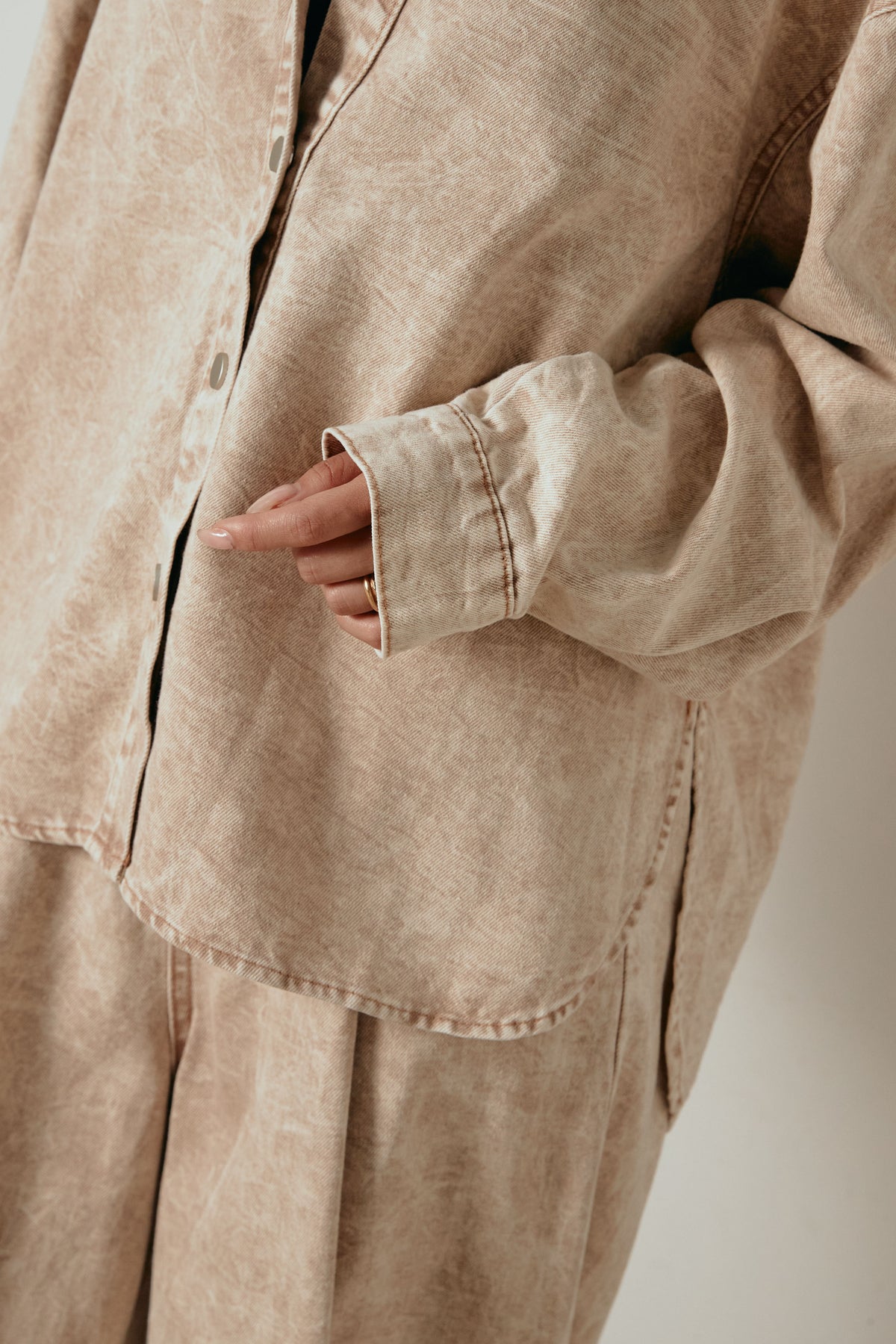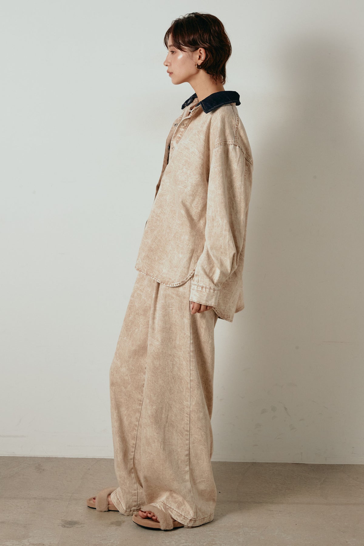 ヴィンテージライクな風合いが魅力のデニムセットアップ。洗いをかけた柔らかな素材感で、ラフさの中にこなれた雰囲気を演出します。ジャケットは程よくゆとりのあるシルエットで羽織りやすく、パンツはウエストコード仕様で快適な履き心地。単品使いもできる汎用性の高いアイテムで、カジュアルながらも洗練されたスタイルを楽しめます。