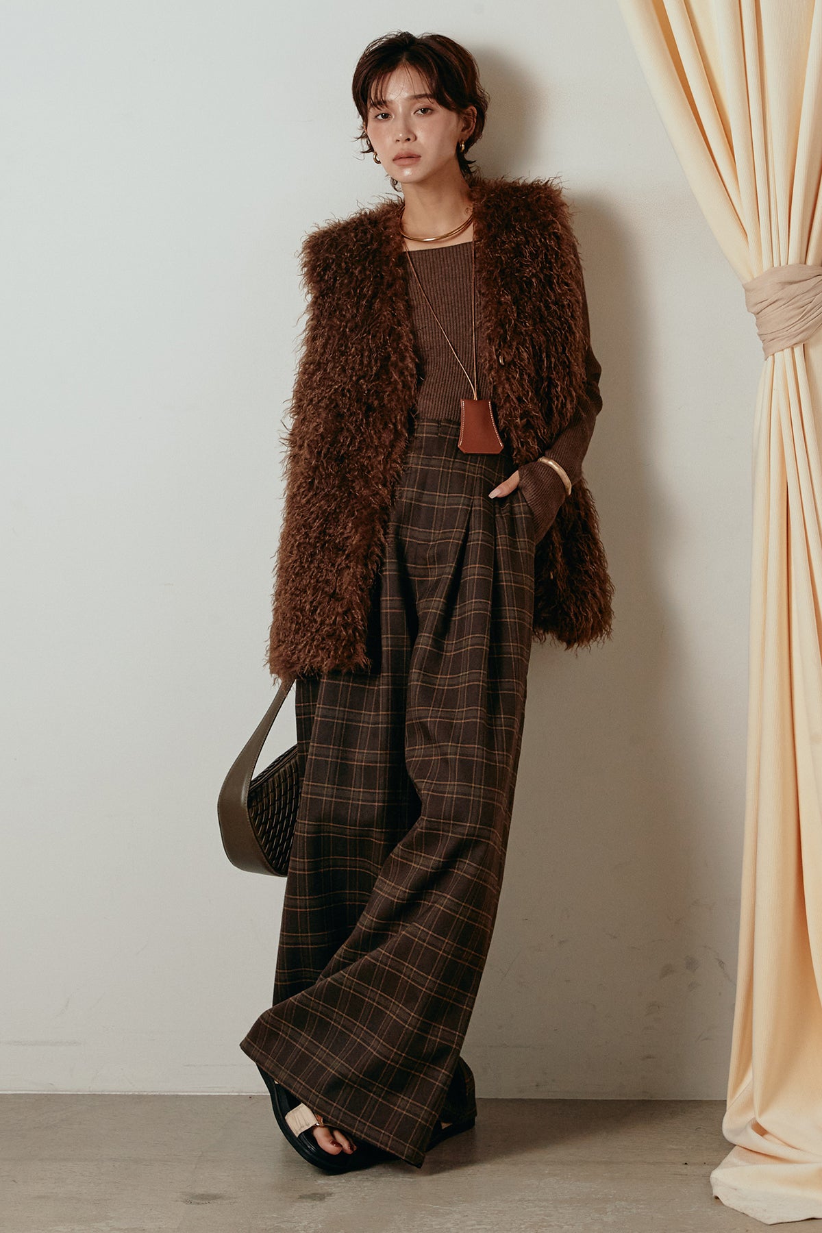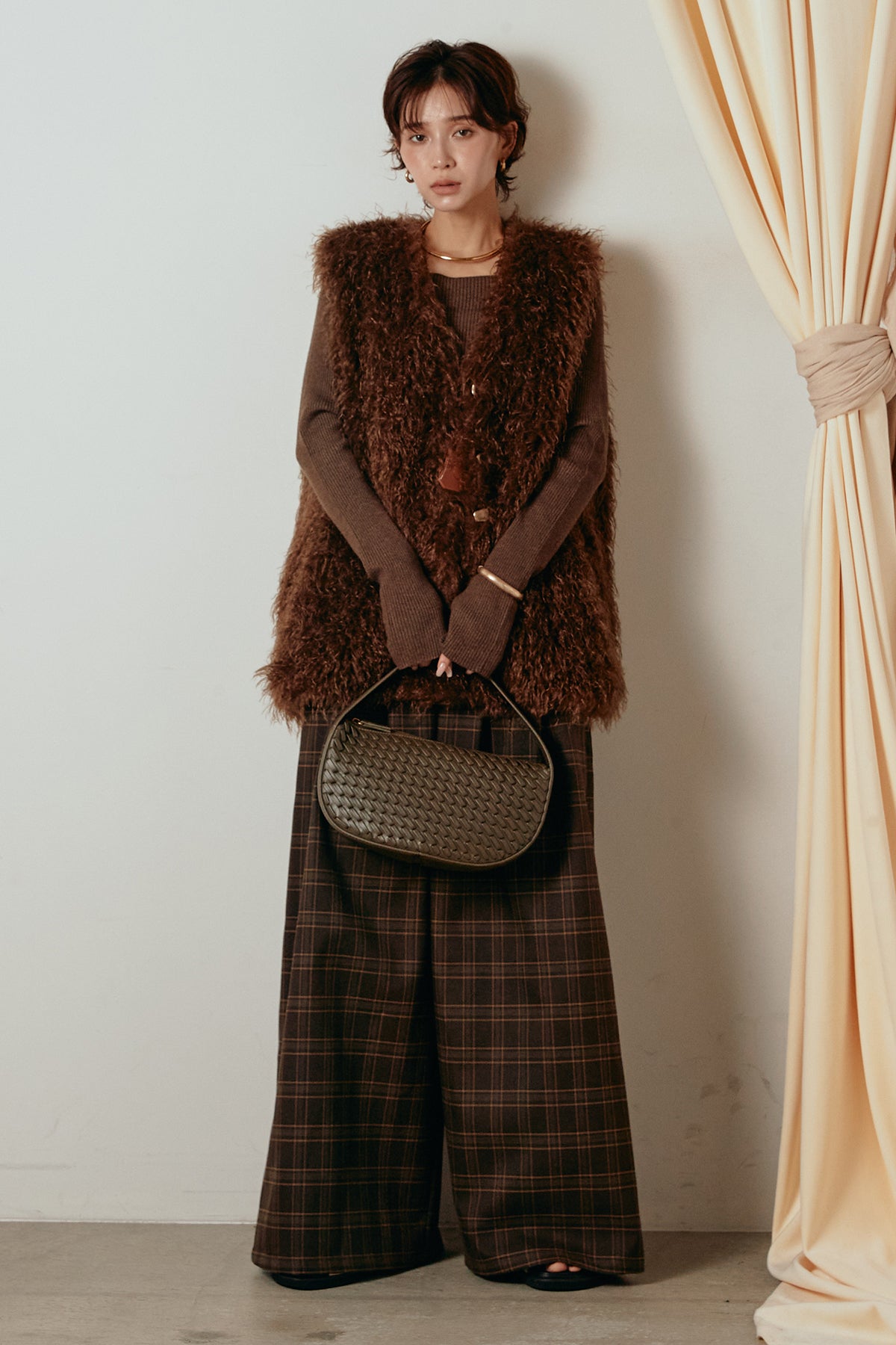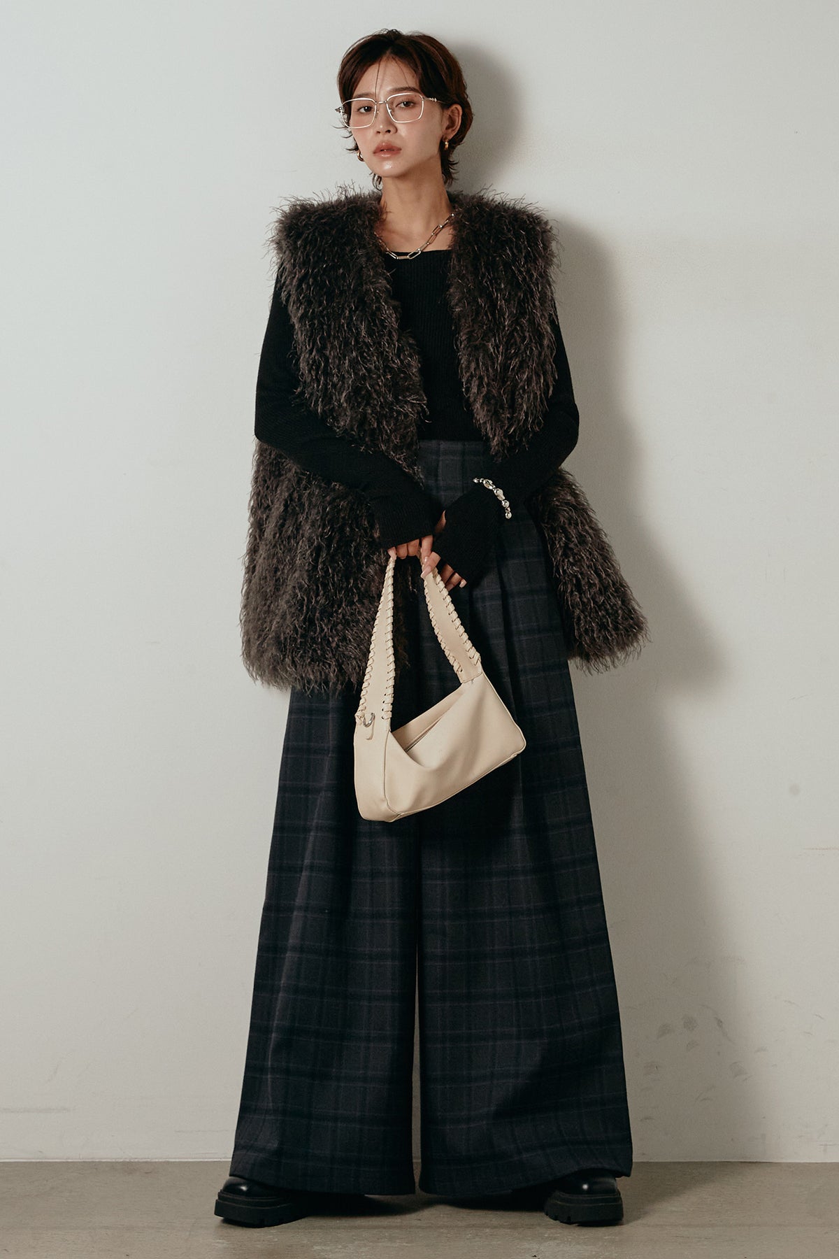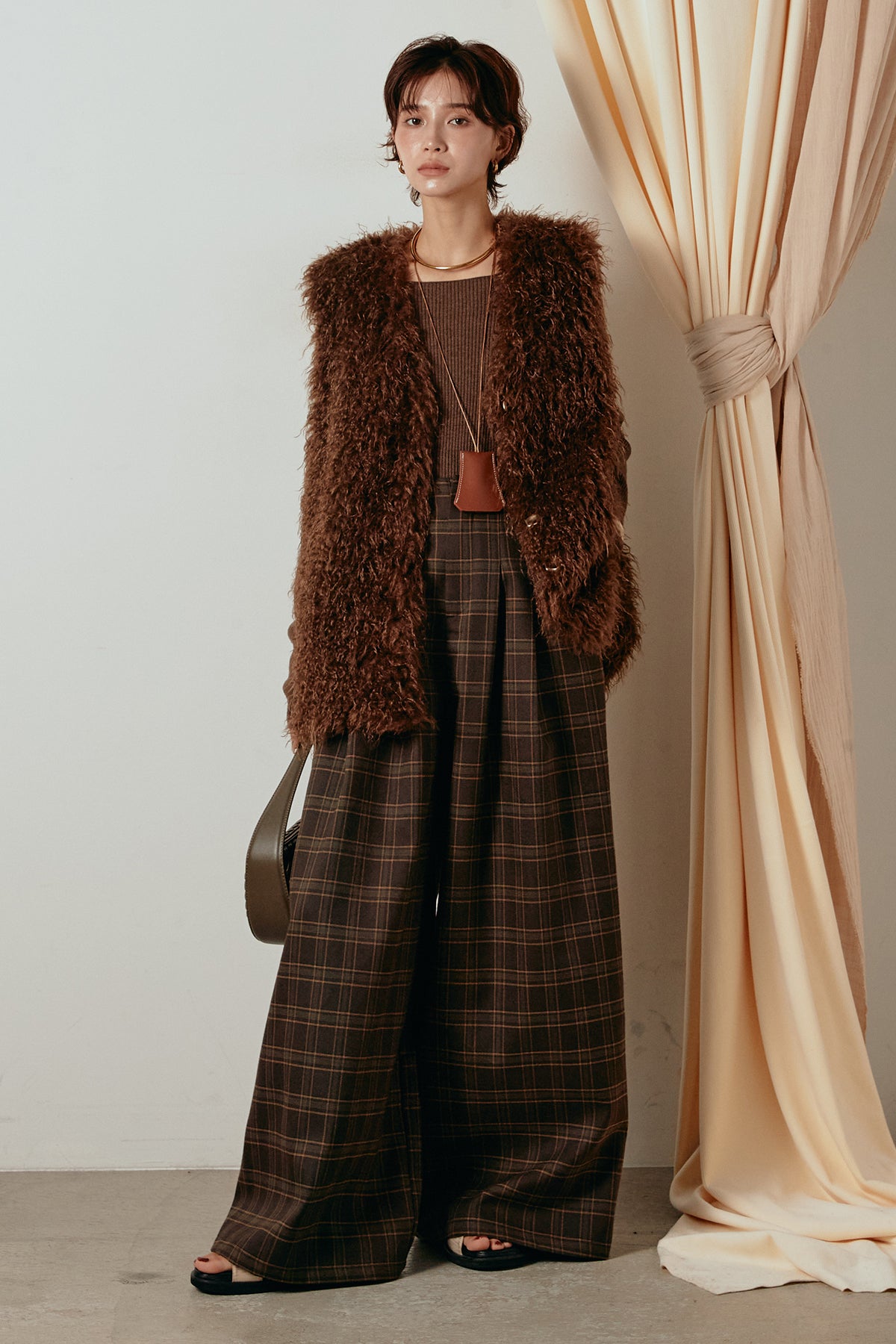 ふんわりとしたシャギーファーがシーズンムードを高めるボタン付きベスト。柔らかな質感と程よいボリュームが存在感を放ち、羽織るだけでスタイリングをアップデート。中はすっきりとした裏地仕様で着心地も快適。ニットやシャツに重ねて、秋冬らしいレイヤードを楽しめる一枚です。