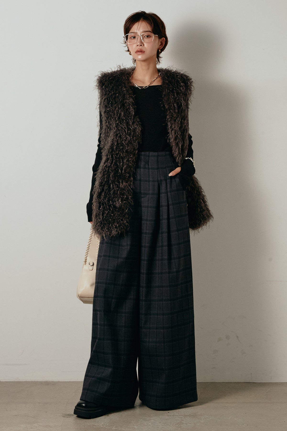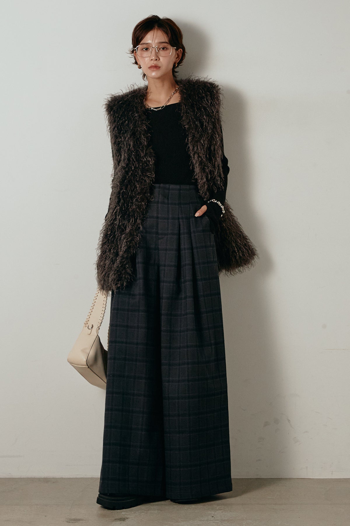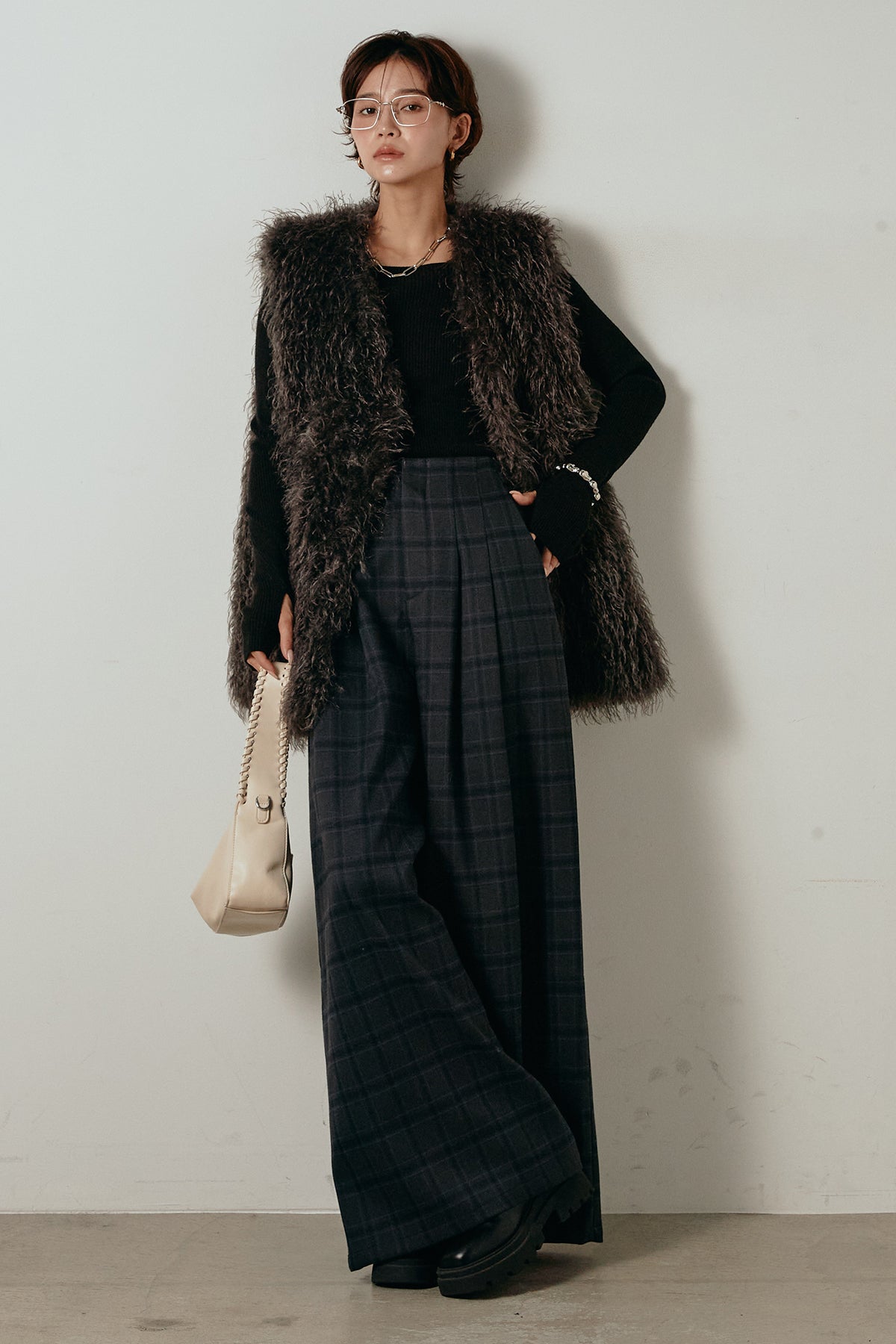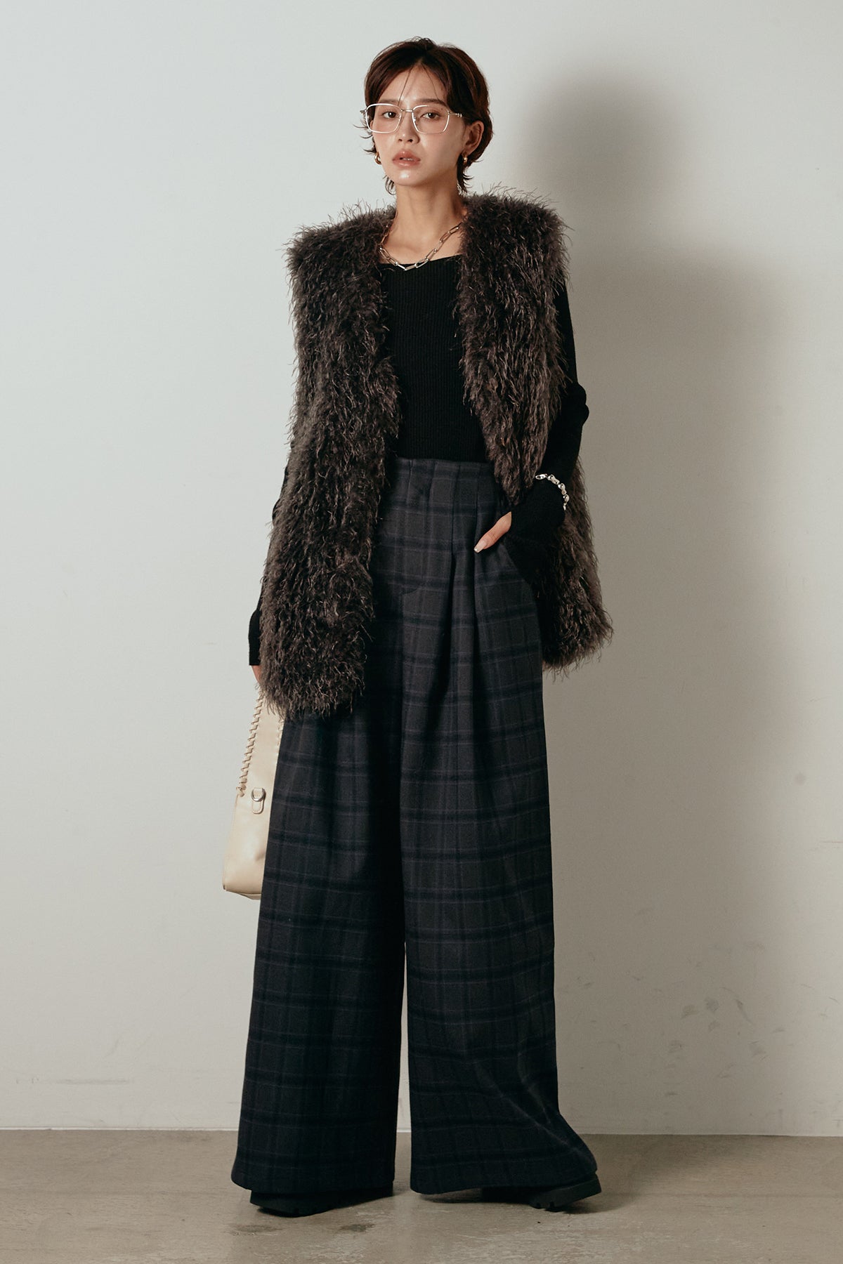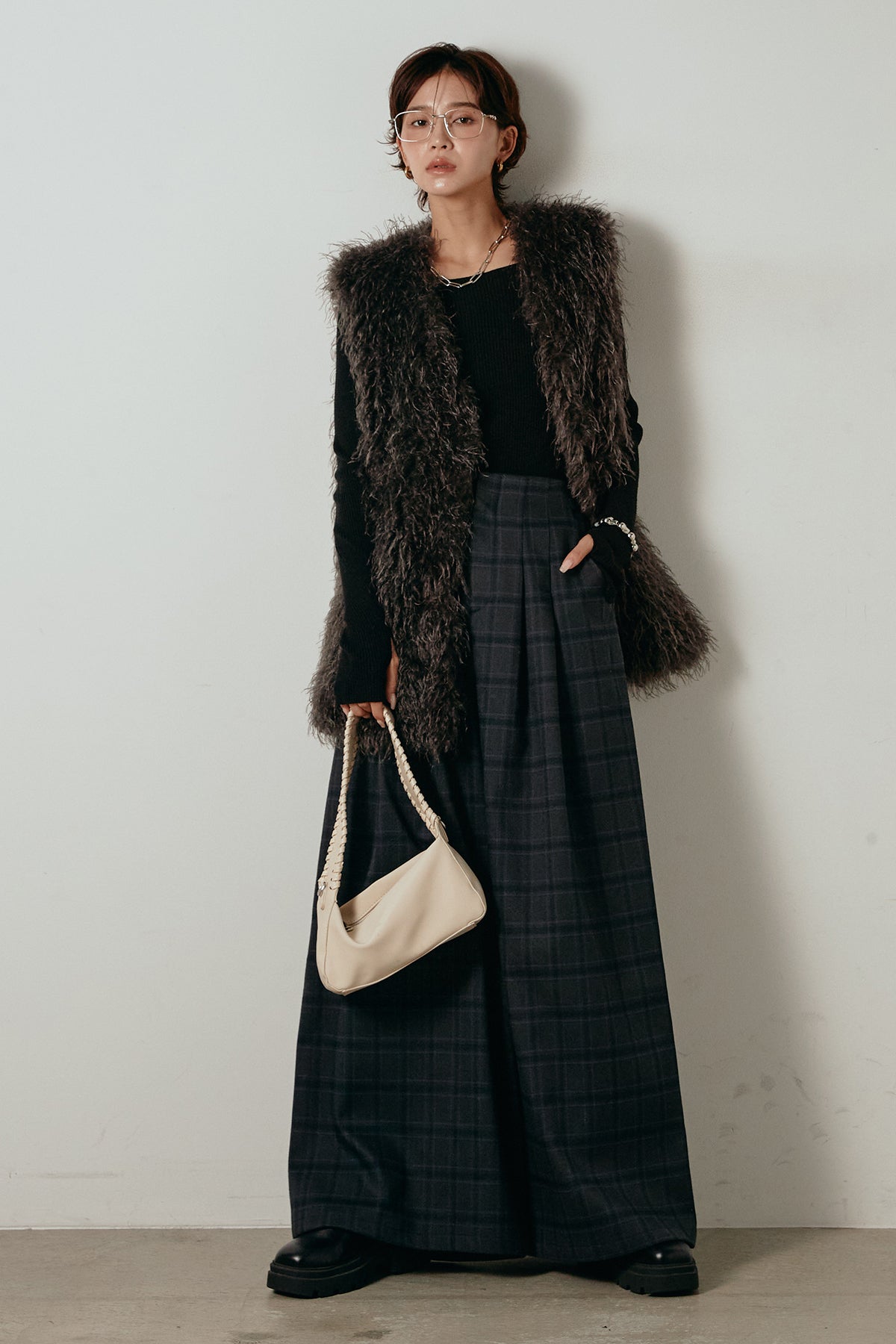 ふんわりとしたシャギーファーがシーズンムードを高めるボタン付きベスト。柔らかな質感と程よいボリュームが存在感を放ち、羽織るだけでスタイリングをアップデート。中はすっきりとした裏地仕様で着心地も快適。ニットやシャツに重ねて、秋冬らしいレイヤードを楽しめる一枚です。