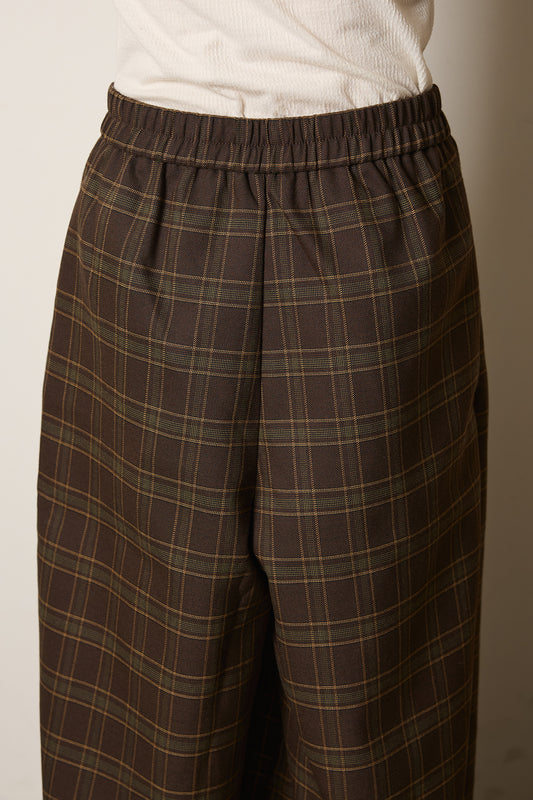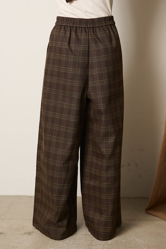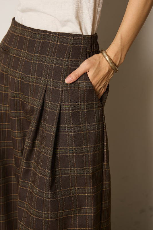 落ち着いた色味のタータンチェックが印象的なくすみワイドパンツ。深めのタックが立体感を生み、動きに合わせて美しいシルエットを描きます。ゆとりのある履き心地ながらも上品さを備え、シンプルなトップスを合わせるだけでシーズンムード漂うスタイルが完成する一本です。