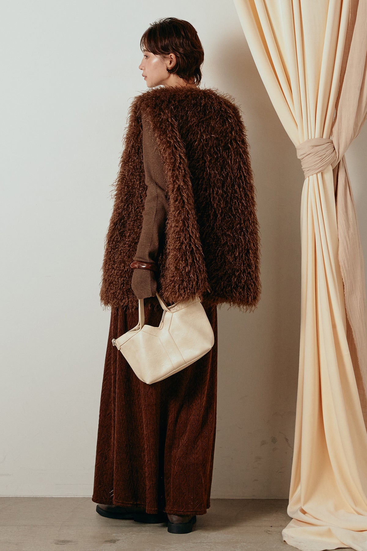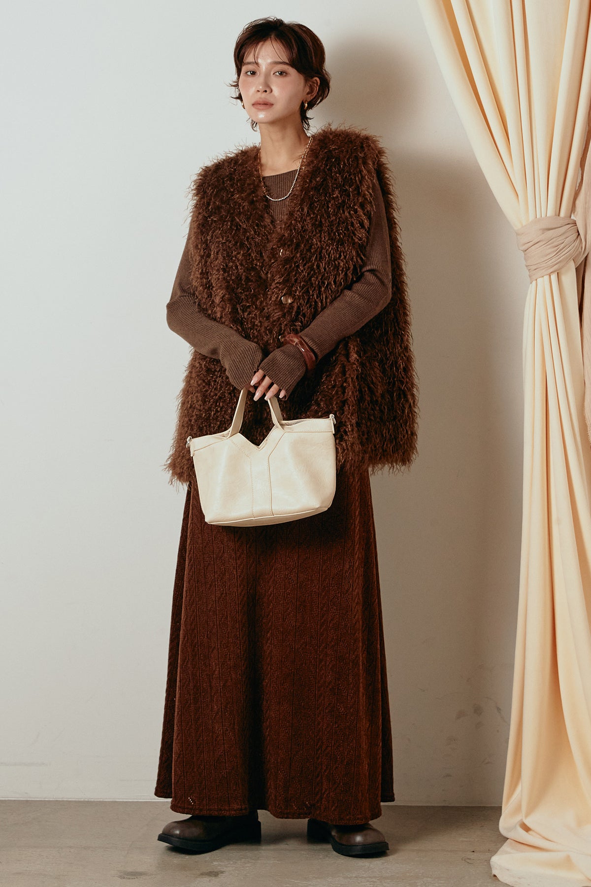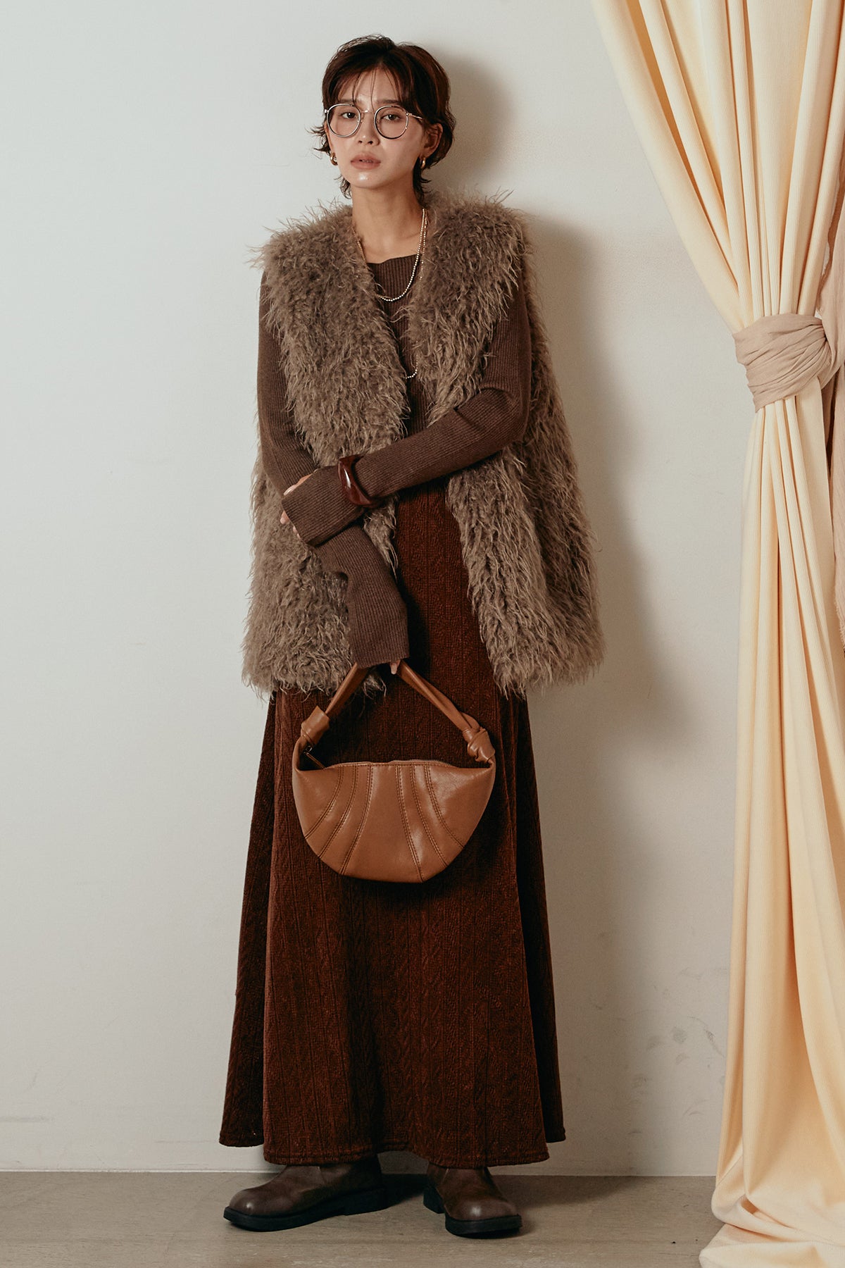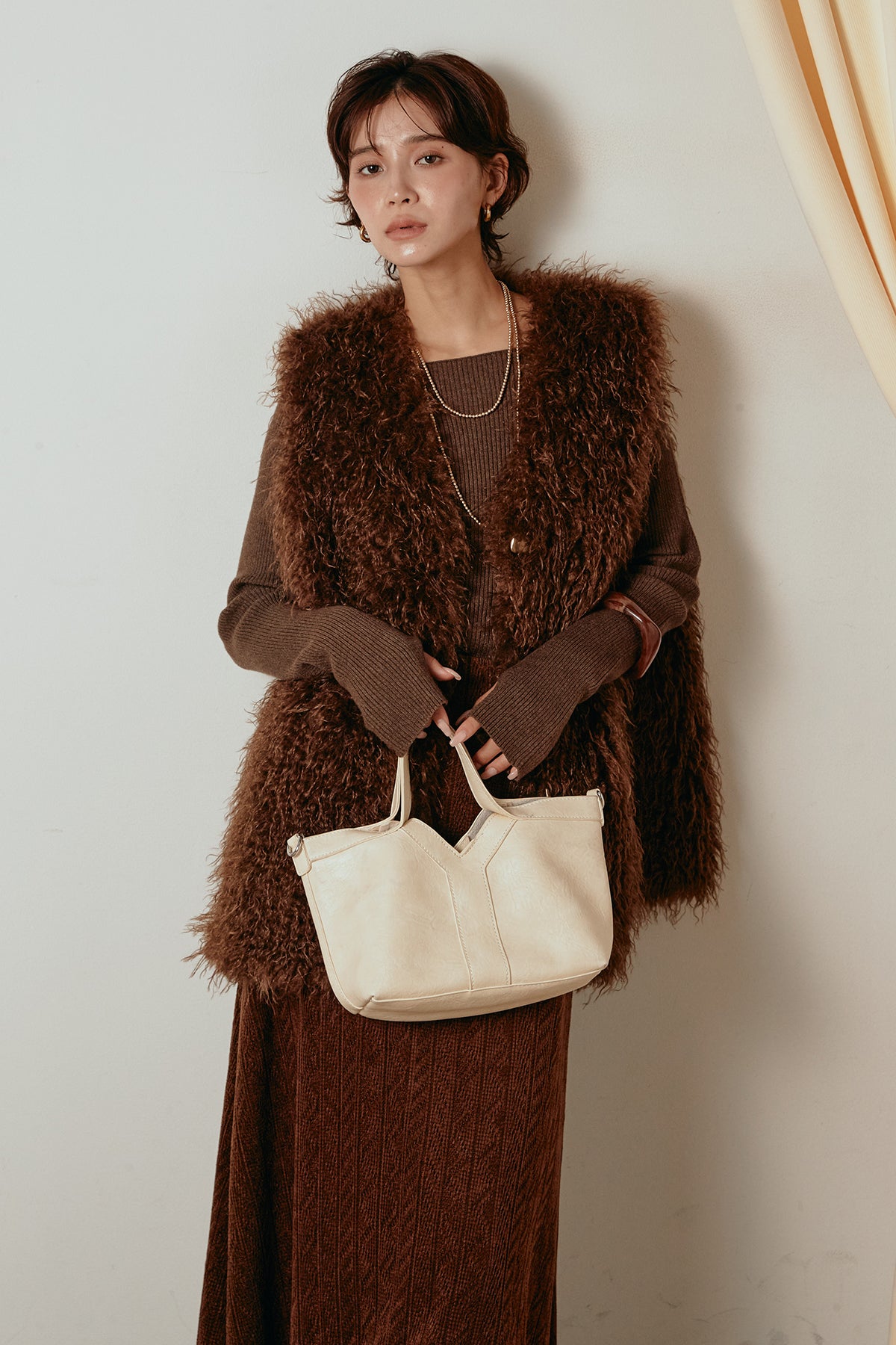 ふんわりとしたシャギーファーがシーズンムードを高めるボタン付きベスト。柔らかな質感と程よいボリュームが存在感を放ち、羽織るだけでスタイリングをアップデート。中はすっきりとした裏地仕様で着心地も快適。ニットやシャツに重ねて、秋冬らしいレイヤードを楽しめる一枚です。