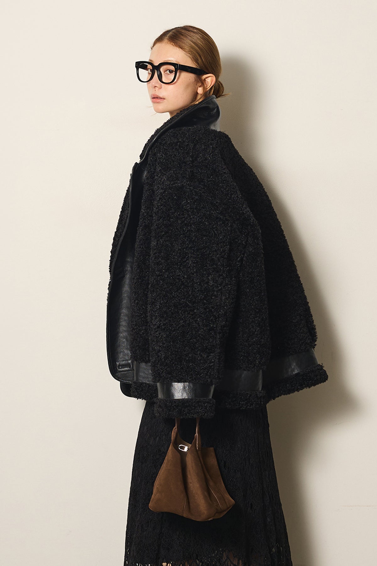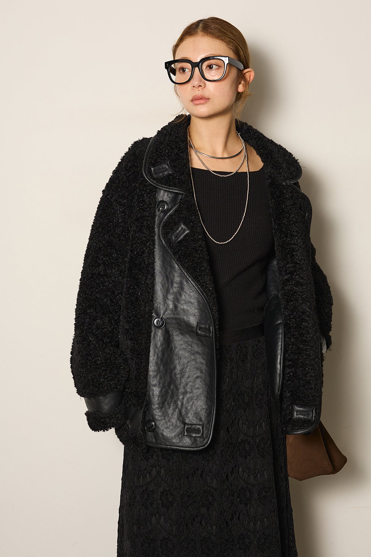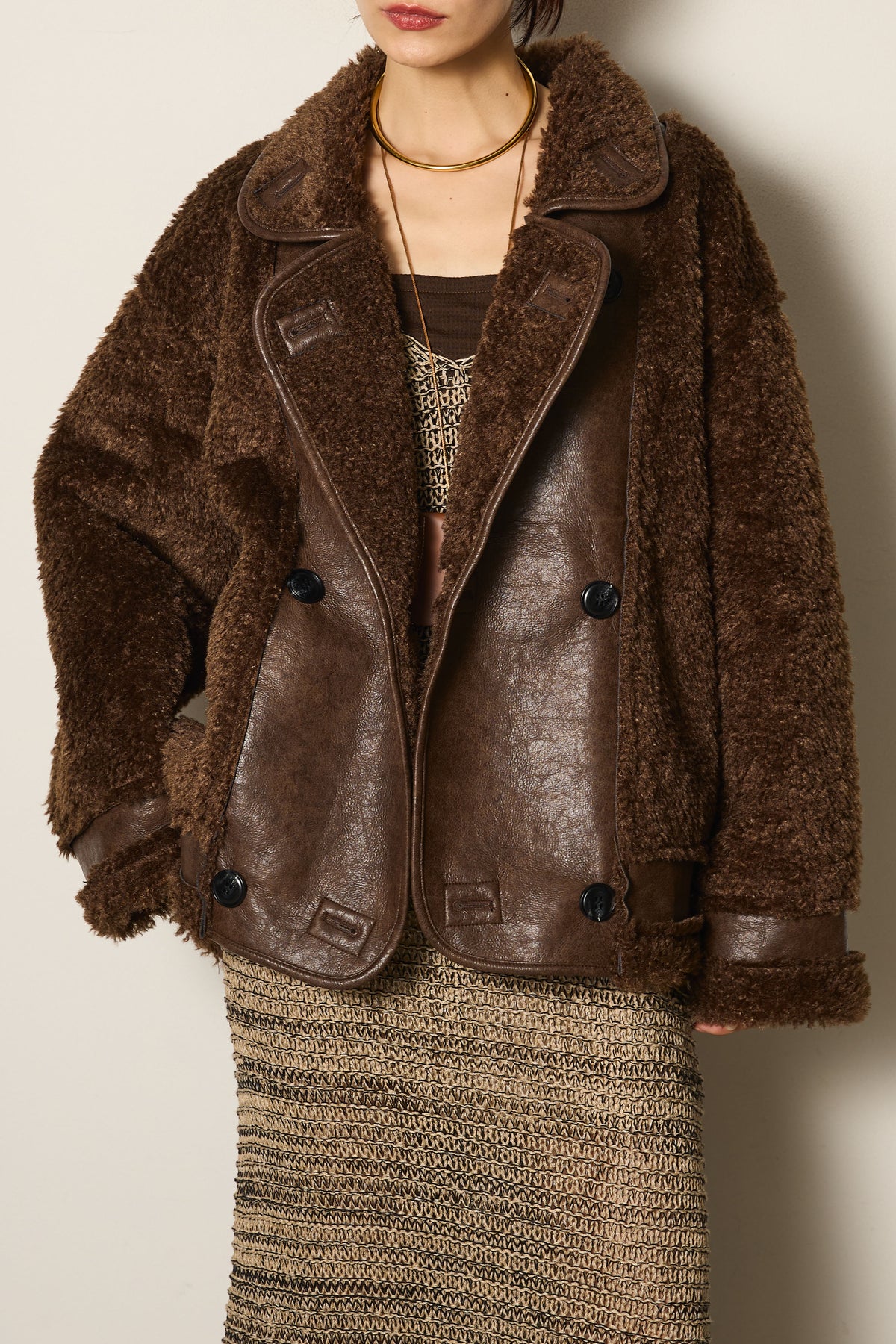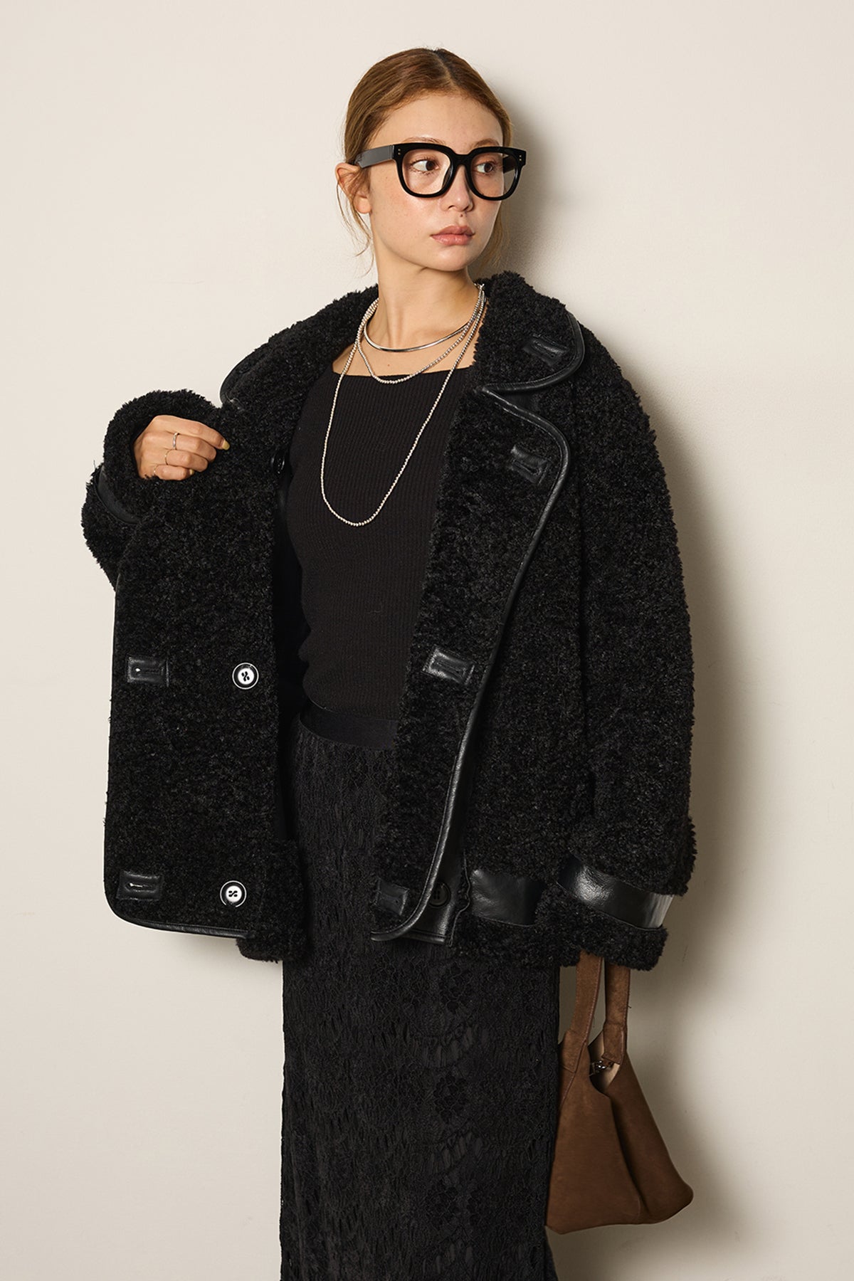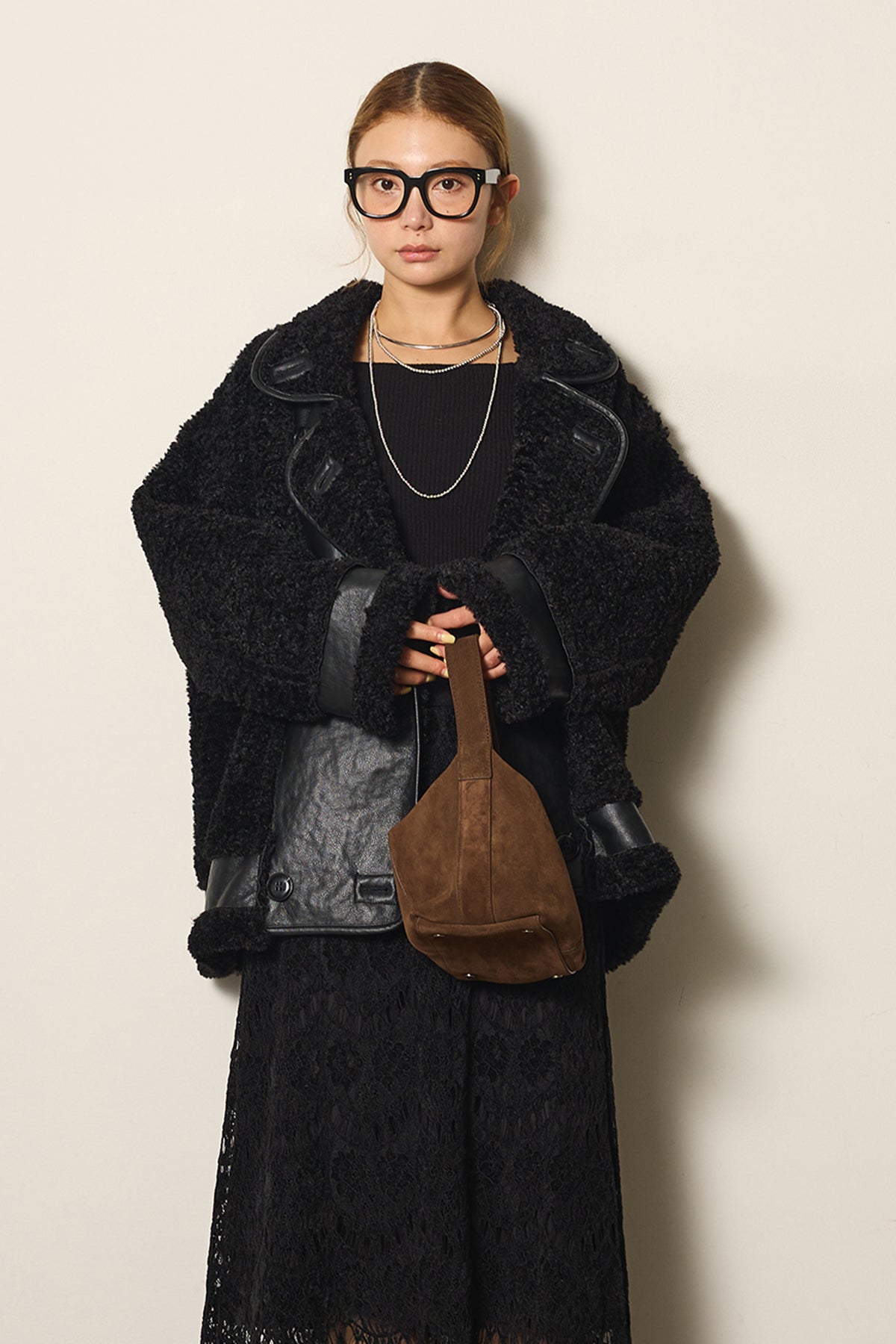 異素材のコンビネーションが目を引くフェイクレザードッキングボアアウター。柔らかなボアと艶のあるフェイクレザーの切り替えがシーズンムードを高め、スタイリングに奥行きをプラスします。ゆったりとしたシルエットで中にニットを重ねても着やすく、カジュアルにもモードにもマッチ。1枚で主役になる存在感のあるアウターです。
