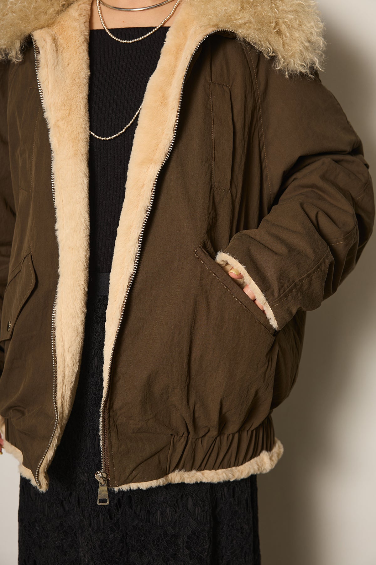 ◆ ボア襟ジップポケットブルゾン