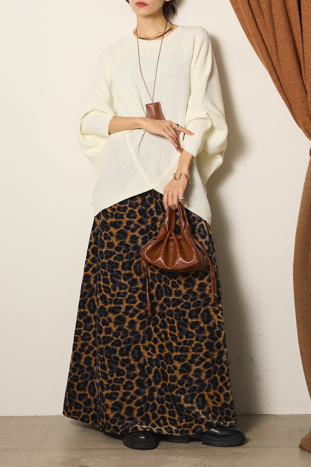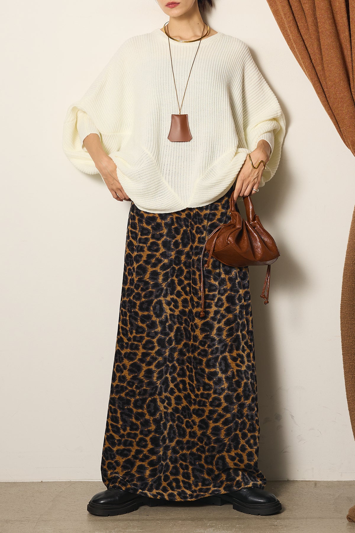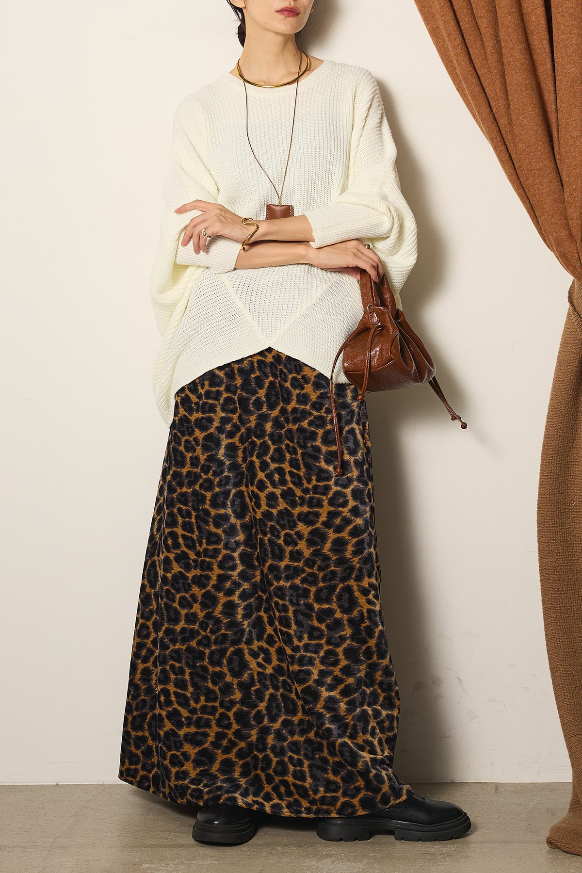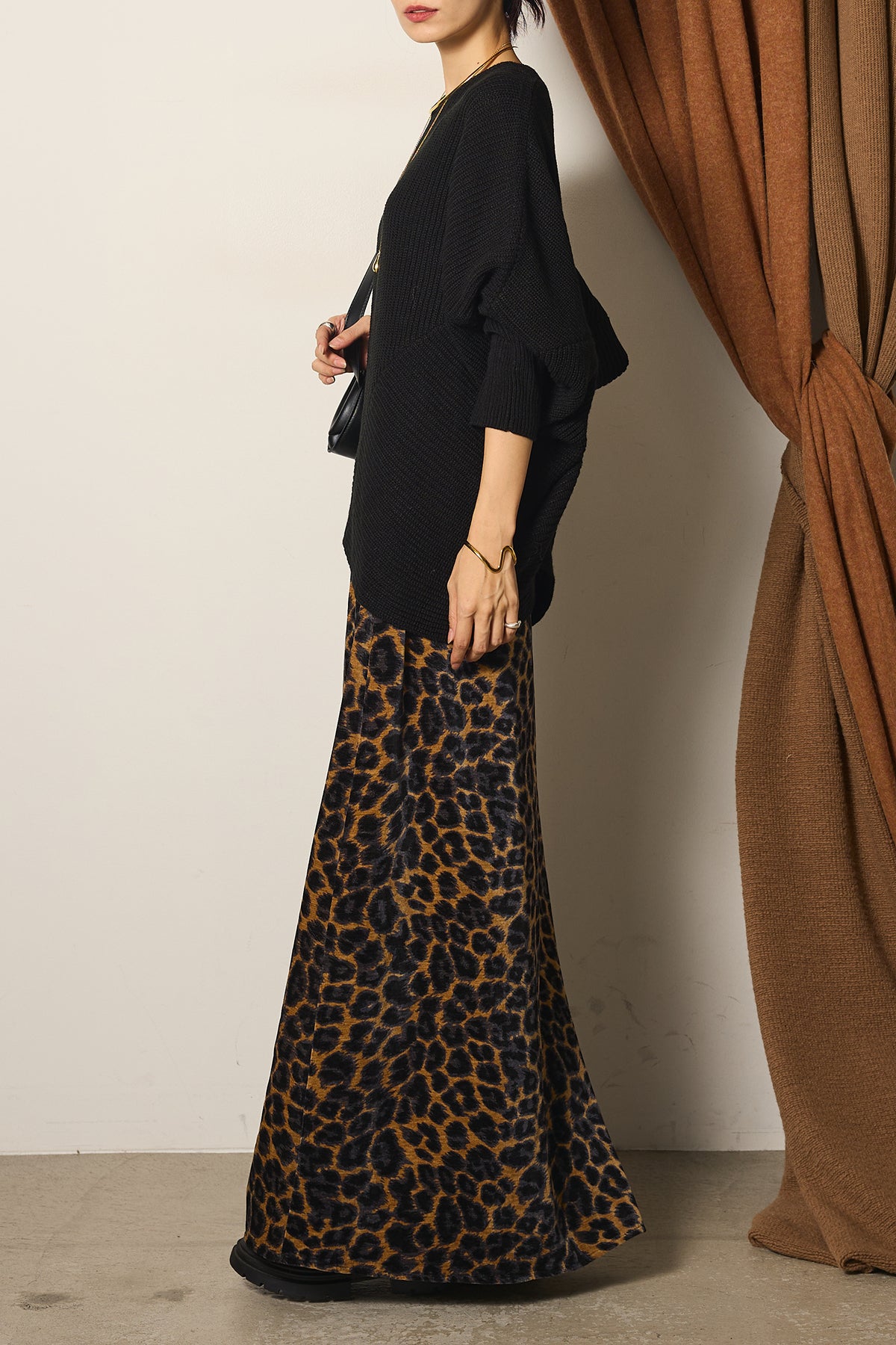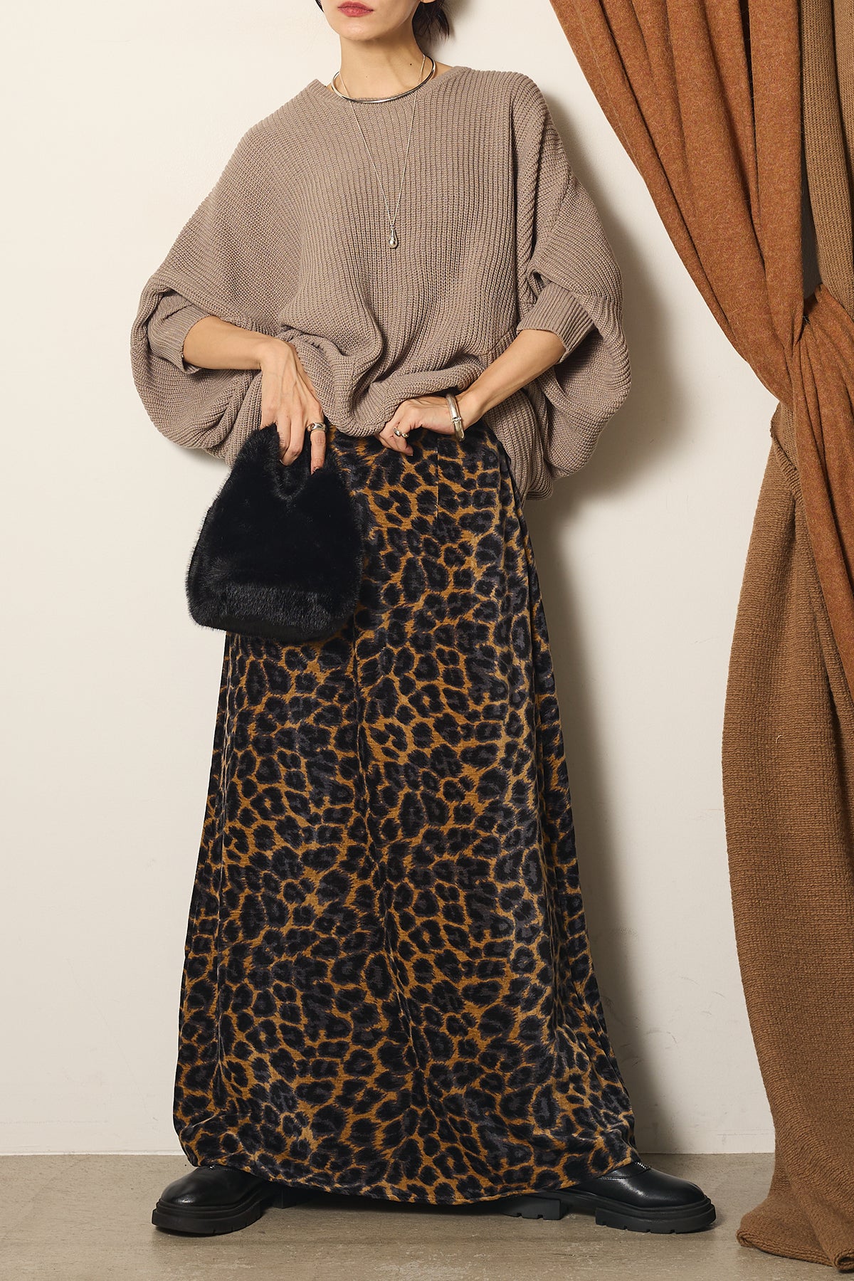 大胆なレオパード柄が目を引くワイドスカート。落ち感のあるシルエットが動くたびに美しいラインを描き、コーディネートにモードな存在感をプラスします。シンプルなトップスと合わせるだけでスタイルが決まり、デイリーから特別なシーンまで幅広く活躍する一枚です。