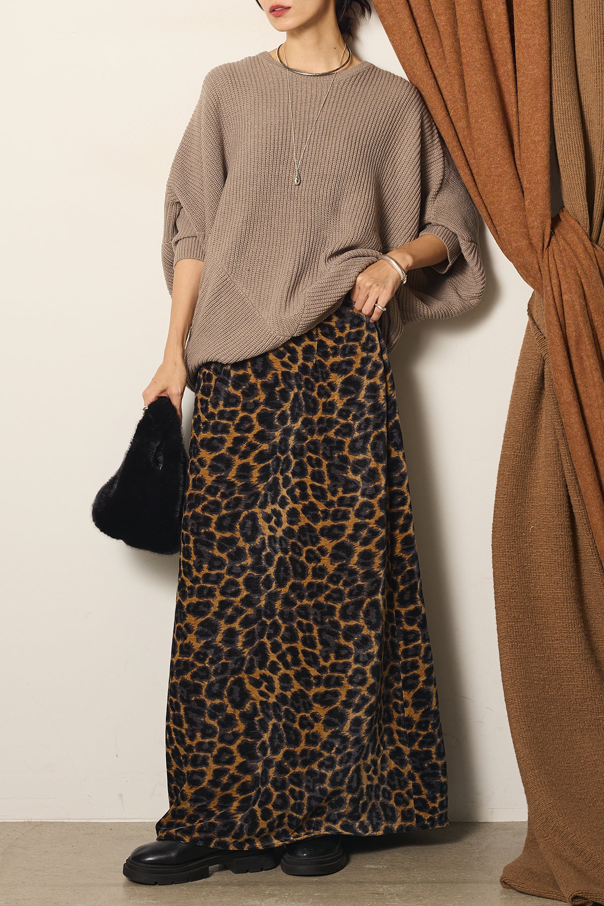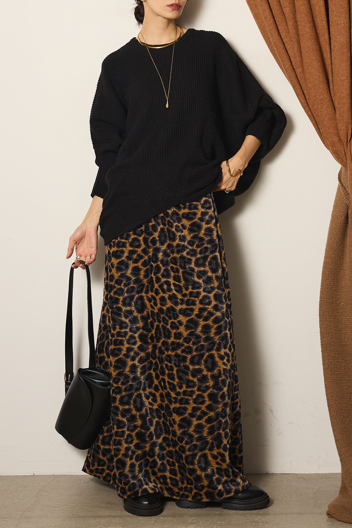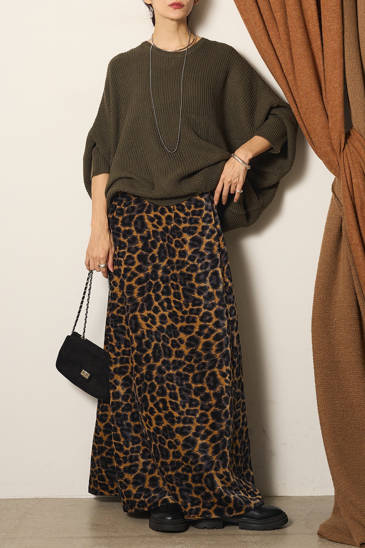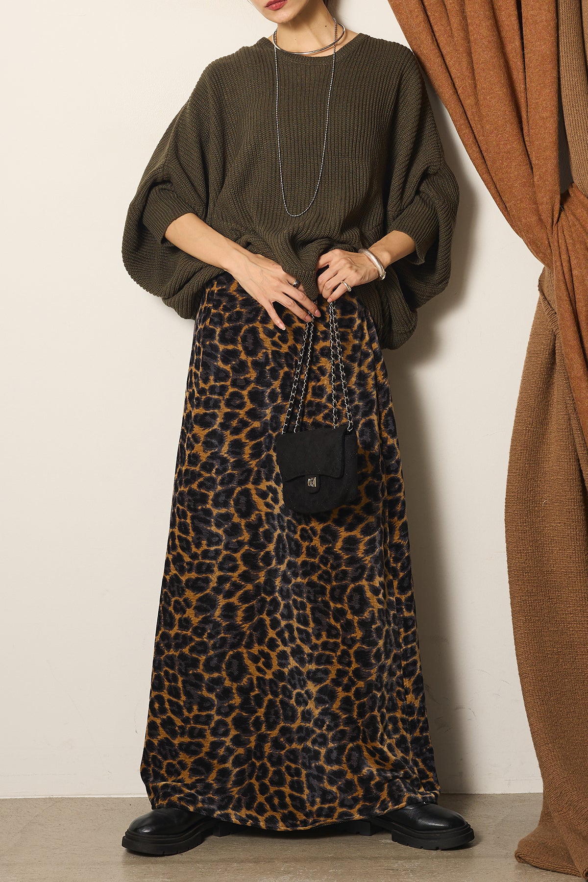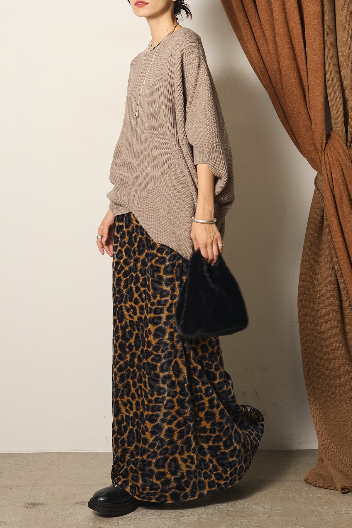 大胆なレオパード柄が目を引くワイドスカート。落ち感のあるシルエットが動くたびに美しいラインを描き、コーディネートにモードな存在感をプラスします。シンプルなトップスと合わせるだけでスタイルが決まり、デイリーから特別なシーンまで幅広く活躍する一枚です。