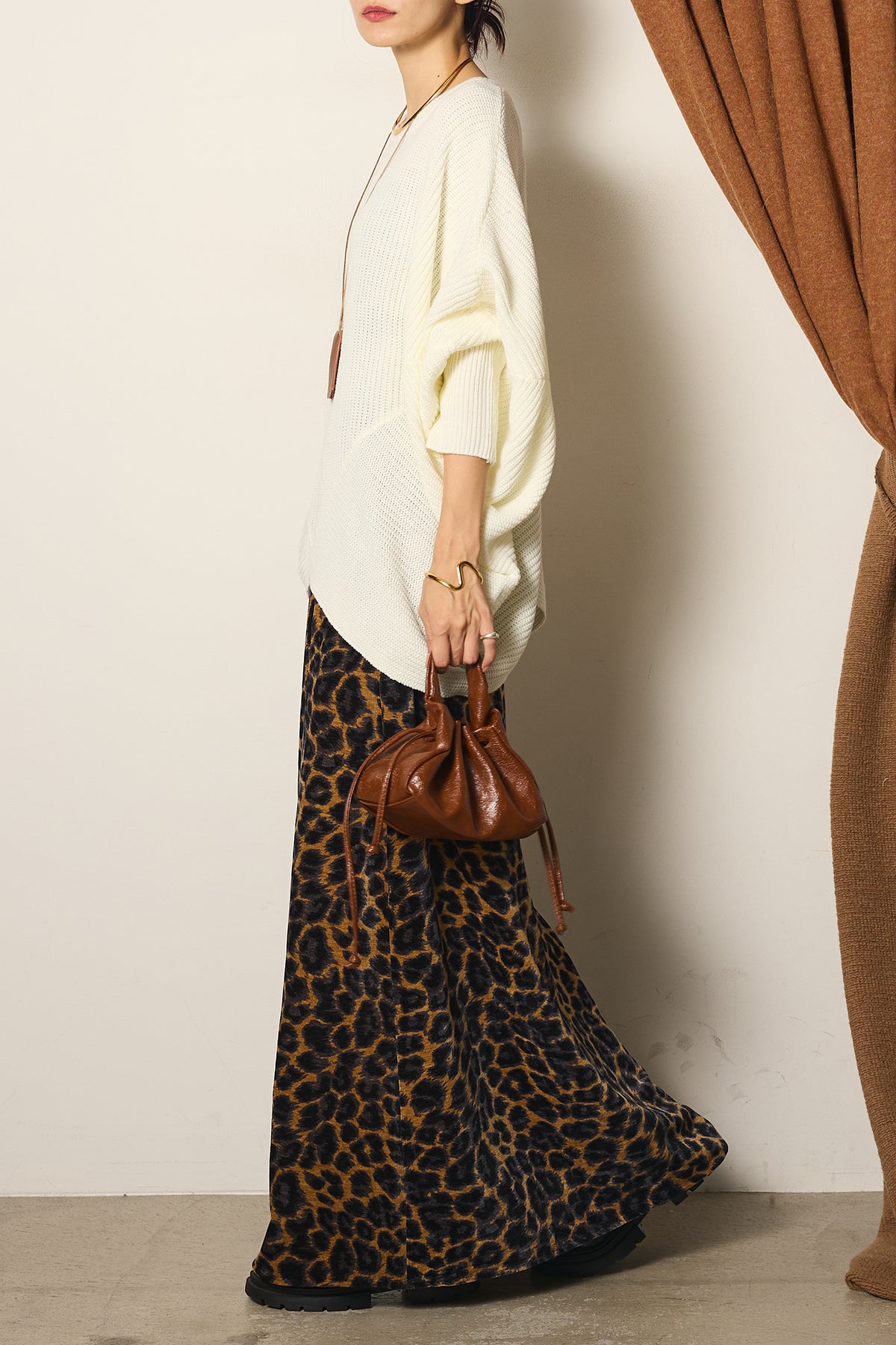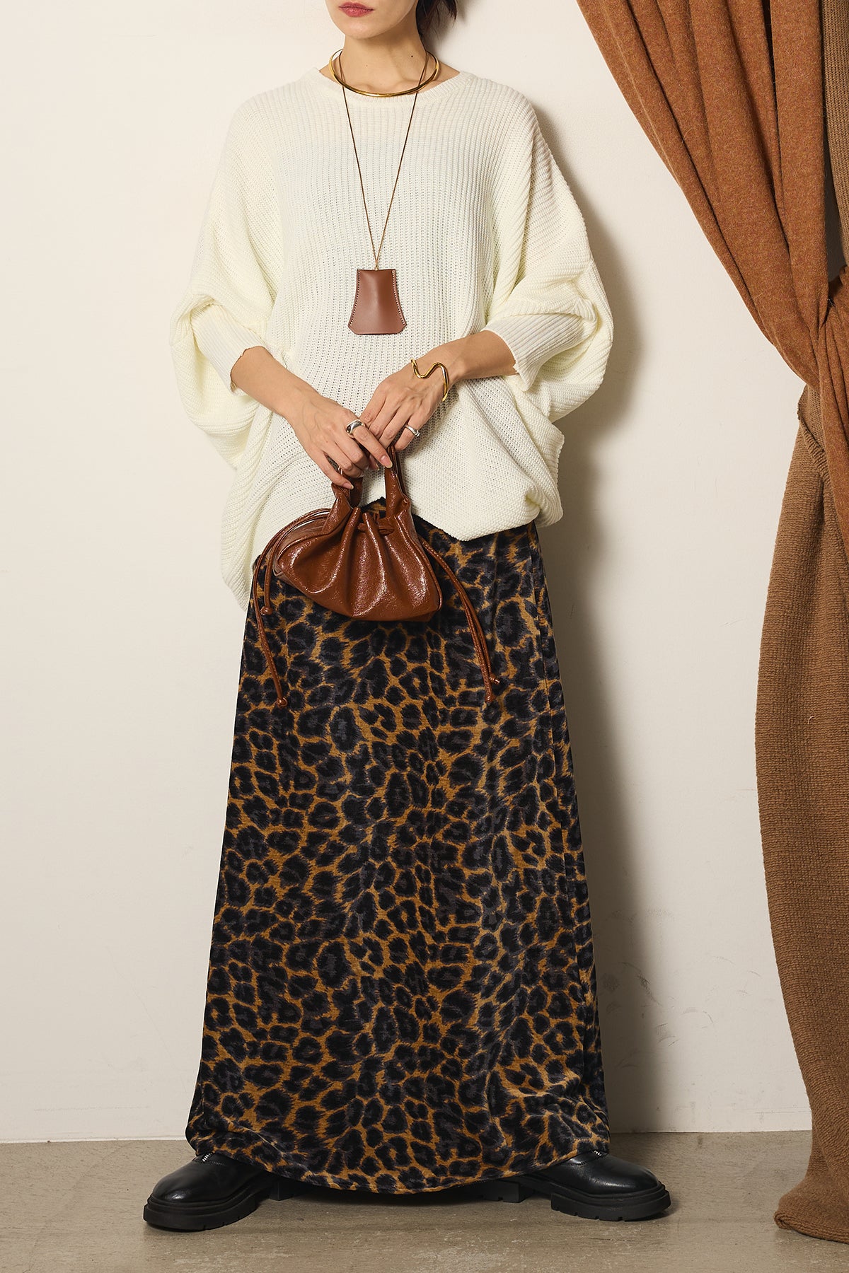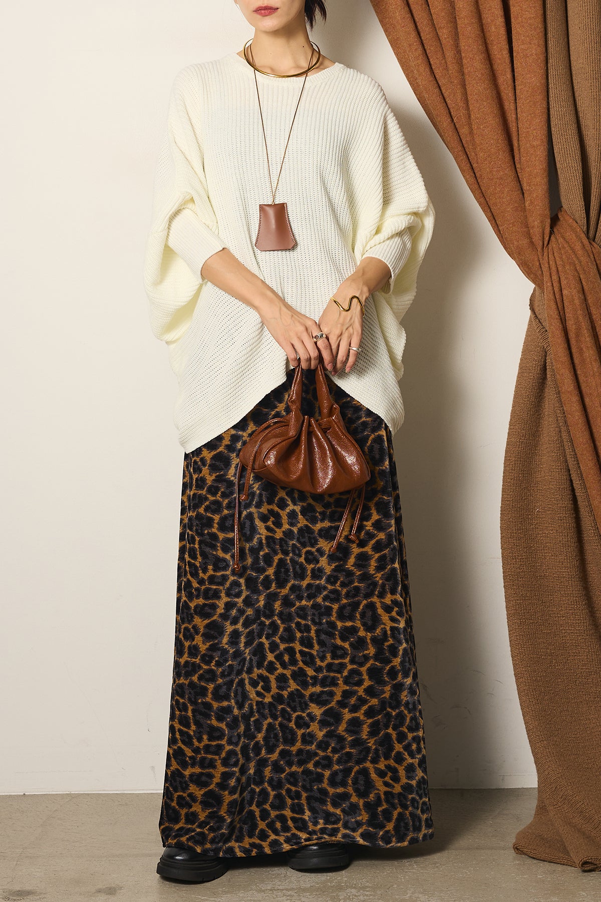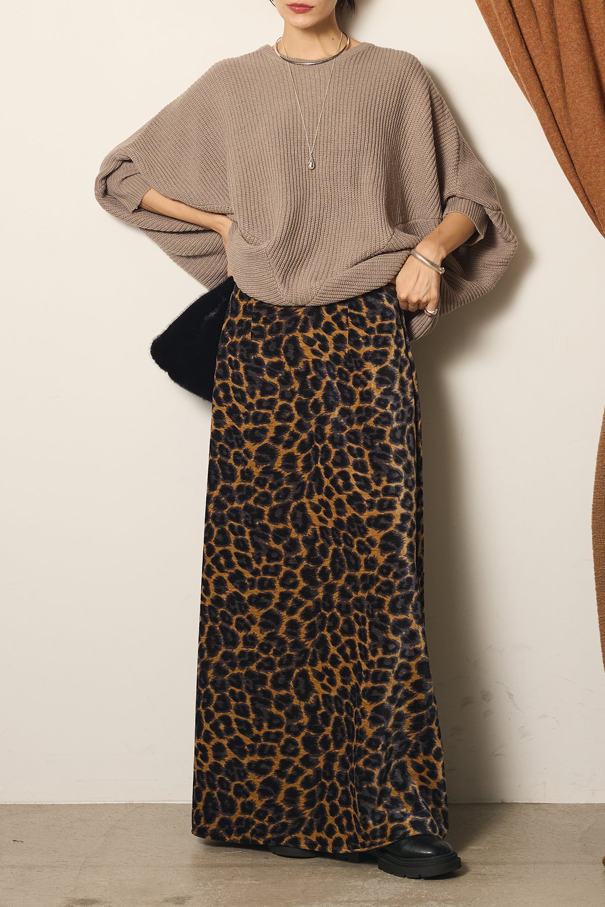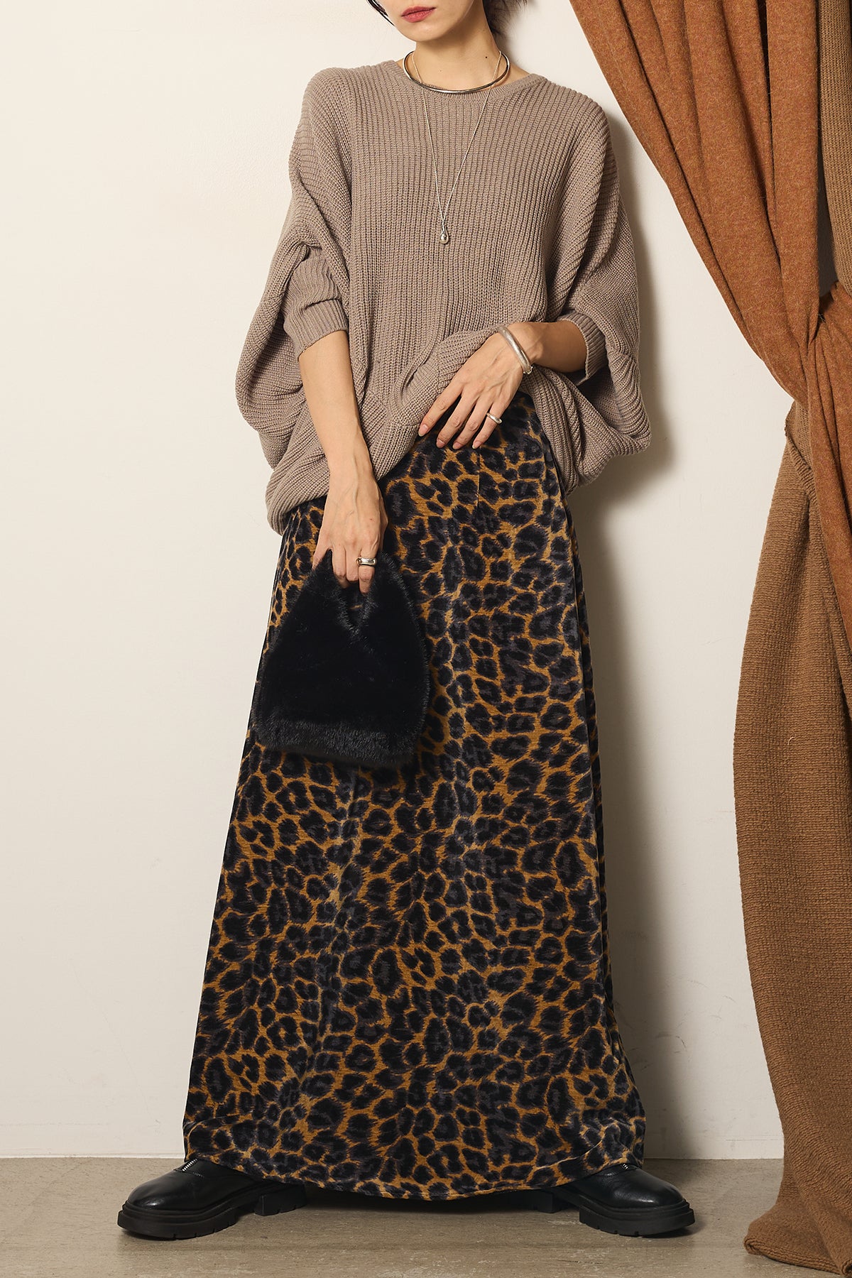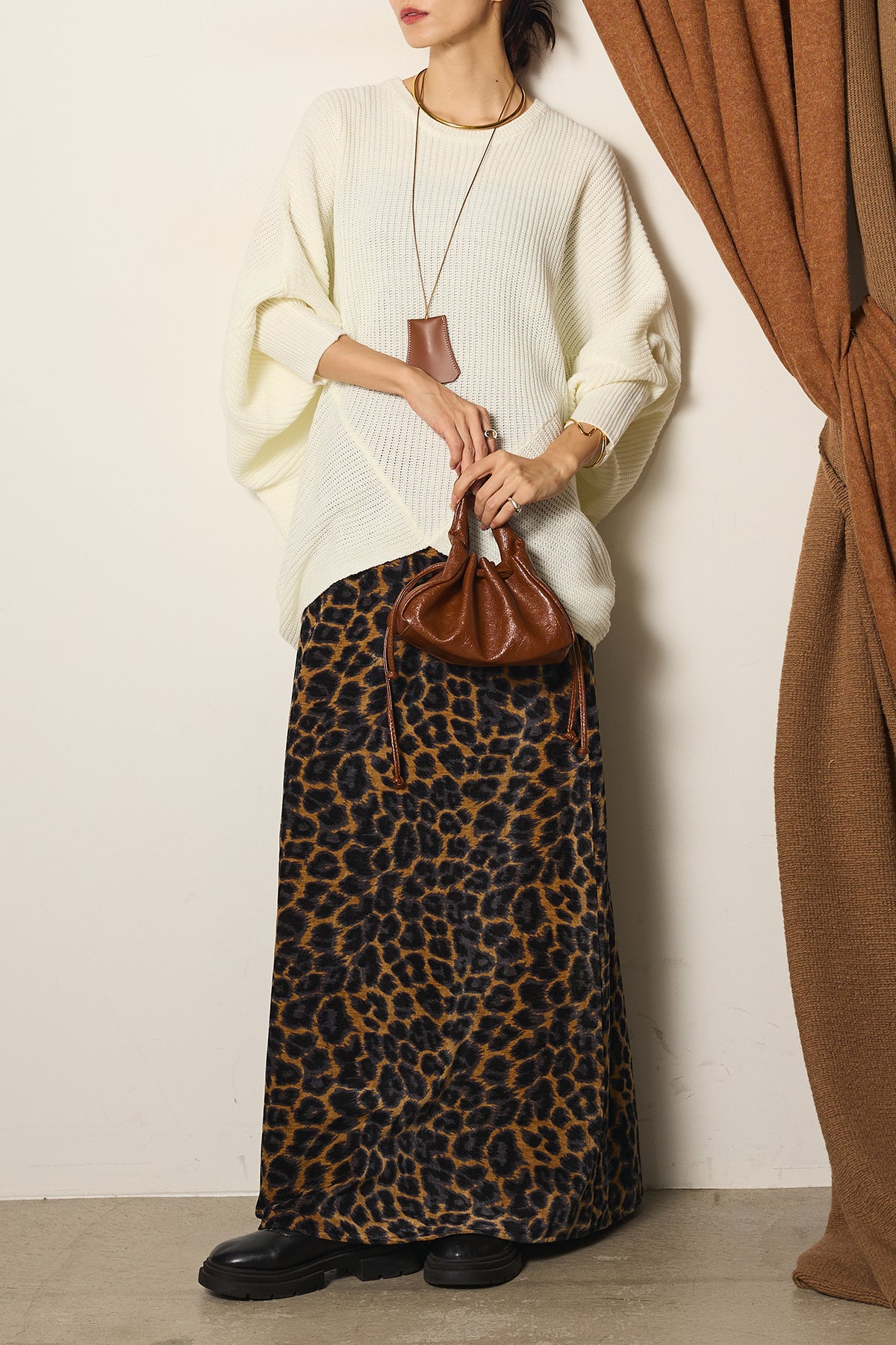 大胆なレオパード柄が目を引くワイドスカート。落ち感のあるシルエットが動くたびに美しいラインを描き、コーディネートにモードな存在感をプラスします。シンプルなトップスと合わせるだけでスタイルが決まり、デイリーから特別なシーンまで幅広く活躍する一枚です。