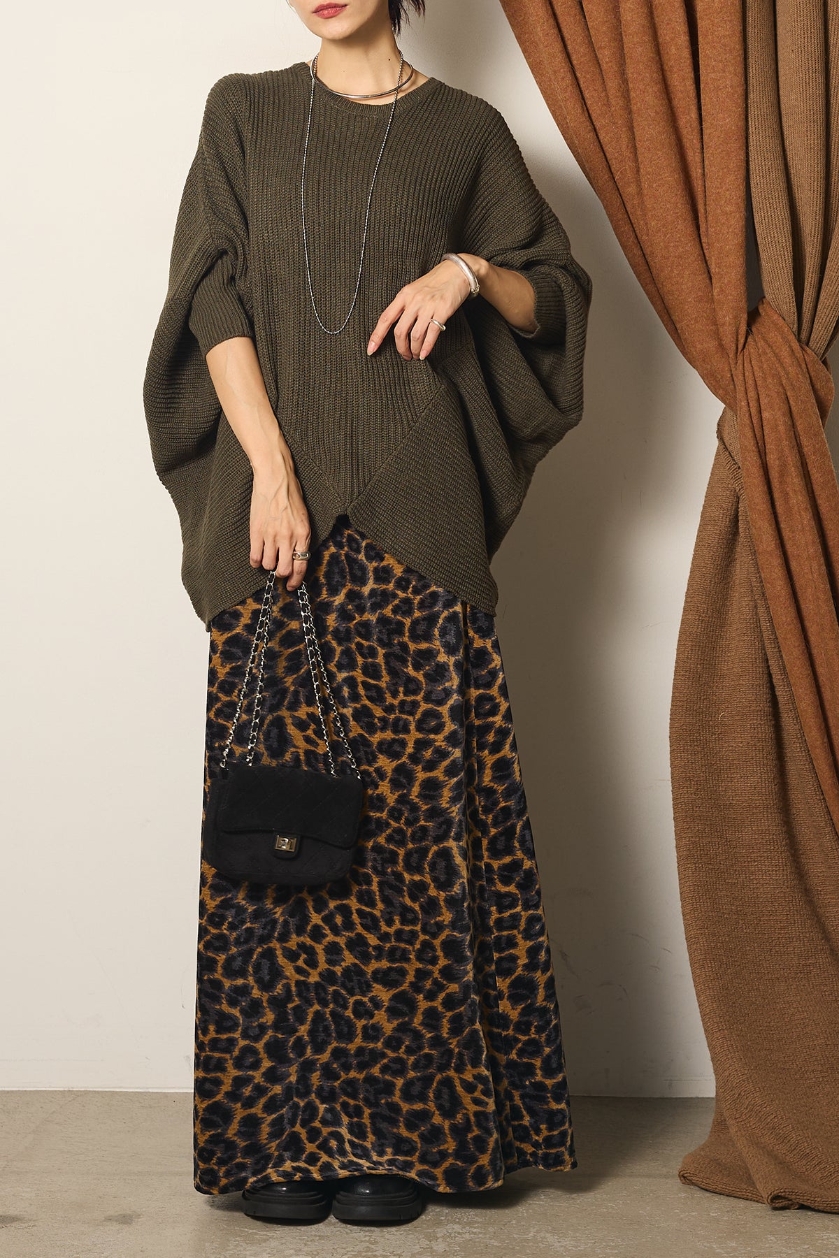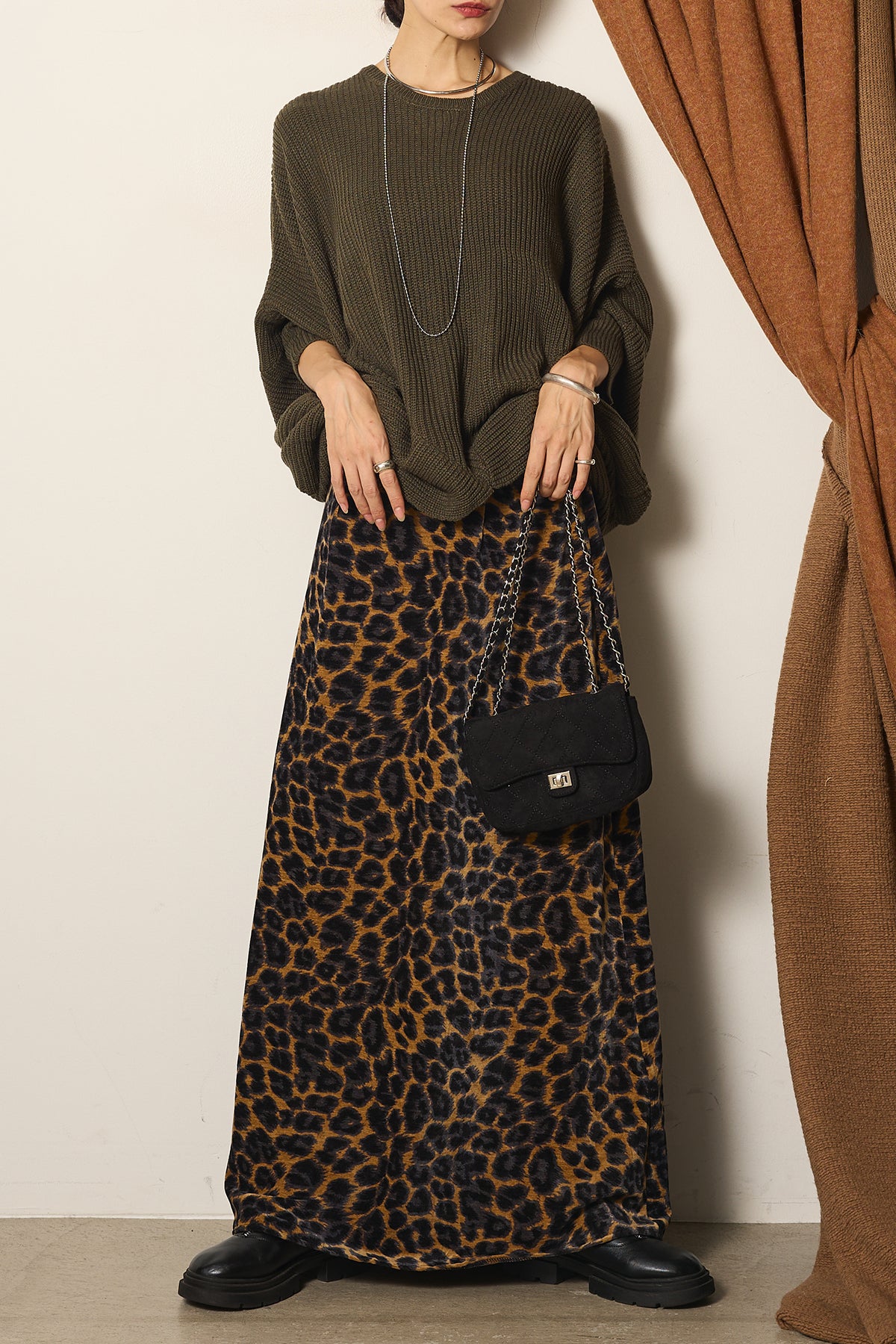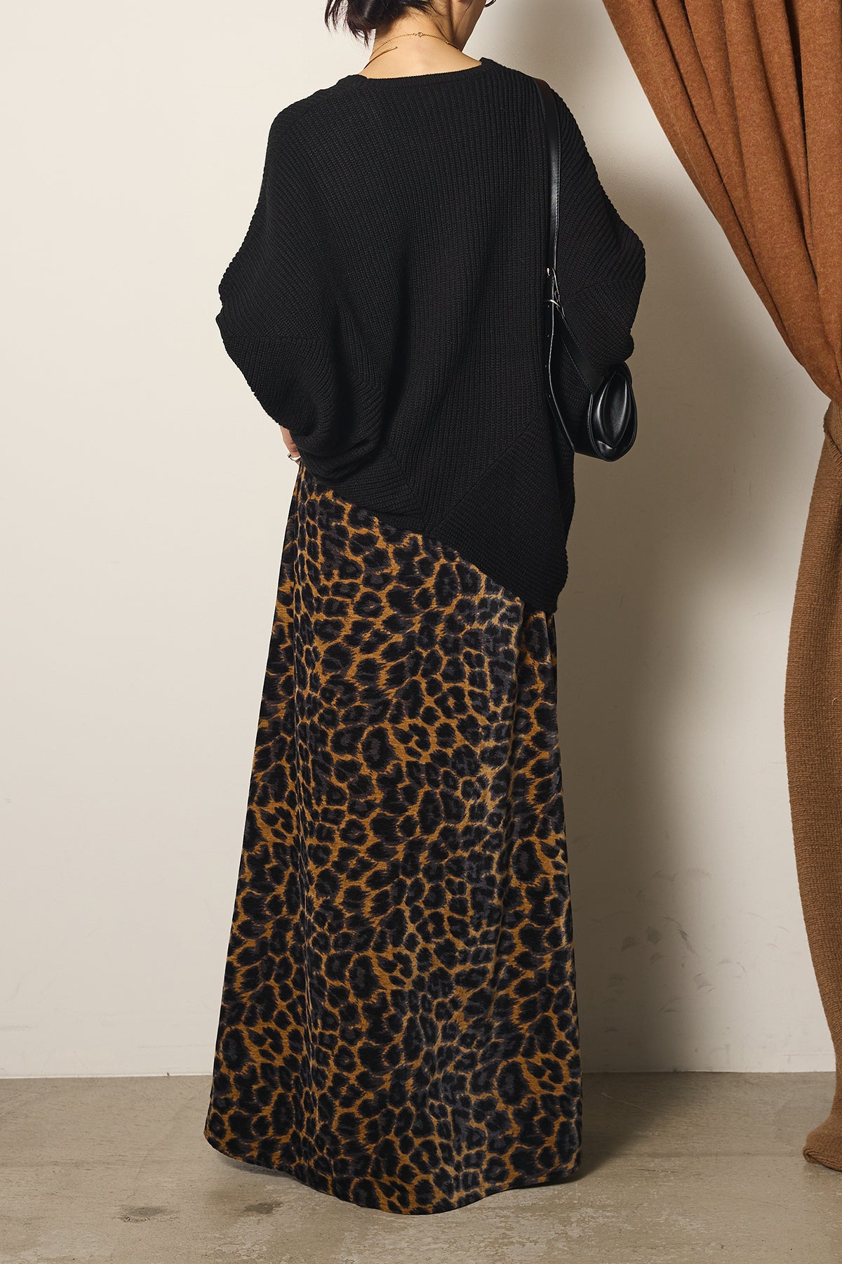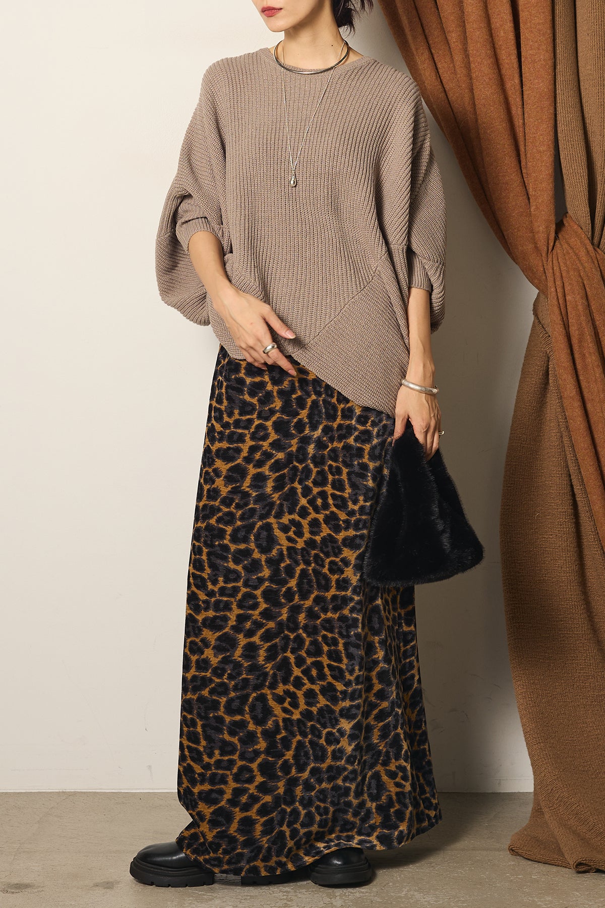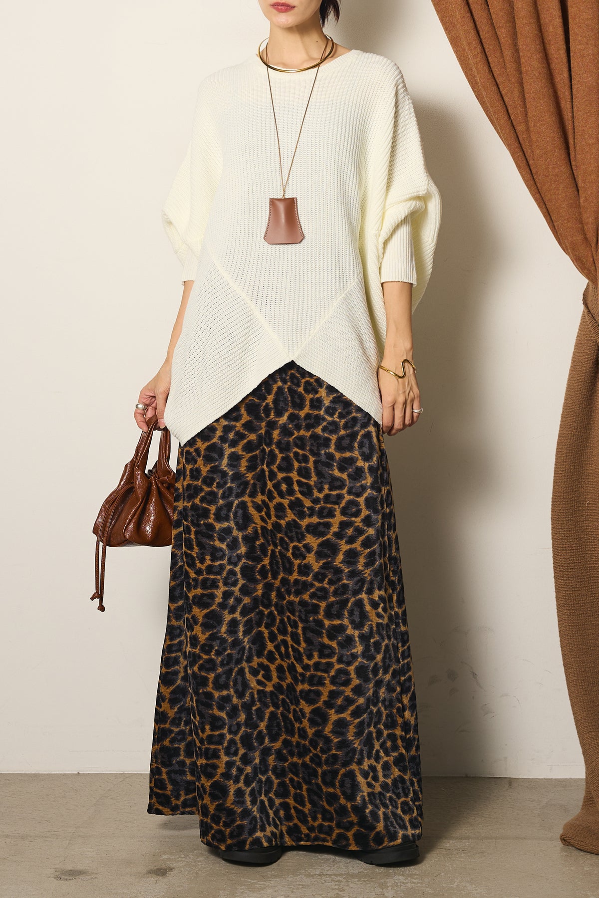 大胆なレオパード柄が目を引くワイドスカート。落ち感のあるシルエットが動くたびに美しいラインを描き、コーディネートにモードな存在感をプラスします。シンプルなトップスと合わせるだけでスタイルが決まり、デイリーから特別なシーンまで幅広く活躍する一枚です。